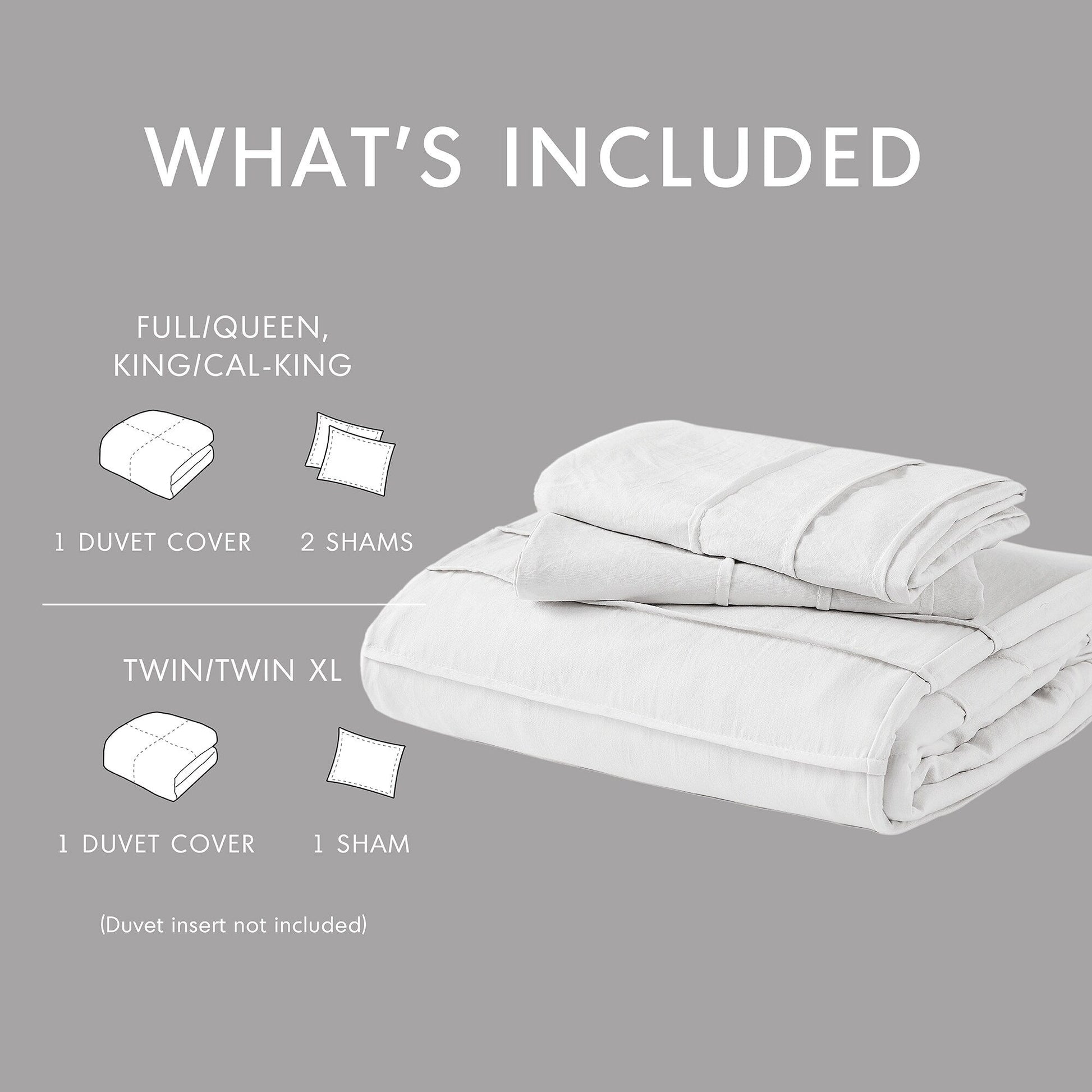 - The set includes 1 duvet cover and 2 matching shams (1 sham in Twin/TwinXL)