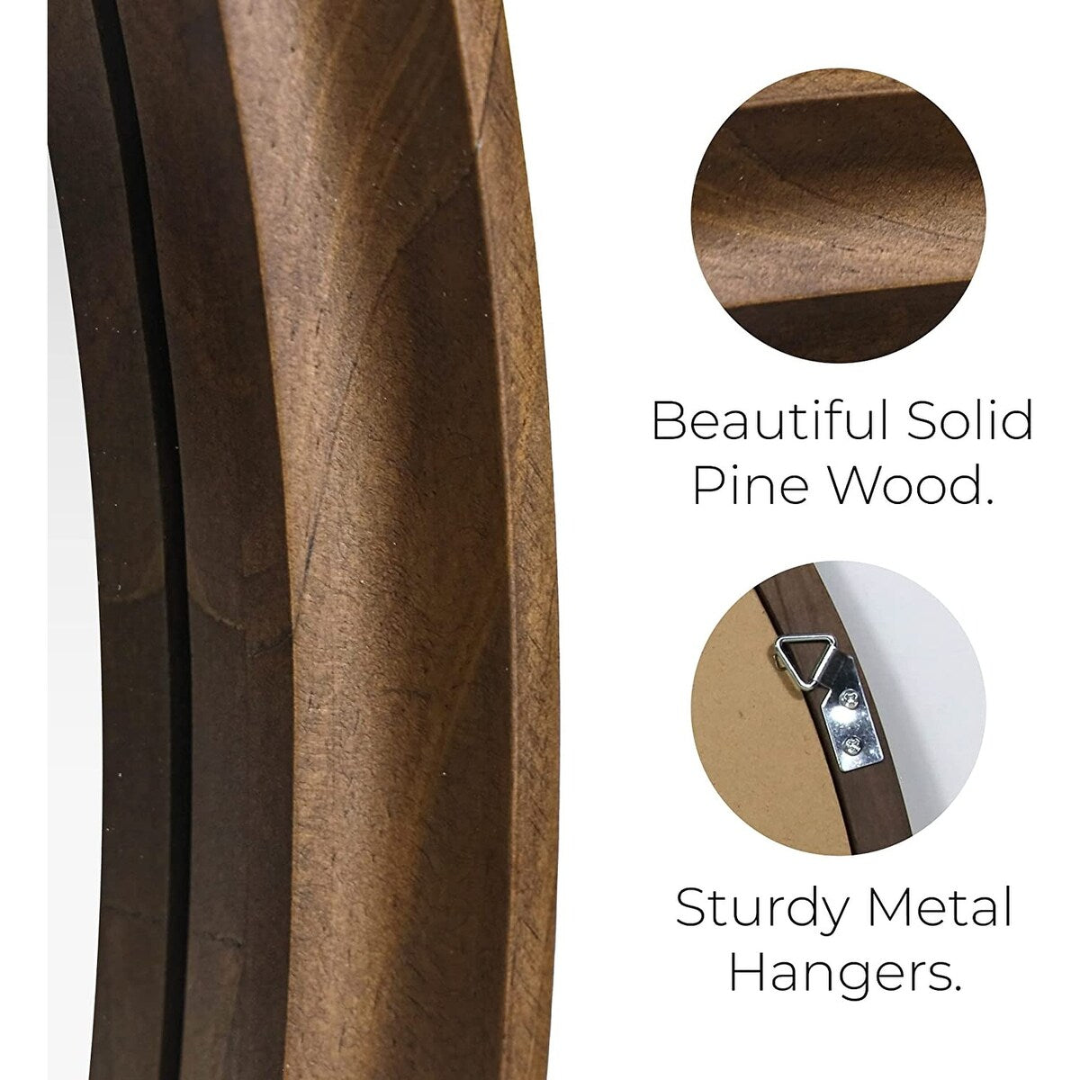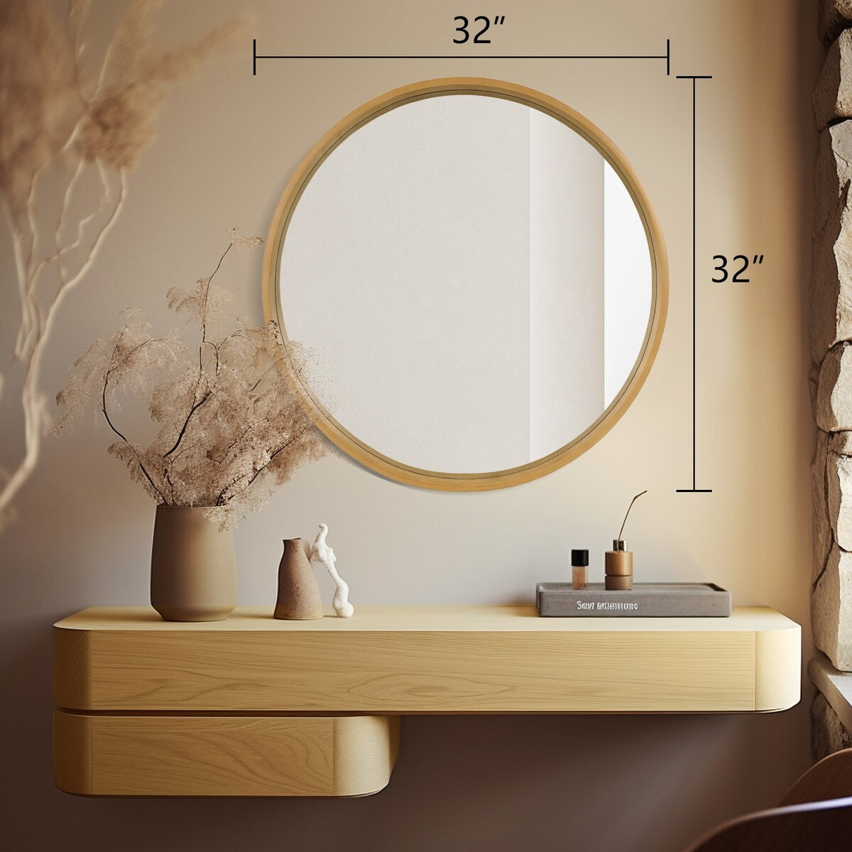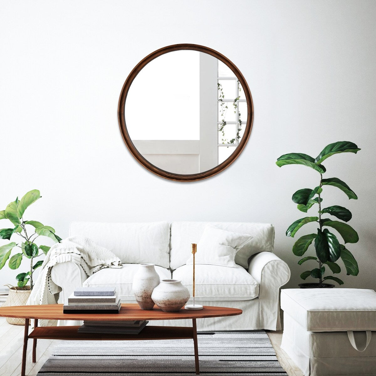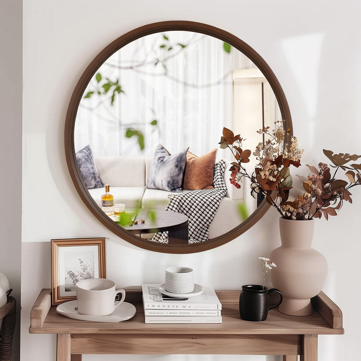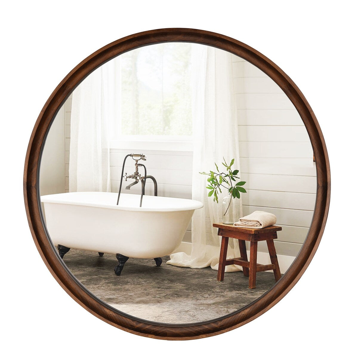 Classic Wooden Frame Farmhouse Round Wall Mirror