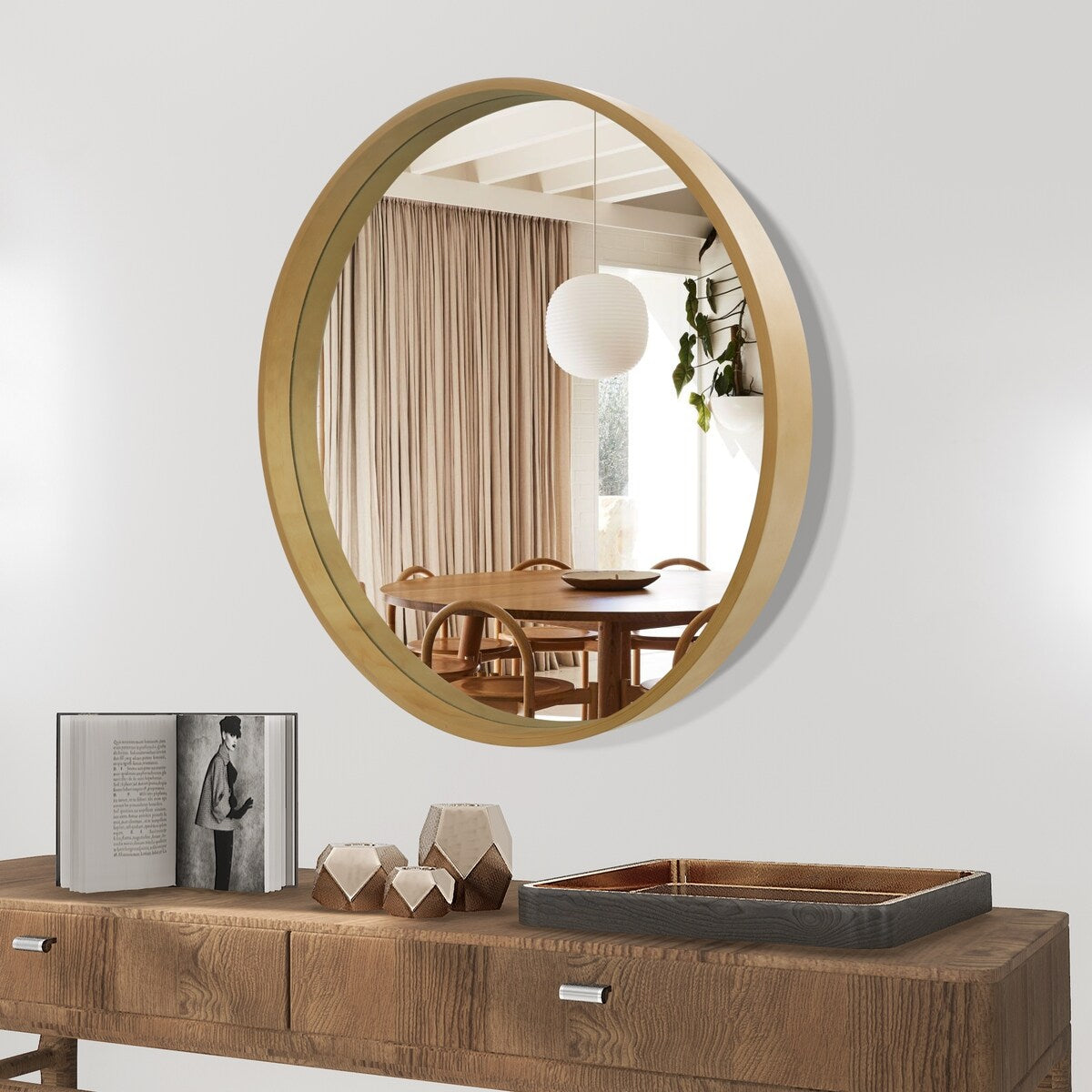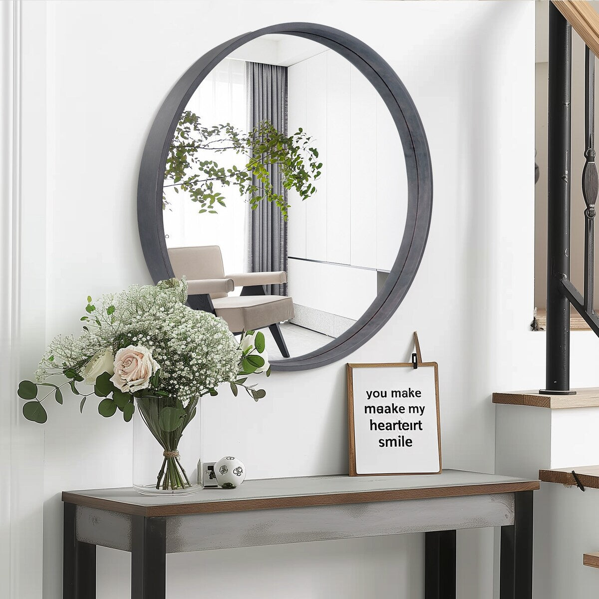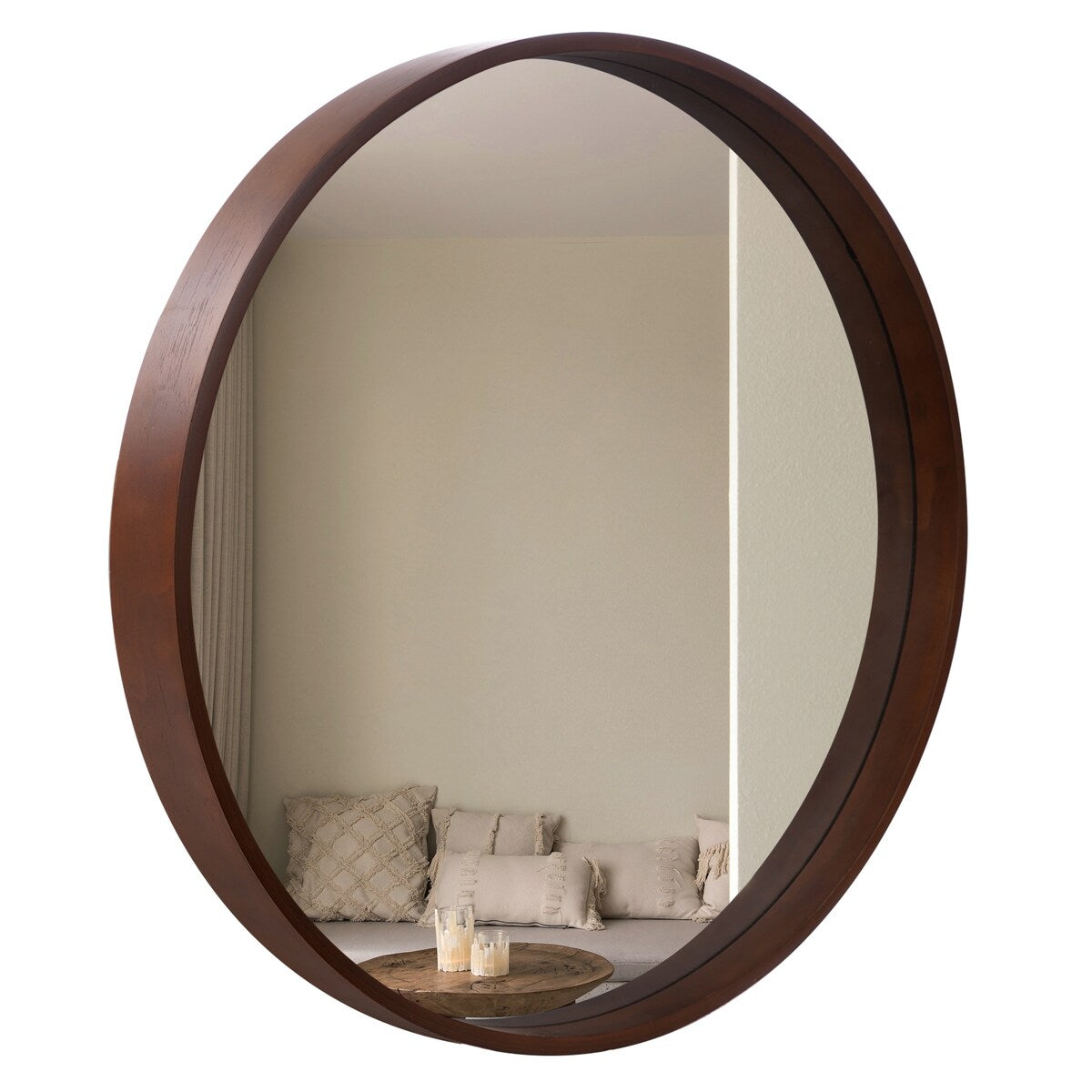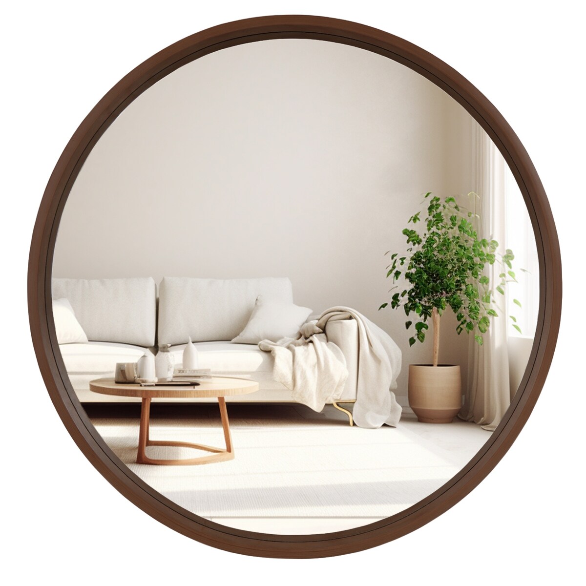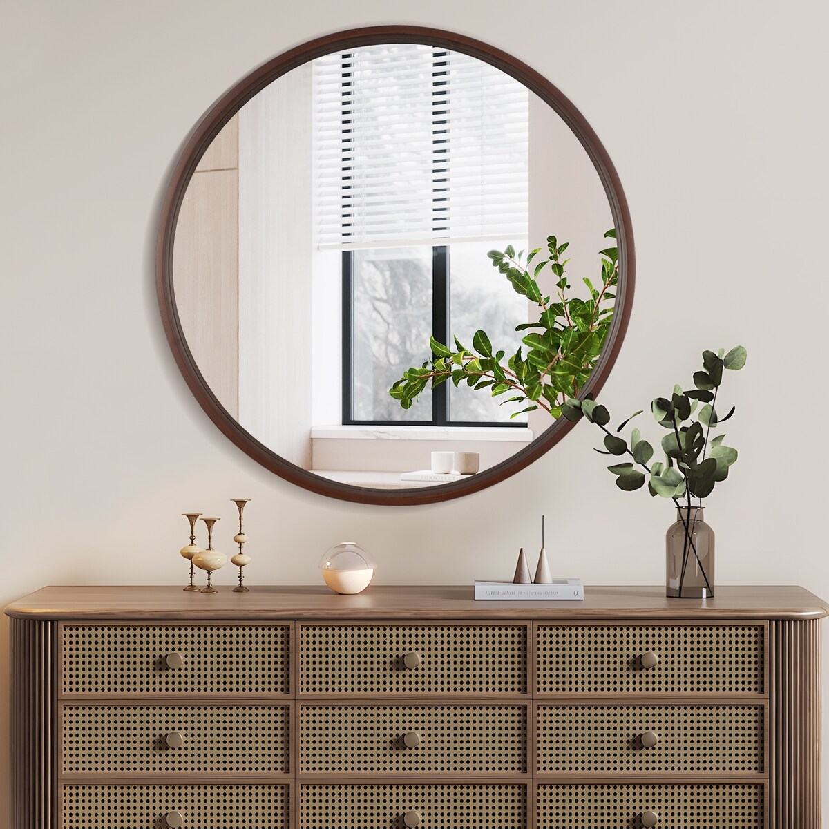 Classic Wooden Frame Farmhouse Round Wall Mirror