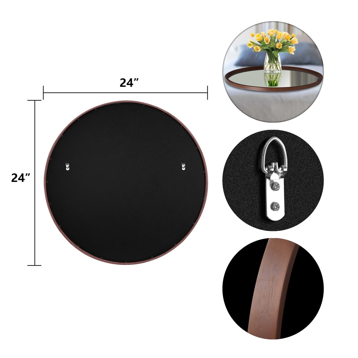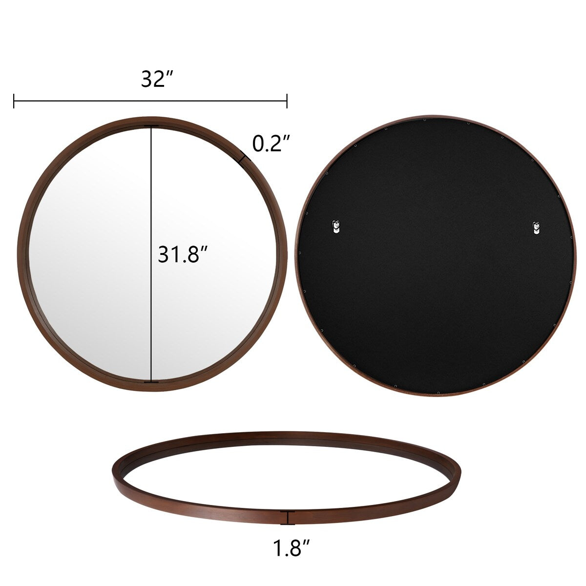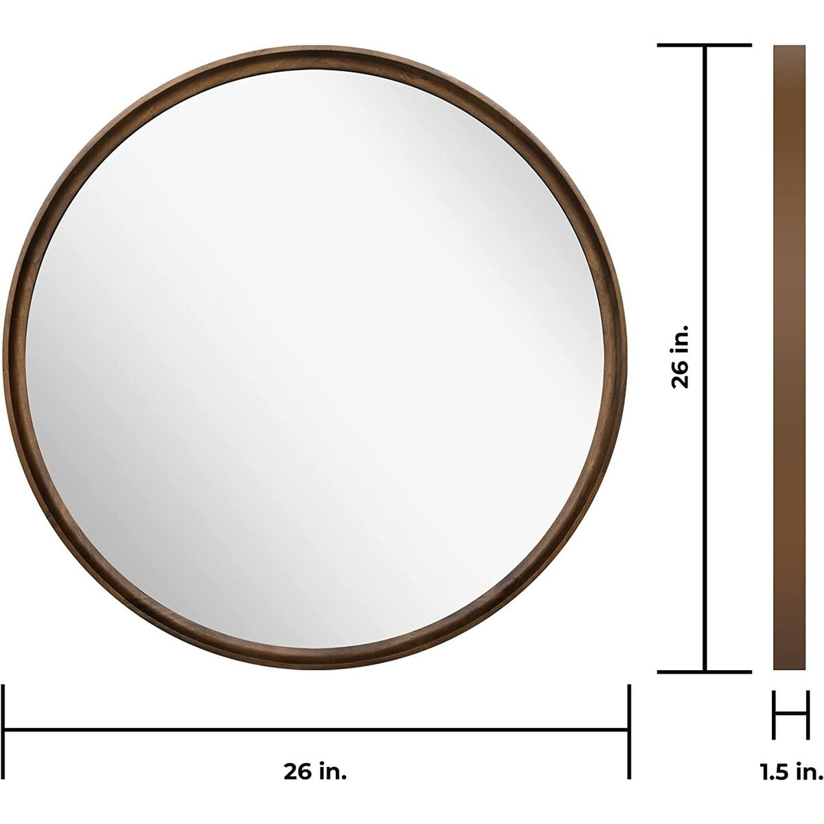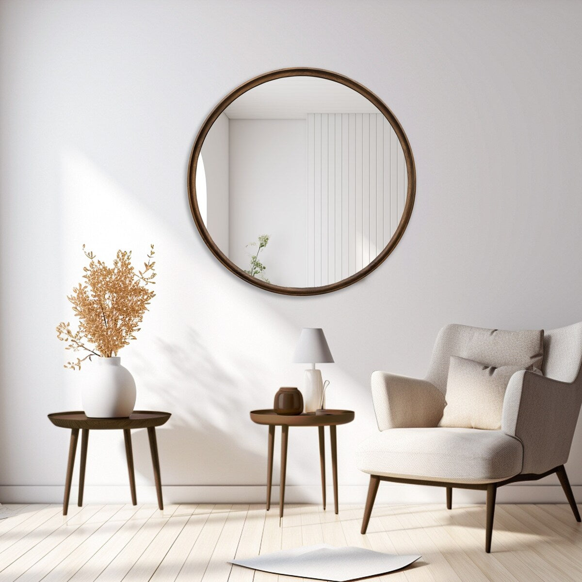 Classic Wooden Frame Farmhouse Round Wall Mirror