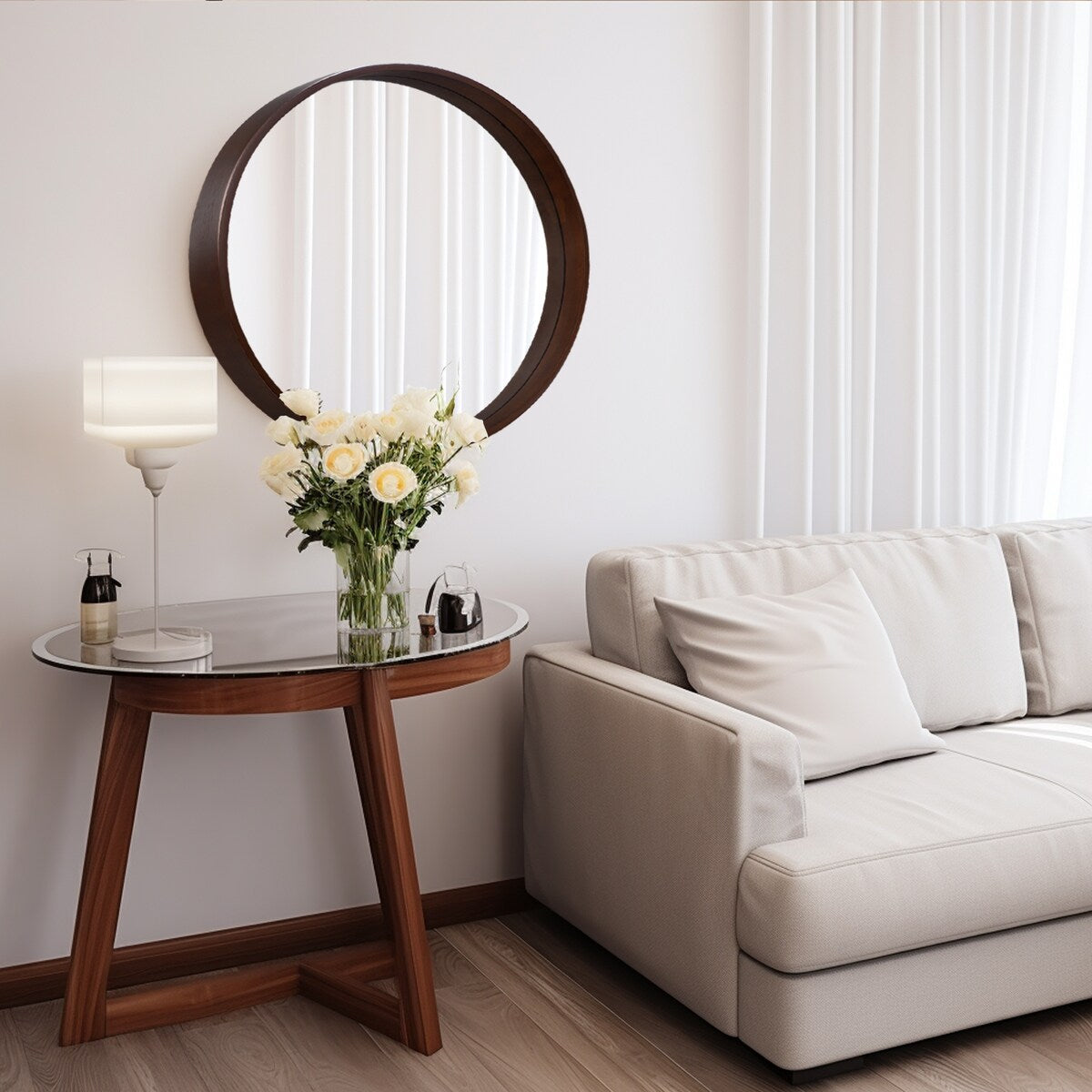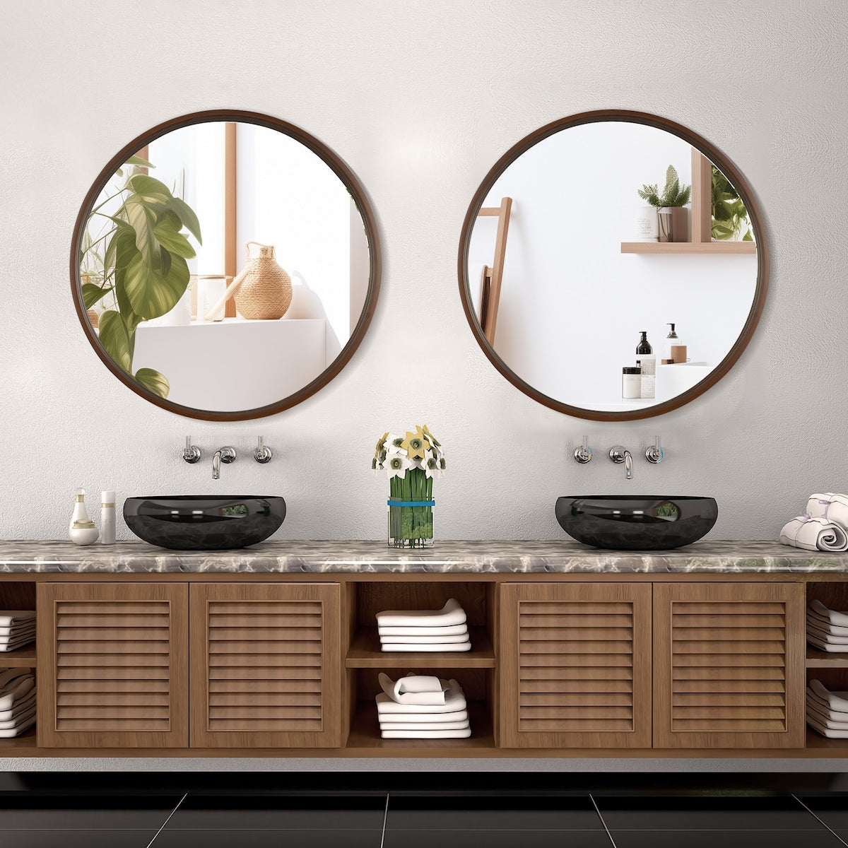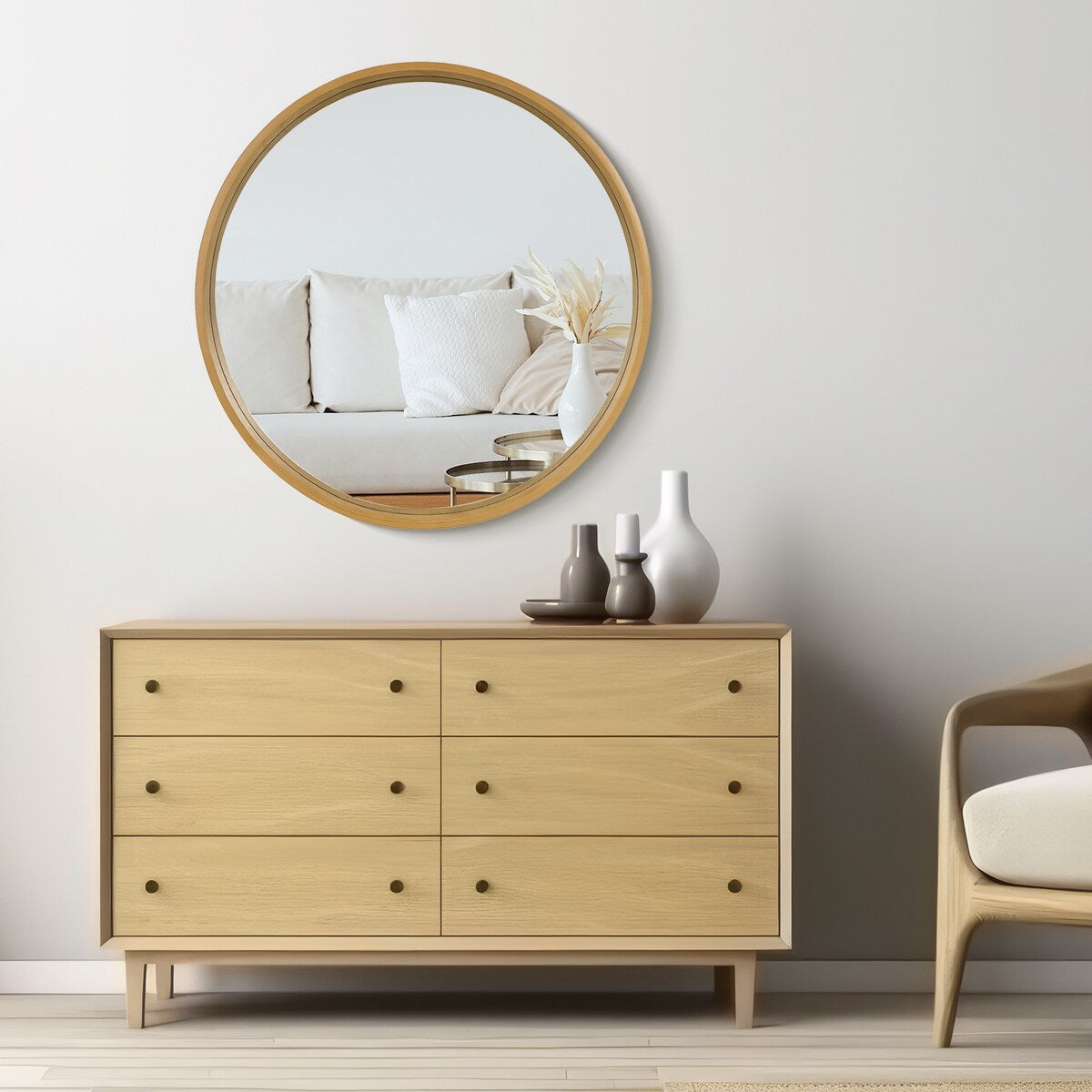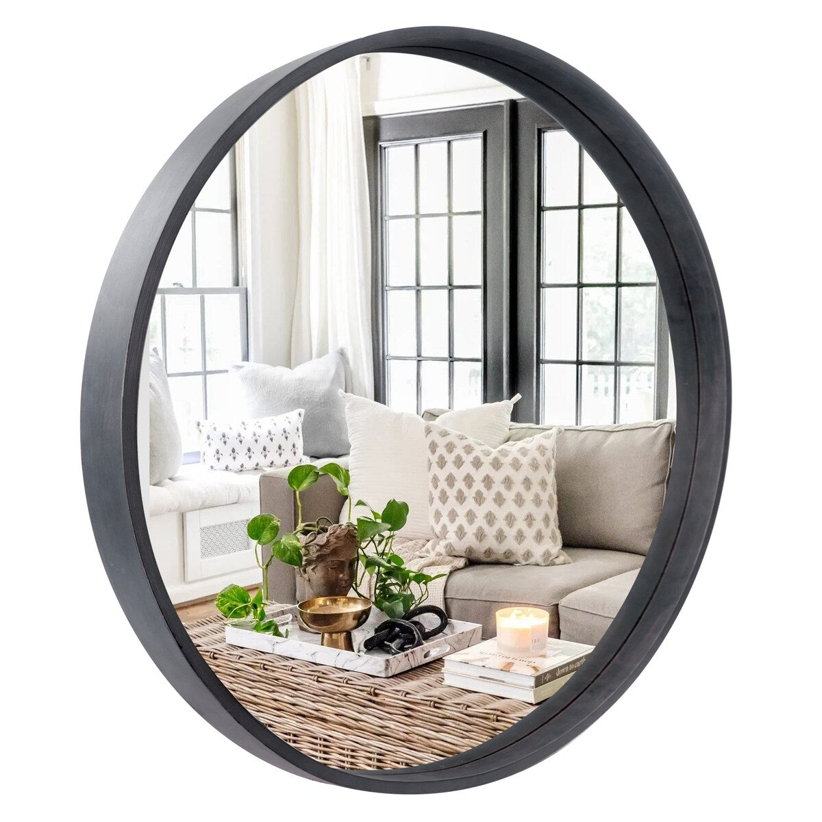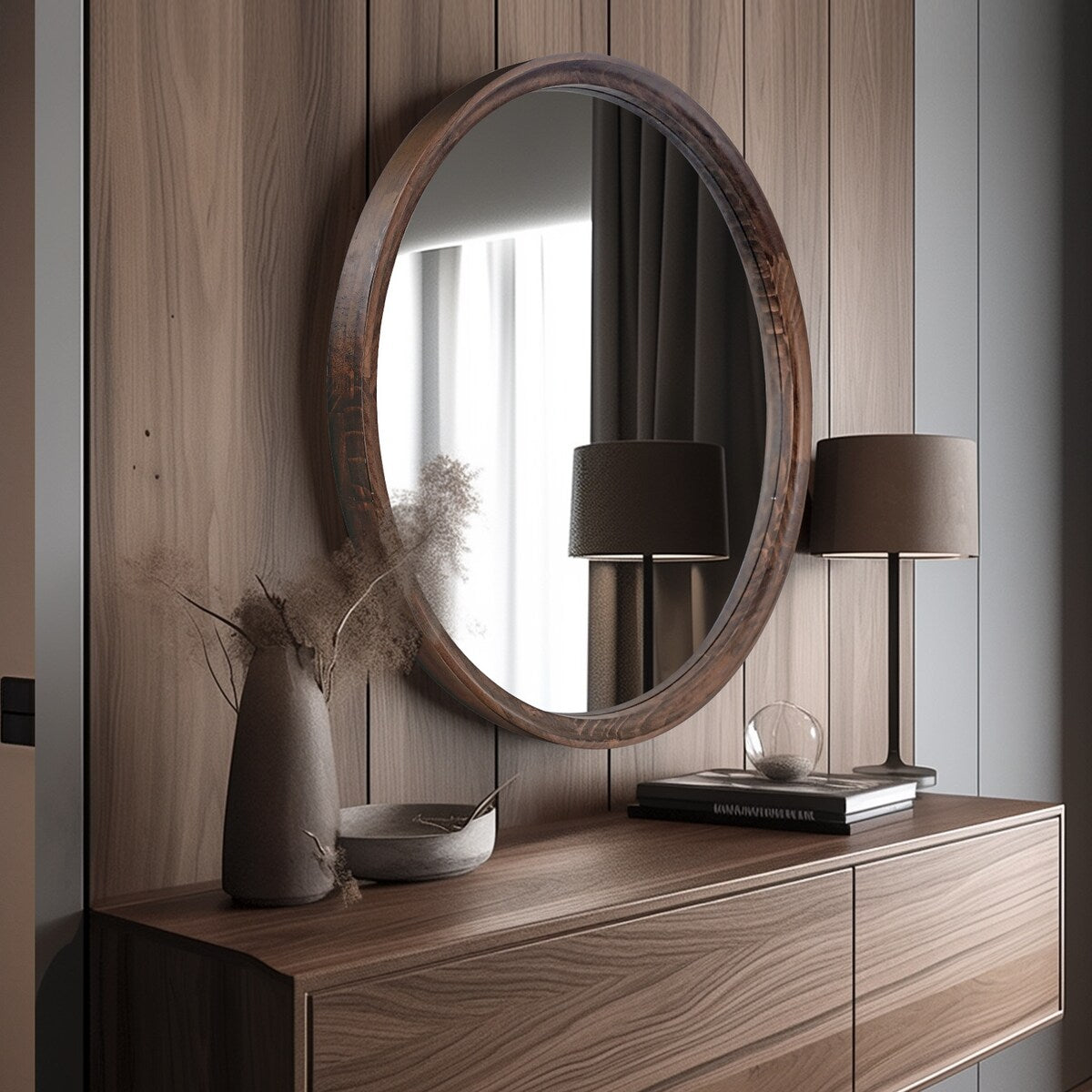 Classic Wooden Frame Farmhouse Round Wall Mirror