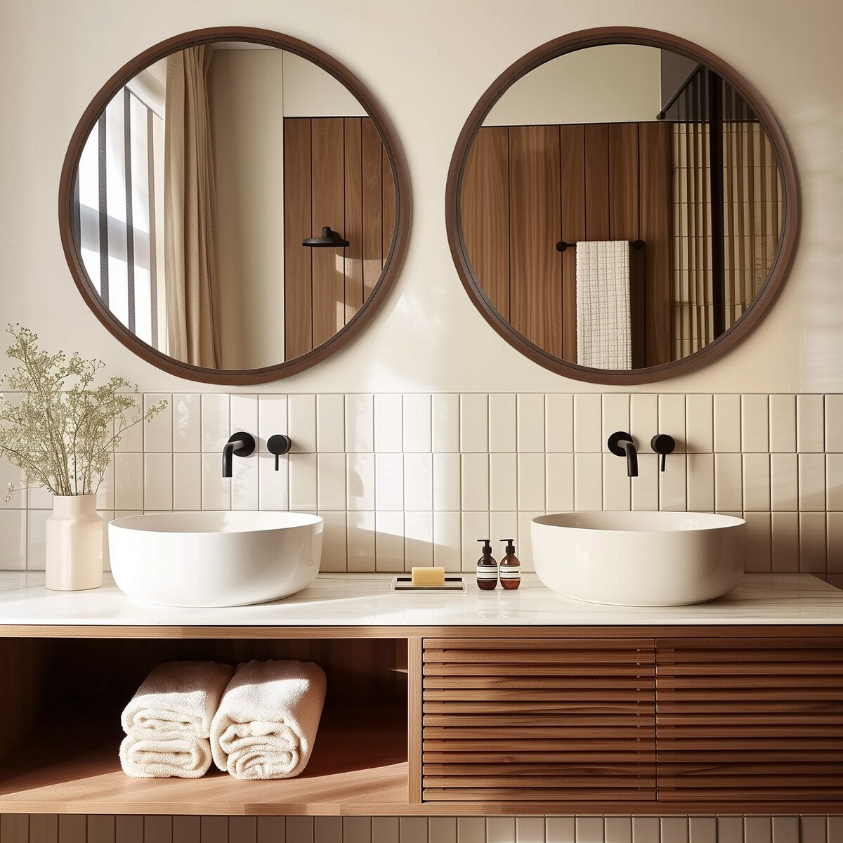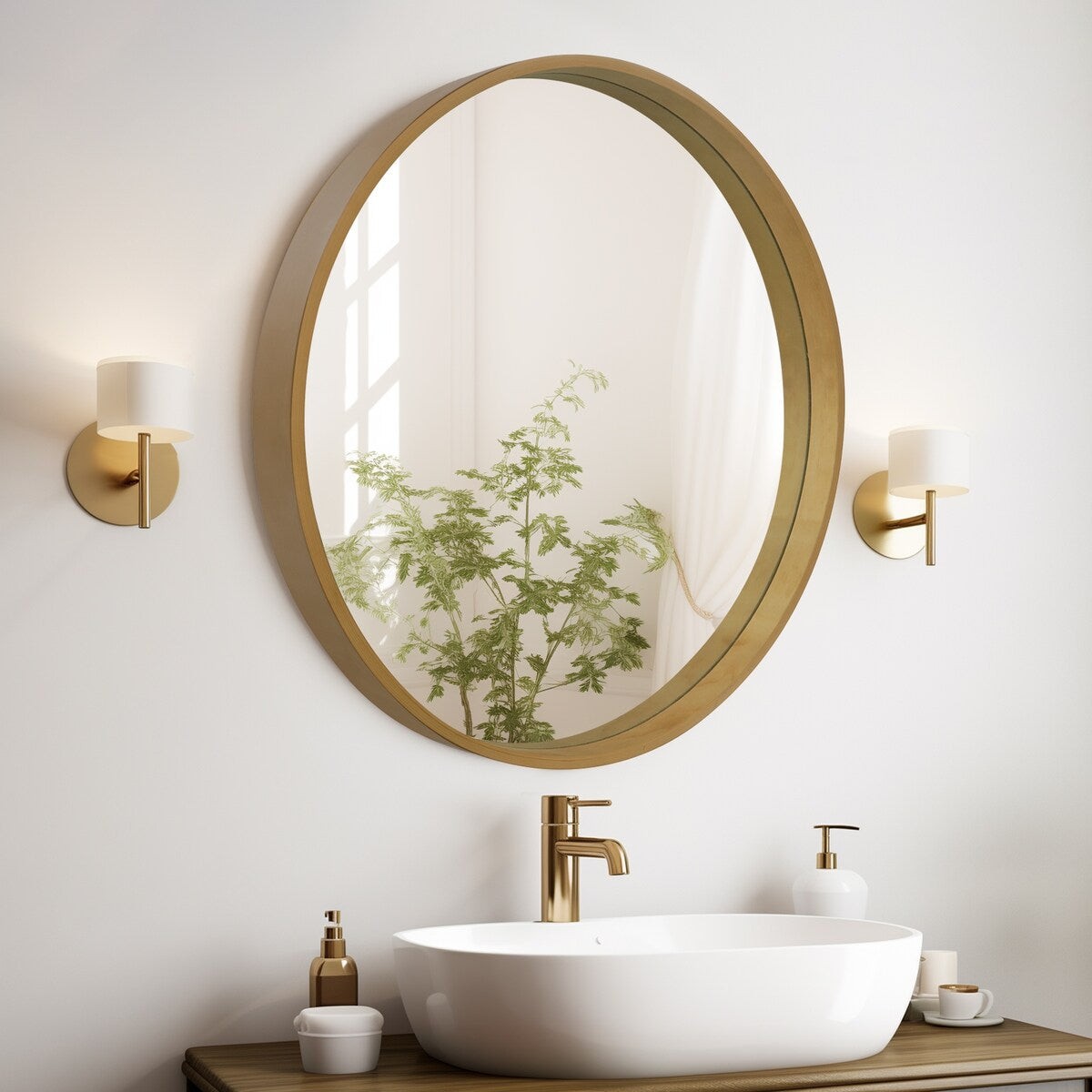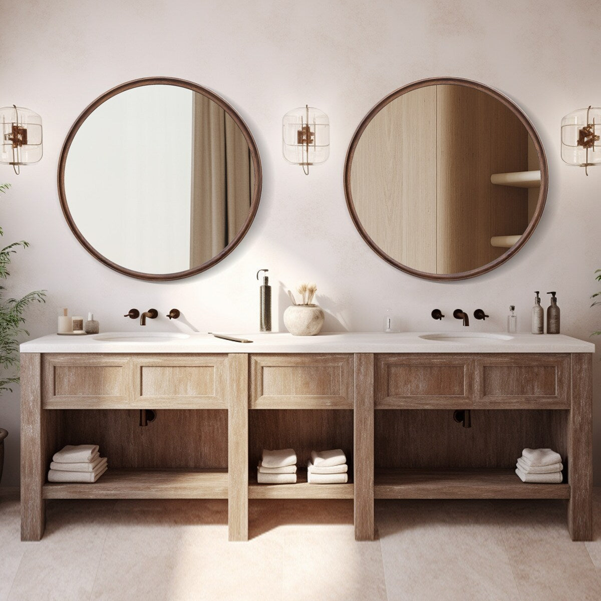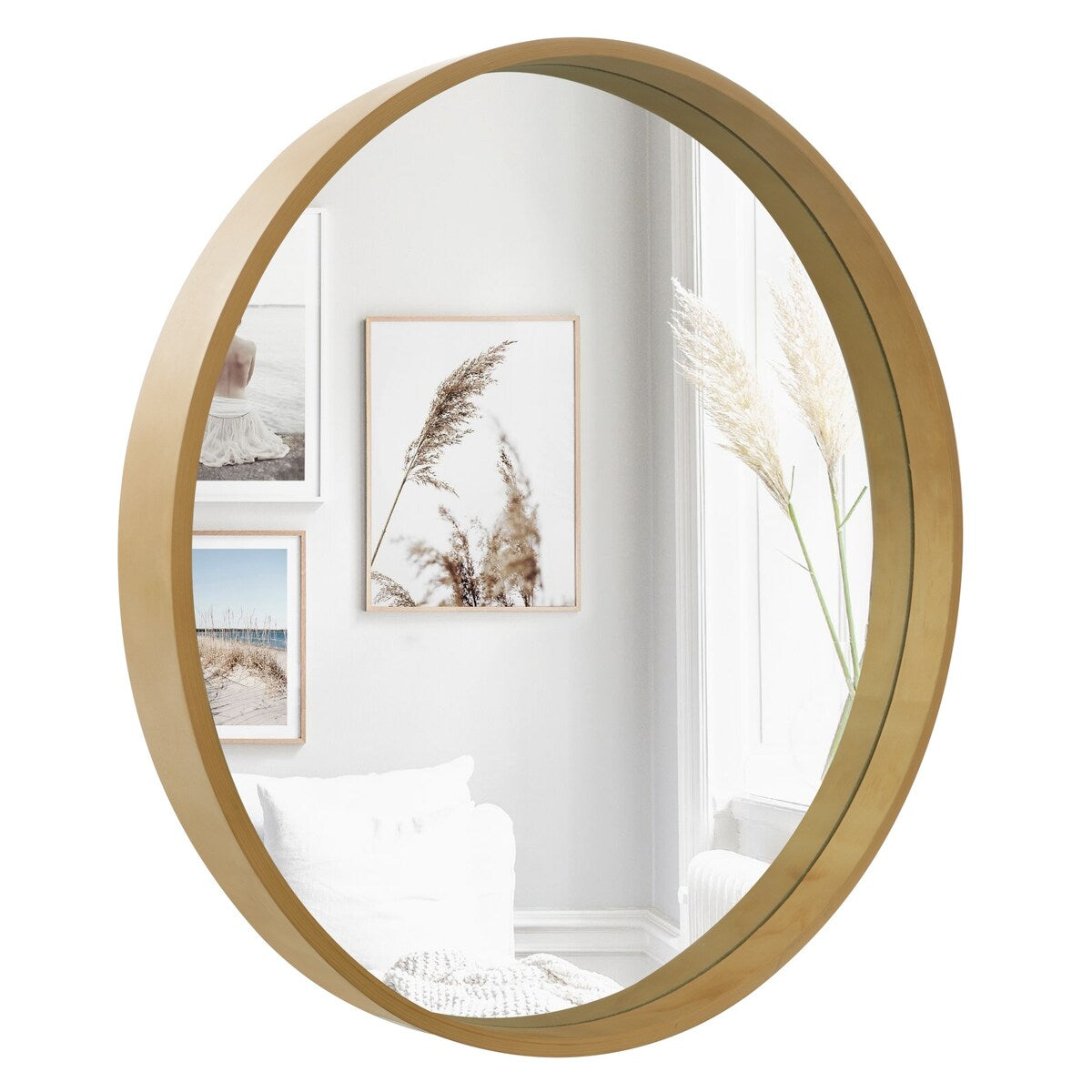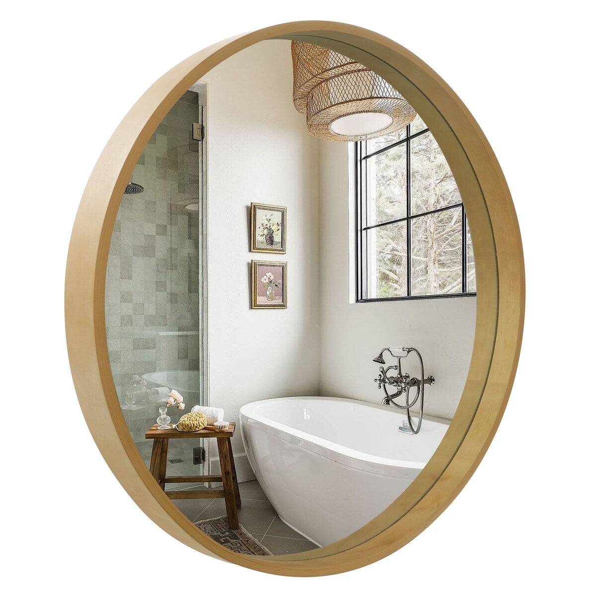 Classic Wooden Frame Farmhouse Round Wall Mirror