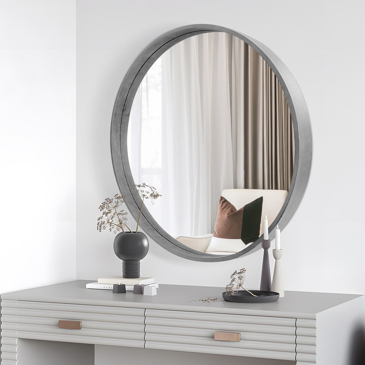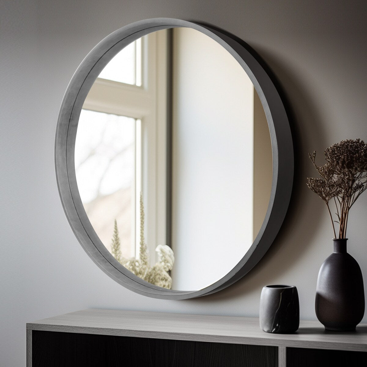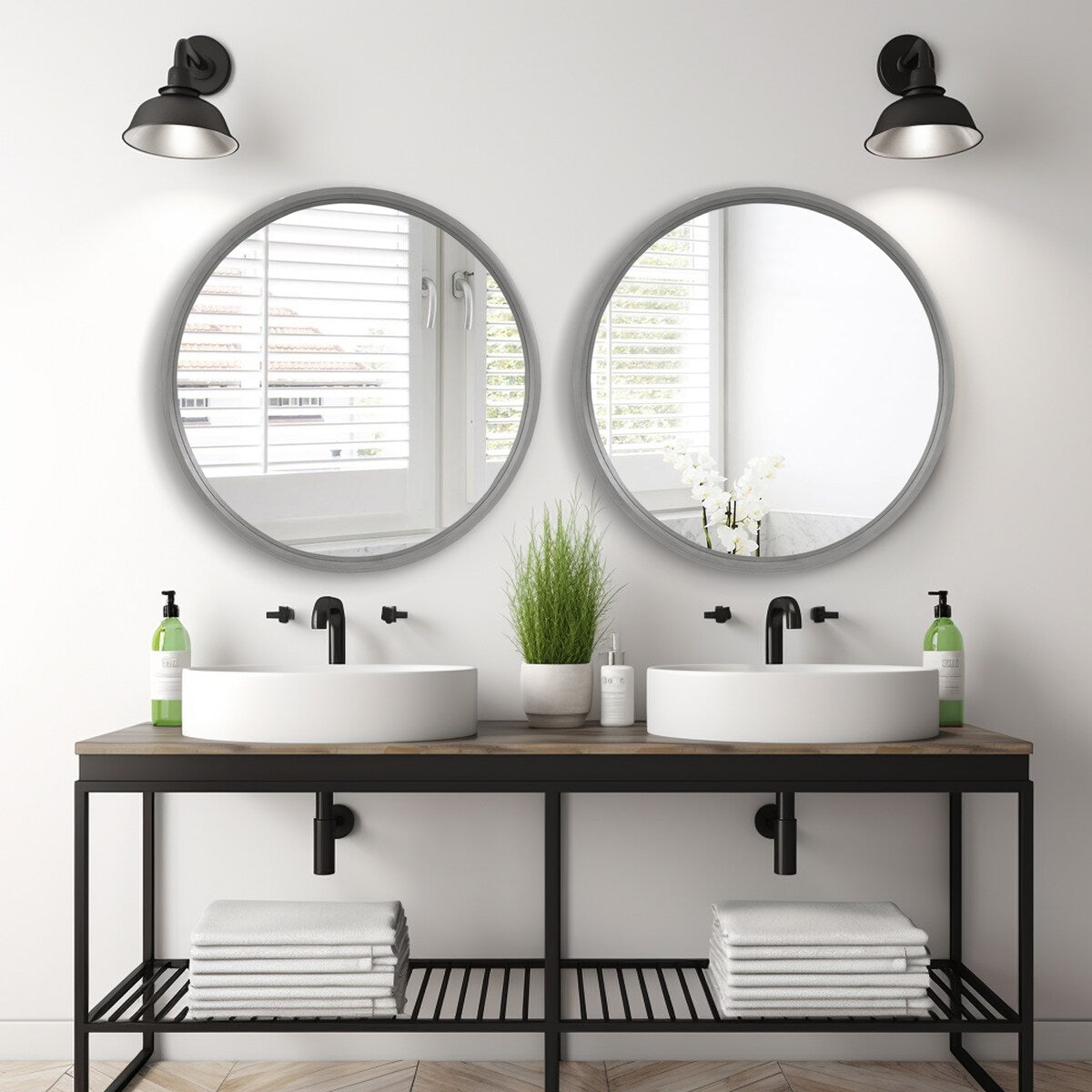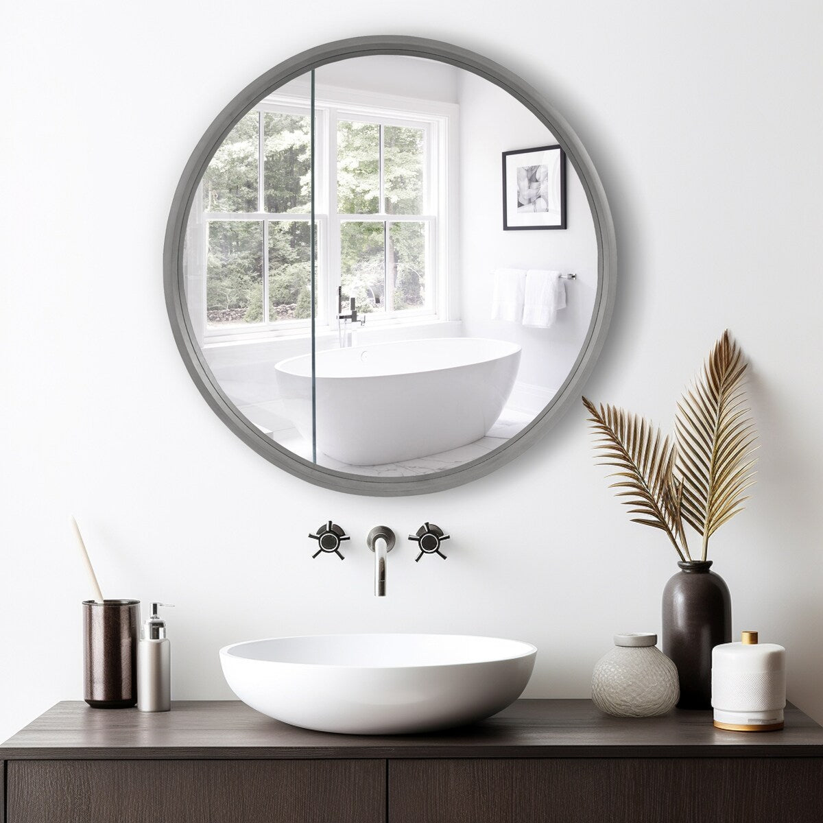 Elevate the elegance of your abode with this exquisite circular mirror. Not only does it enhance the aesthetic appeal, but it also serves the practical purpose of assisting you in your grooming routine. Its contemporary design seamlessly blends with any modern décor, and its size variations make it a versatile addition to any room. You can select from a range of stunning colors, including the charming Washed Gray, the classic Light Oak, the sleek Satin Black, and the rich Satin Walnut. The installation process is effortless, and it will create an illusion of spaciousness and luminosity in your living space.