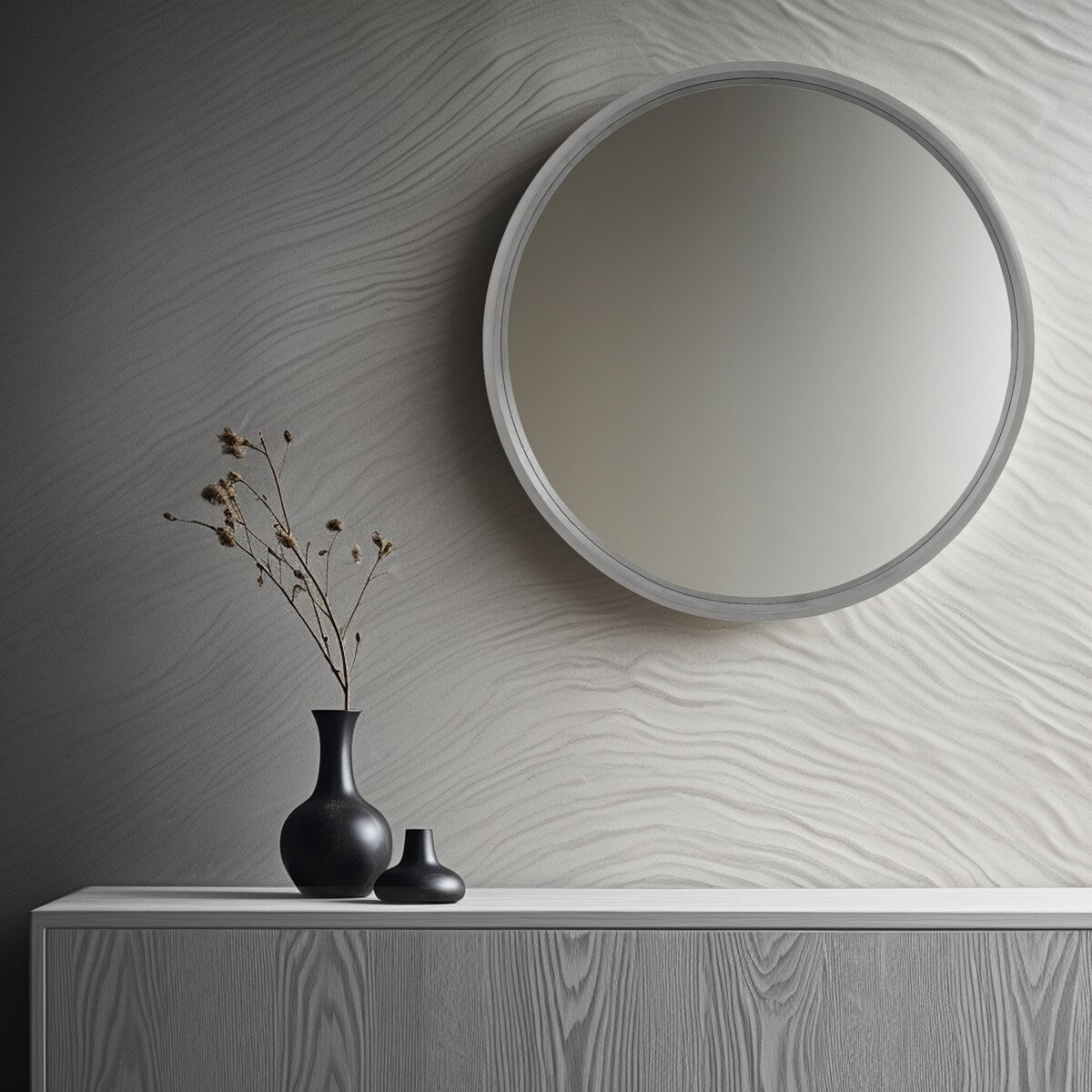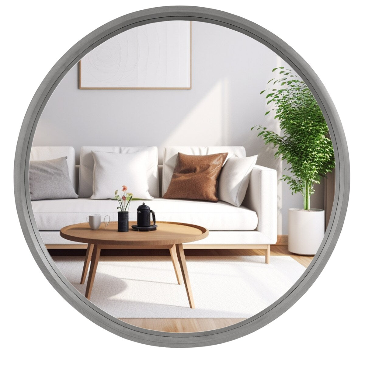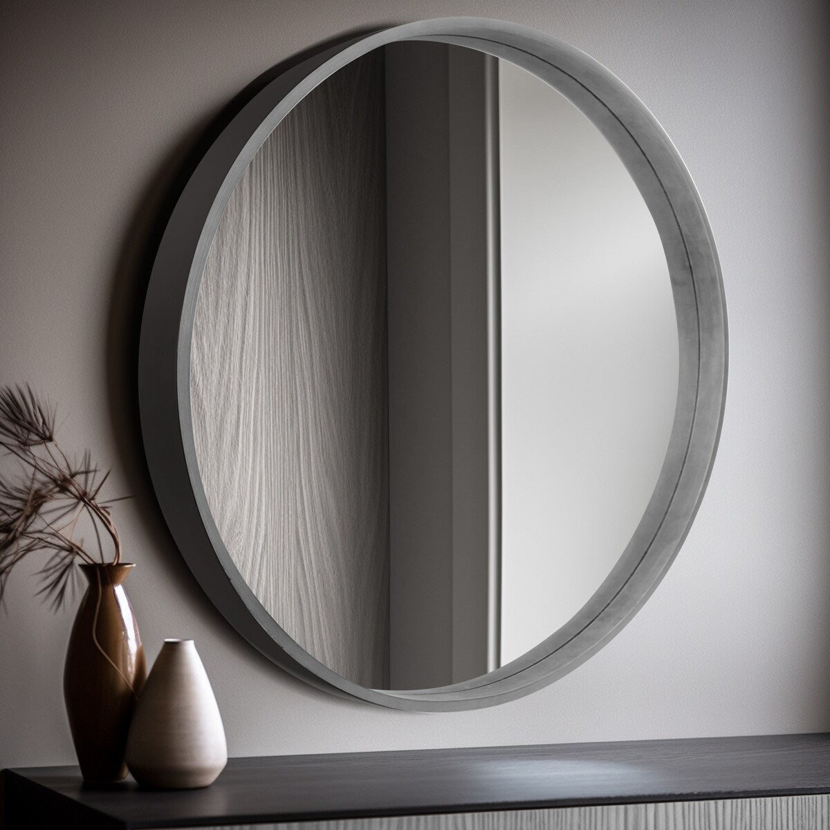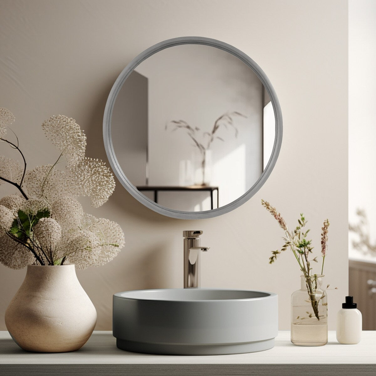 Elevate the elegance of your abode with this exquisite circular mirror. Not only does it enhance the aesthetic appeal, but it also serves the practical purpose of assisting you in your grooming routine. Its contemporary design seamlessly blends with any modern décor, and its size variations make it a versatile addition to any room. You can select from a range of stunning colors, including the charming Washed Gray, the classic Light Oak, the sleek Satin Black, and the rich Satin Walnut. The installation process is effortless, and it will create an illusion of spaciousness and luminosity in your living space.