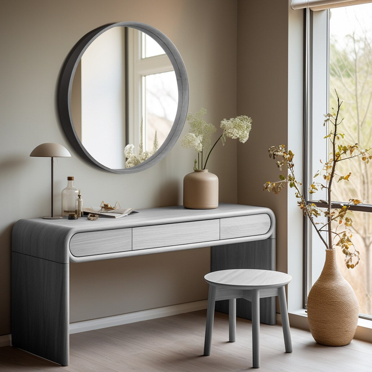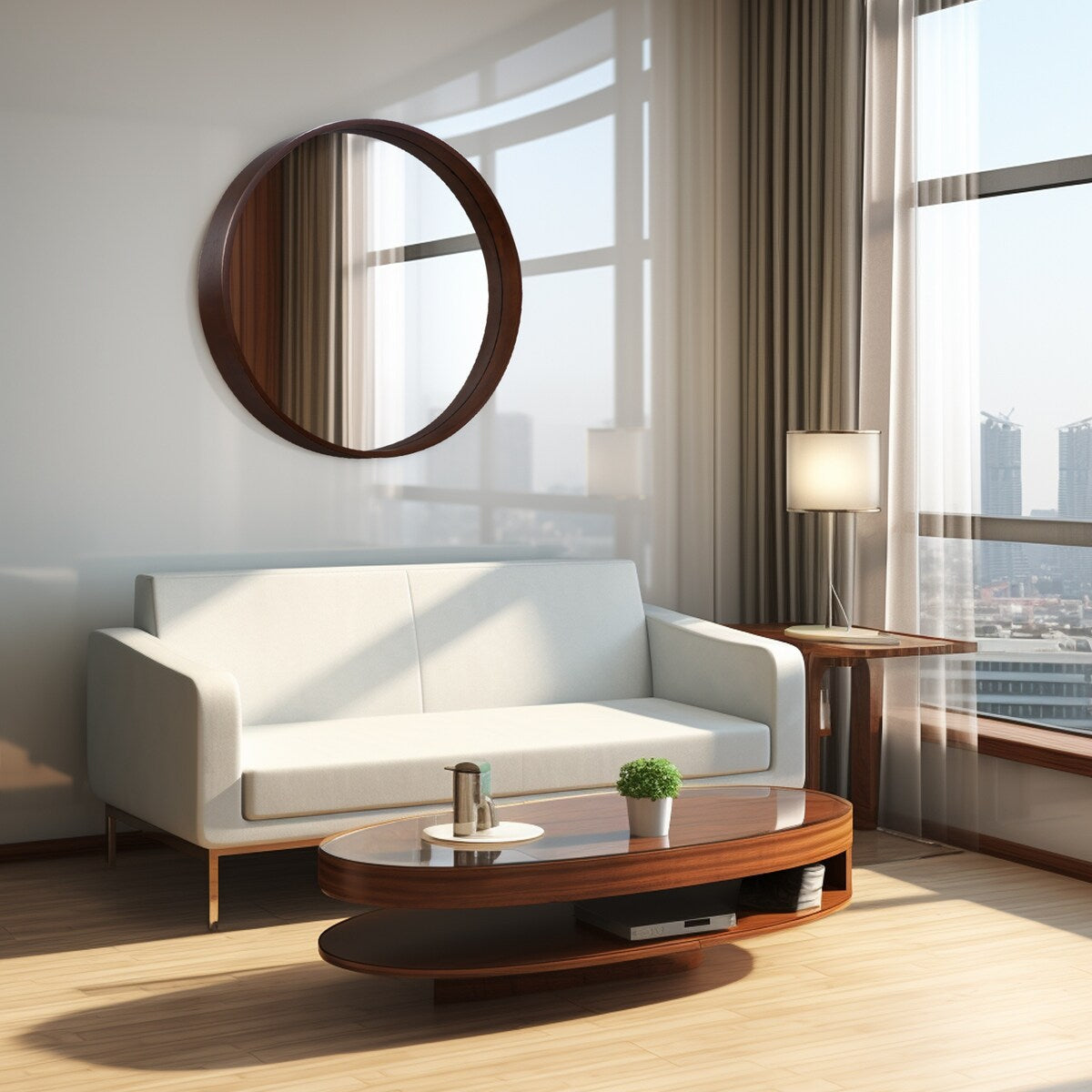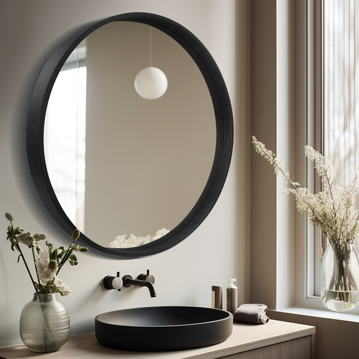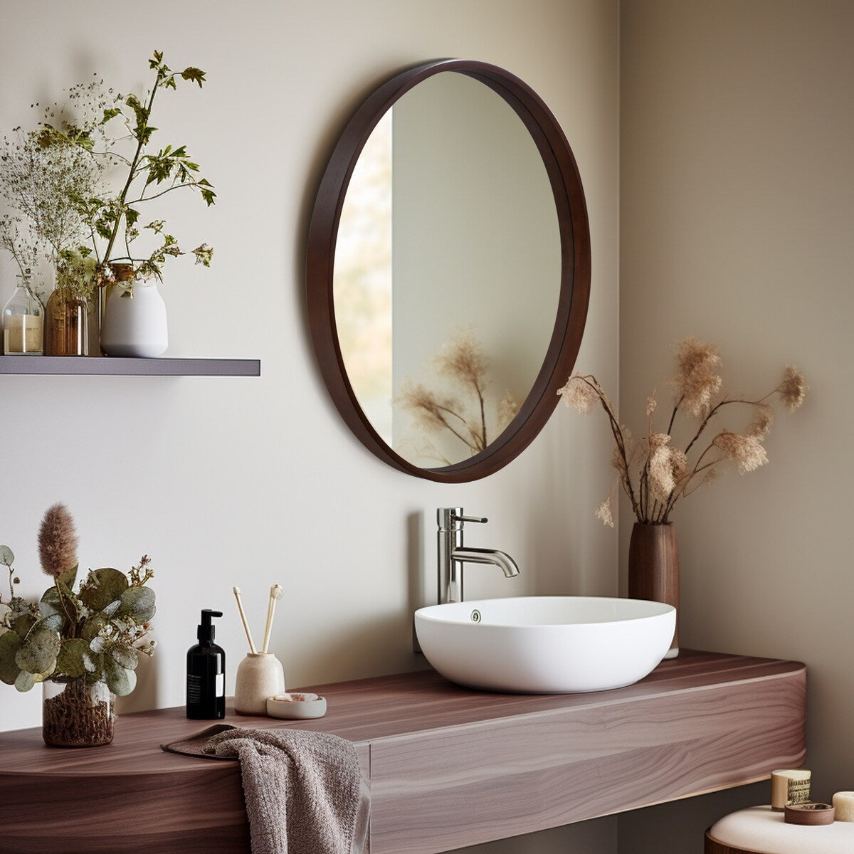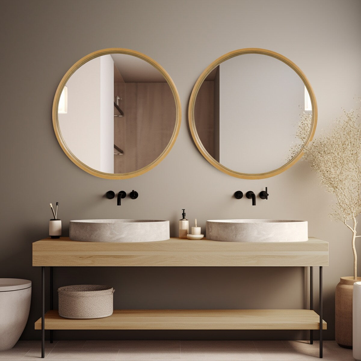 Elevate the elegance of your abode with this exquisite circular mirror. Not only does it enhance the aesthetic appeal, but it also serves the practical purpose of assisting you in your grooming routine. Its contemporary design seamlessly blends with any modern décor, and its size variations make it a versatile addition to any room. You can select from a range of stunning colors, including the charming Washed Gray, the classic Light Oak, the sleek Satin Black, and the rich Satin Walnut. The installation process is effortless, and it will create an illusion of spaciousness and luminosity in your living space.