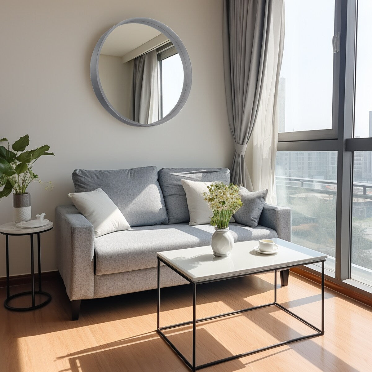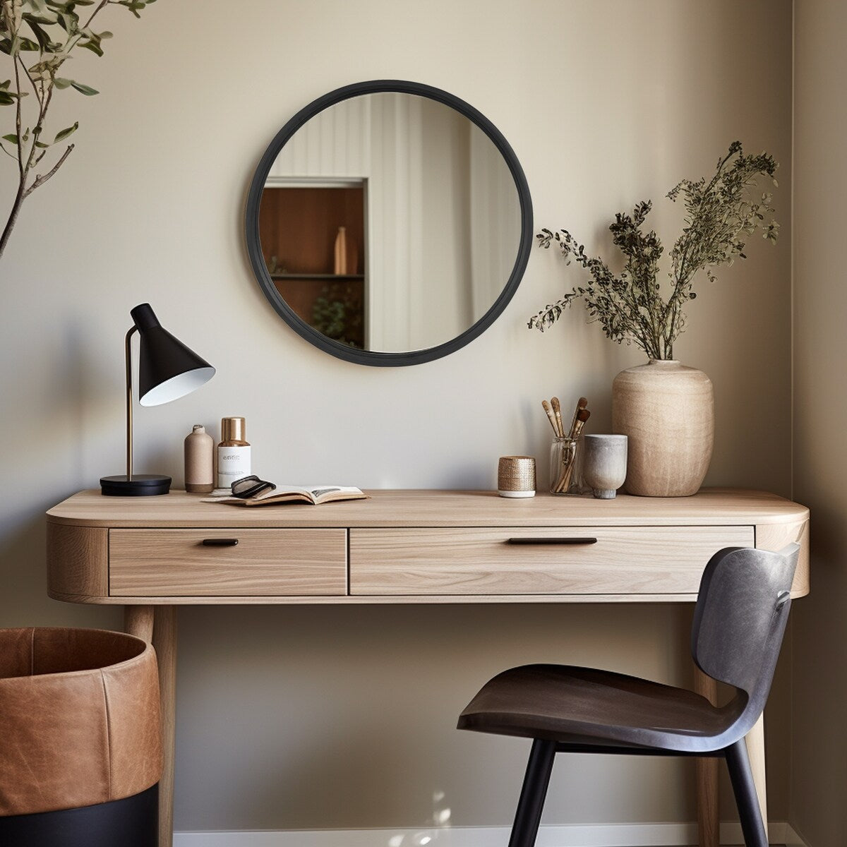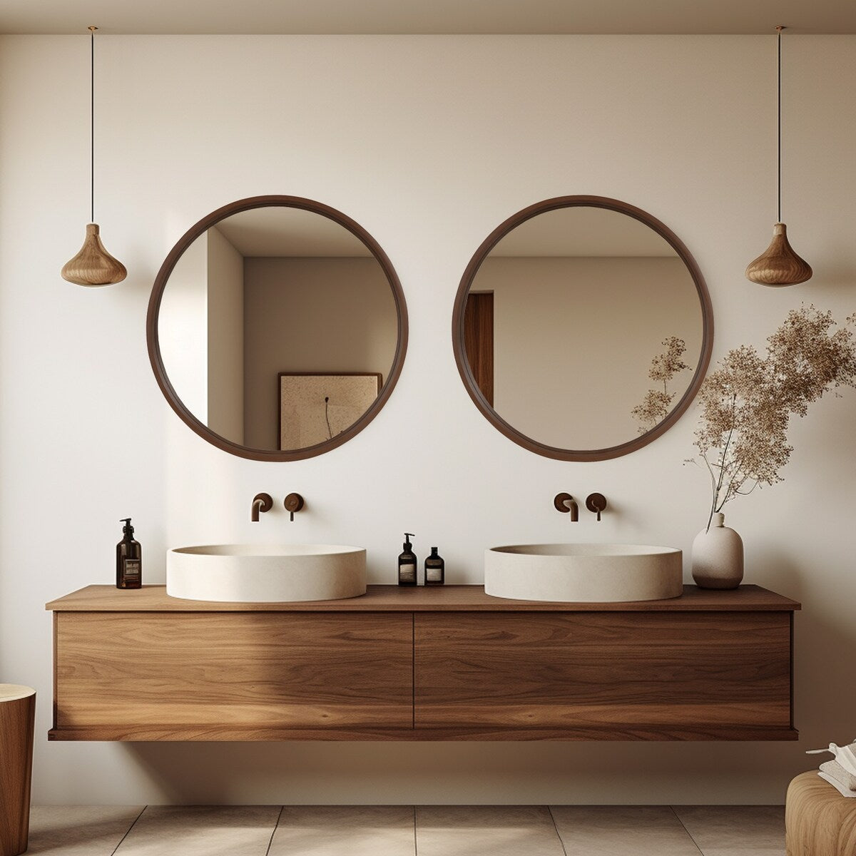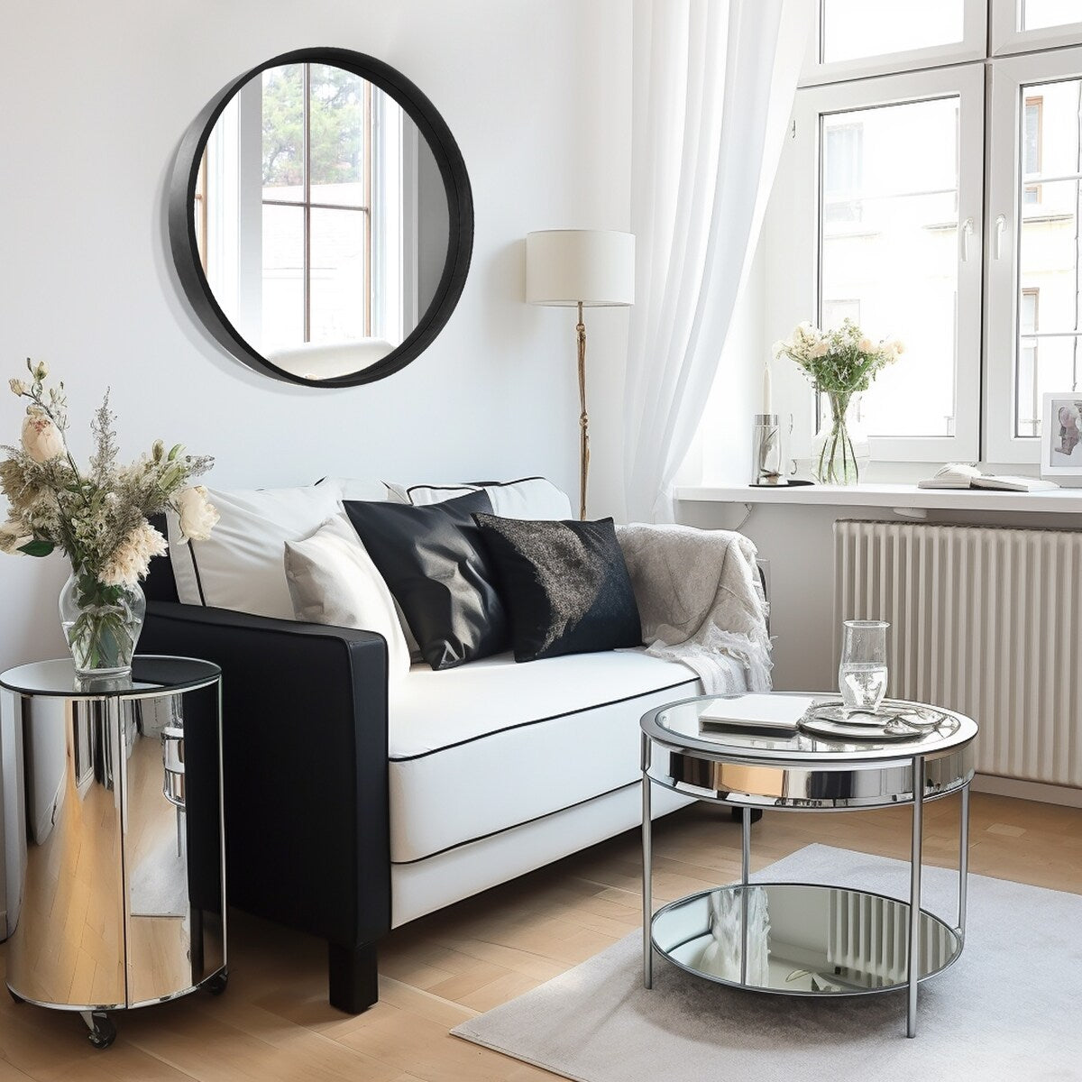 Elevate the elegance of your abode with this exquisite circular mirror. Not only does it enhance the aesthetic appeal, but it also serves the practical purpose of assisting you in your grooming routine. Its contemporary design seamlessly blends with any modern décor, and its size variations make it a versatile addition to any room. You can select from a range of stunning colors, including the charming Washed Gray, the classic Light Oak, the sleek Satin Black, and the rich Satin Walnut. The installation process is effortless, and it will create an illusion of spaciousness and luminosity in your living space.