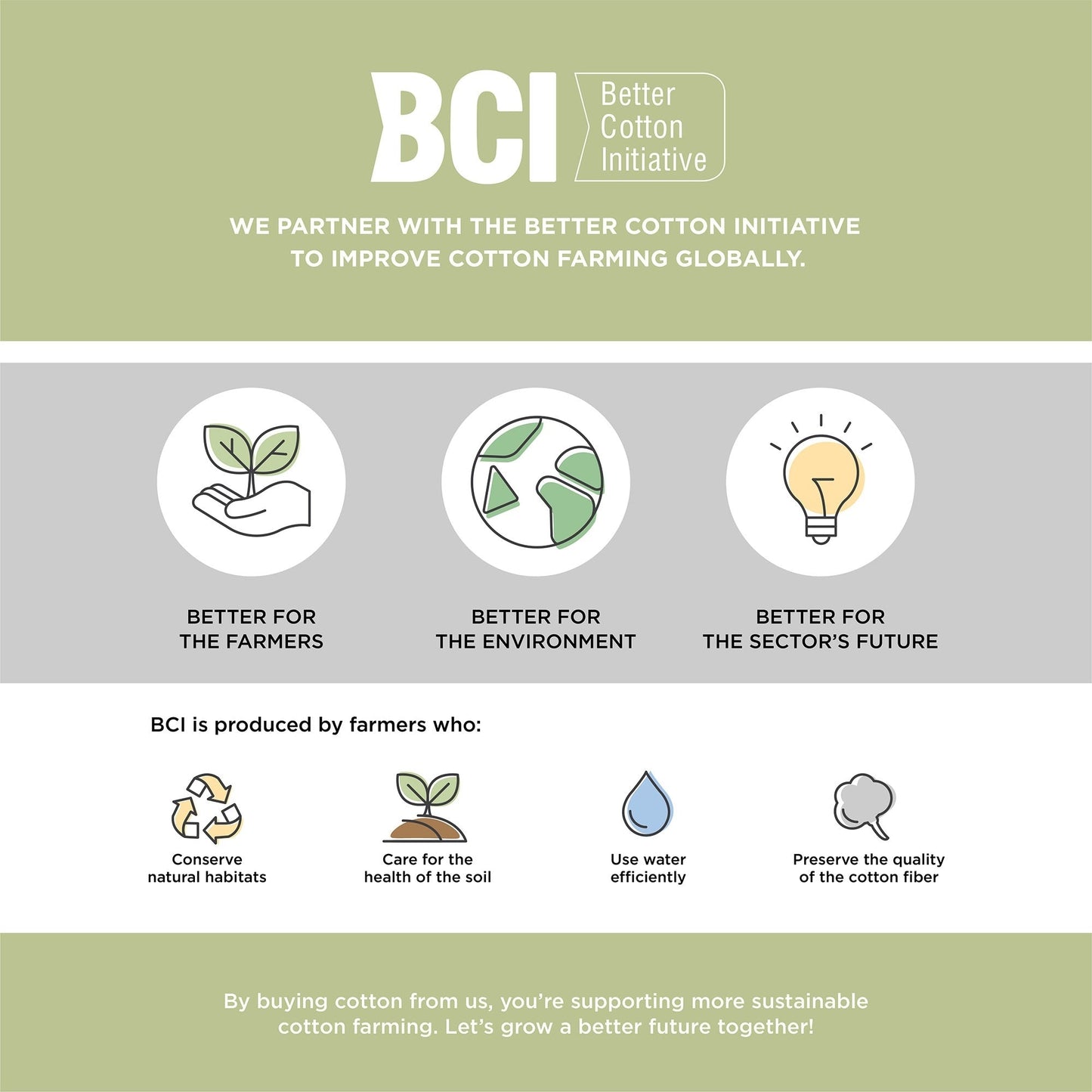 - Better Cotton Initiative (BCI) certified, made from environmentally friendly and sustainably sourced cotton