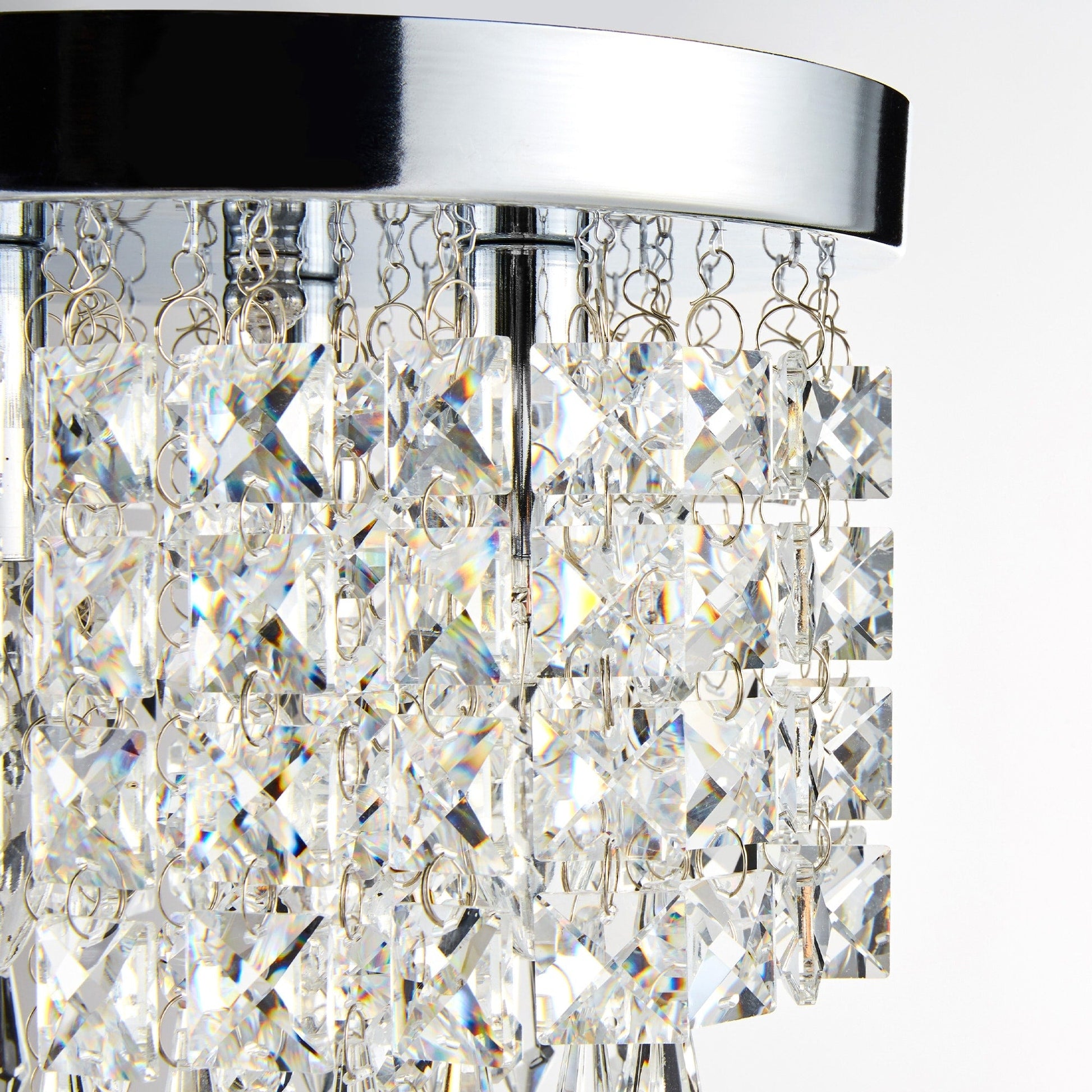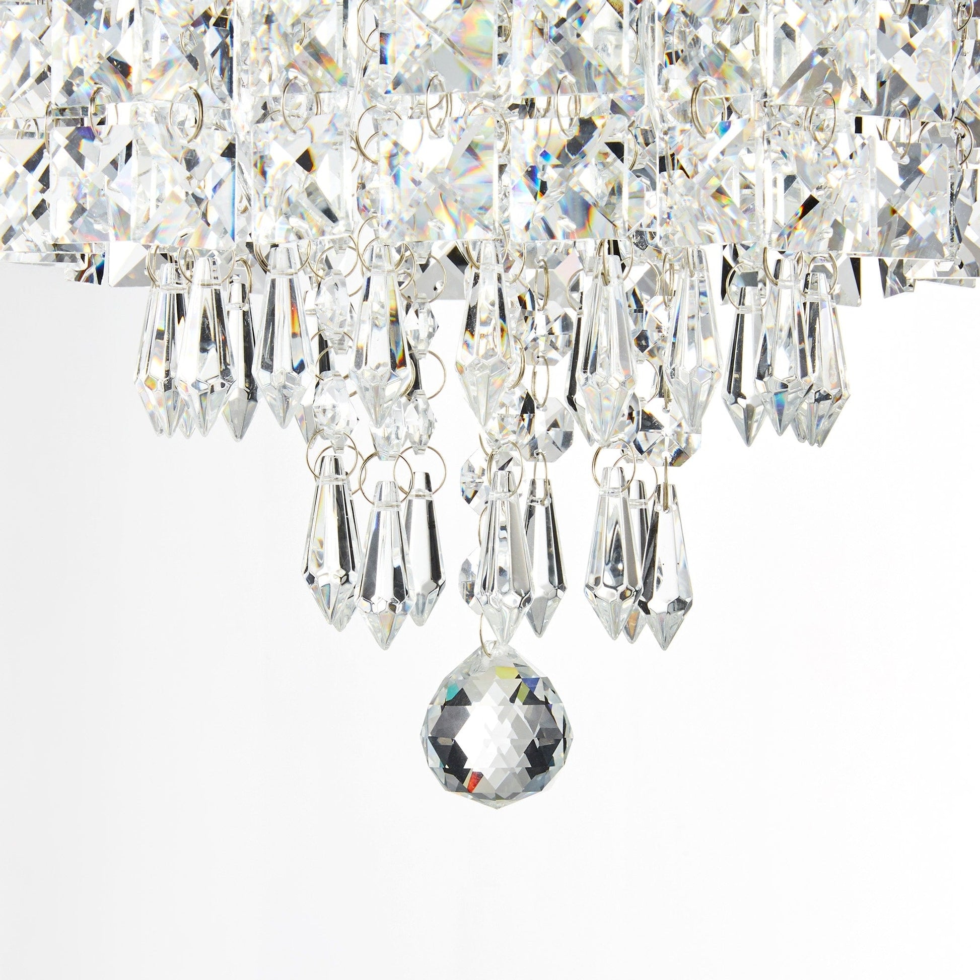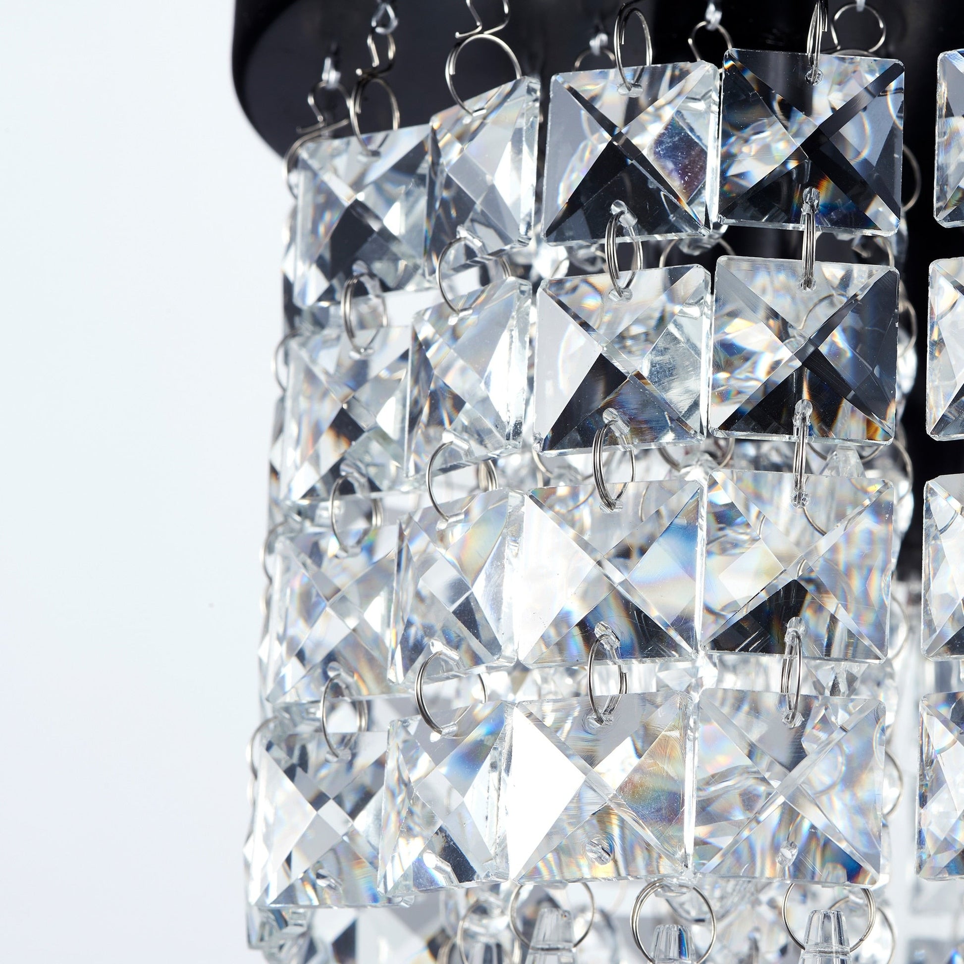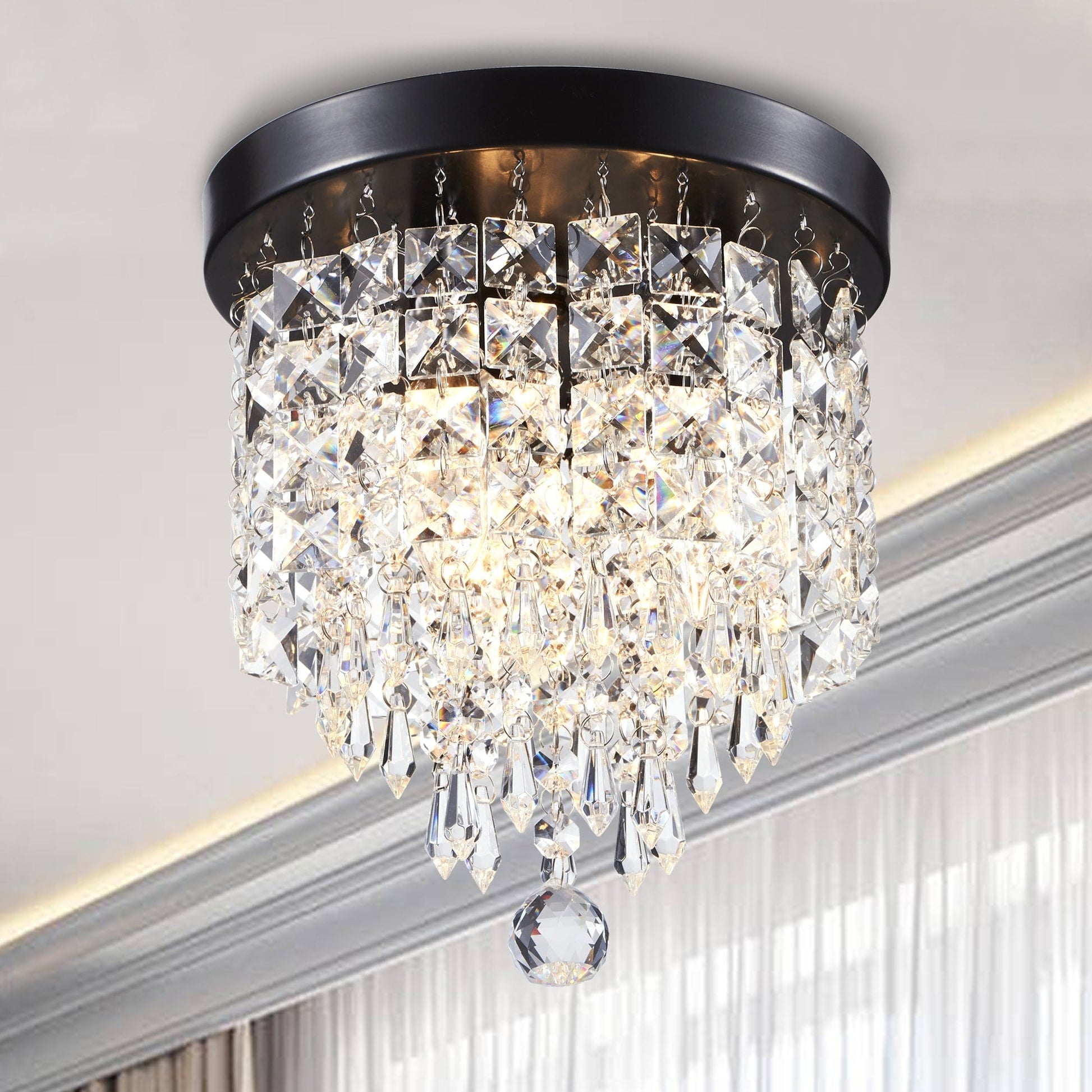 Elevate your decor with this CO-Z mini crystal chandelier. Measuring just nine inches in diameter, it adds a touch of glamour to any room. The dangling crystal accents beautifully scatter light for a stunning effect.