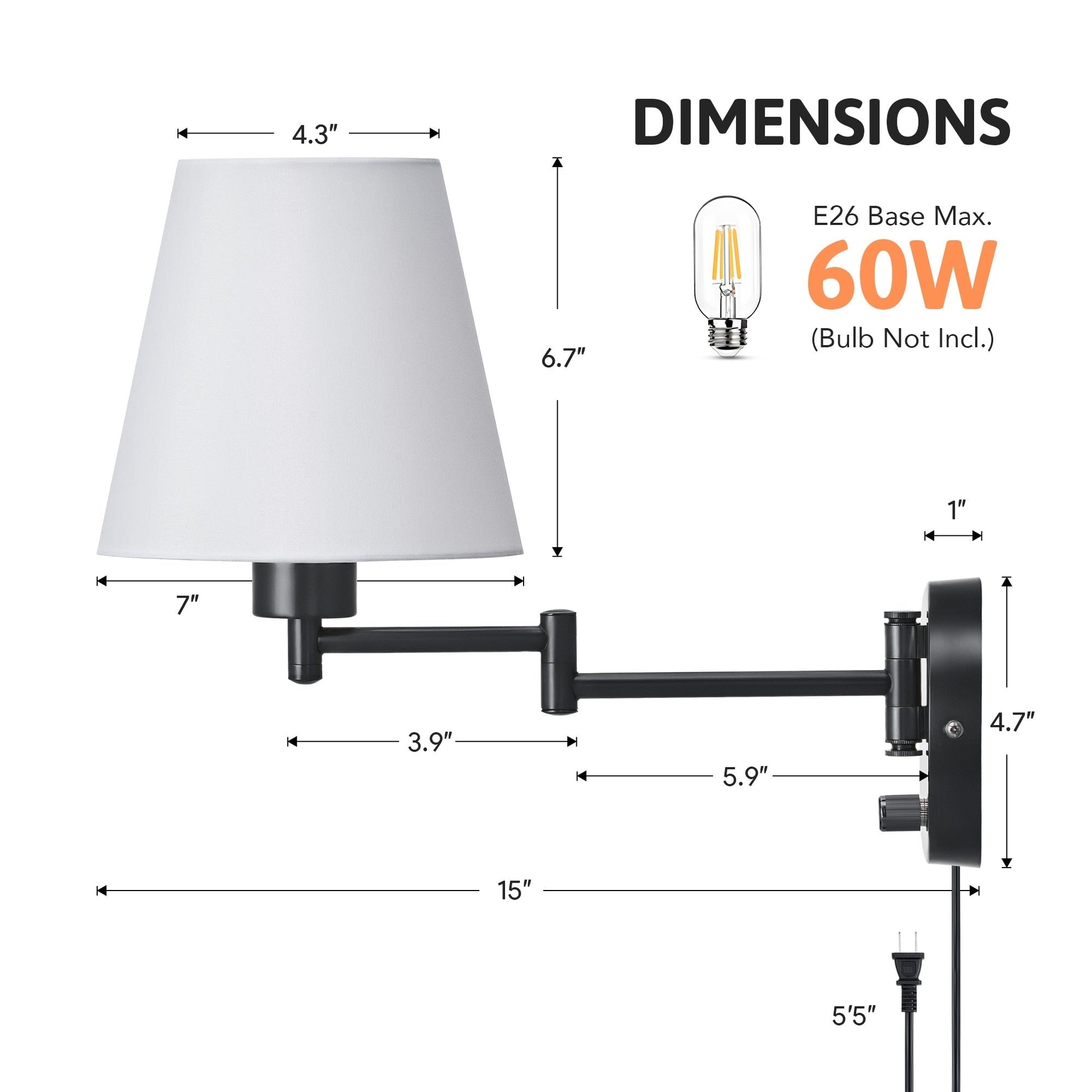 This swing arm wall mount lamp is a beautiful addition to your home, office, or dorm room thanks to its timeless transitional style, which brings together traditional and modern designs. Matching home decors from industrial minimalist to rustic farmhouse, it forms a cohesive and calming addition to your bedroom, living room, or hallways. The attractive finish provides corrosion resistance to handle damp environments such as bathrooms and enclosed patios as well.