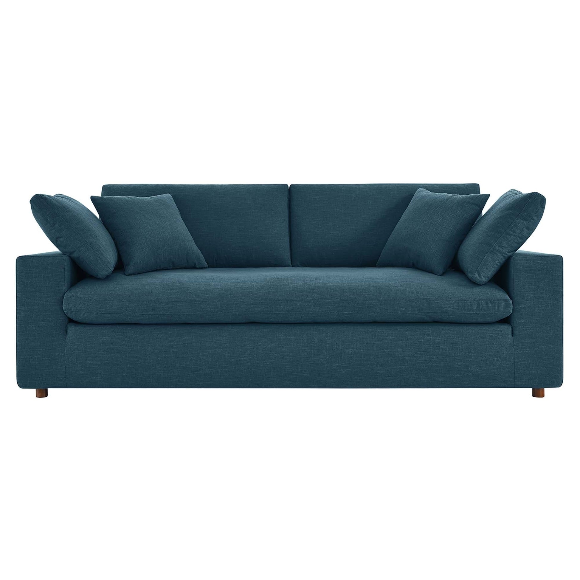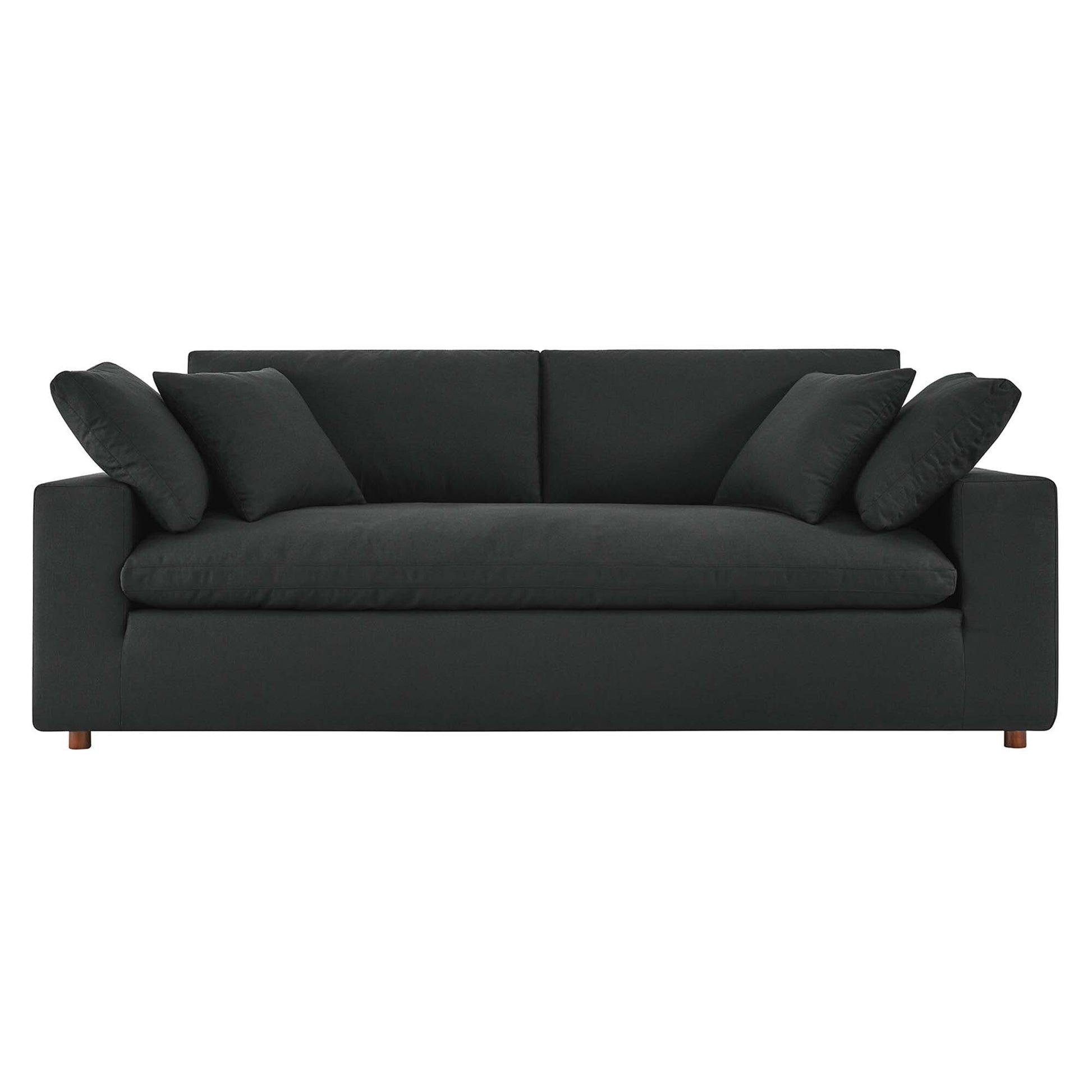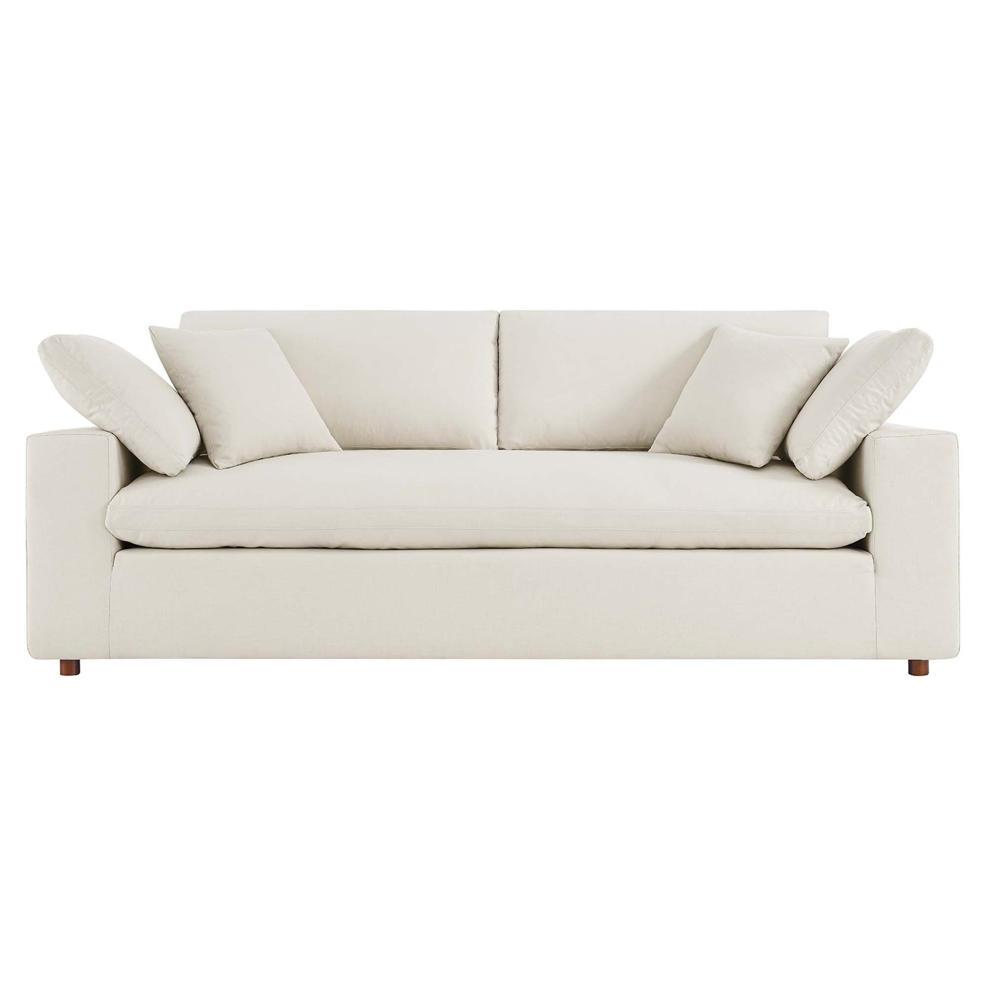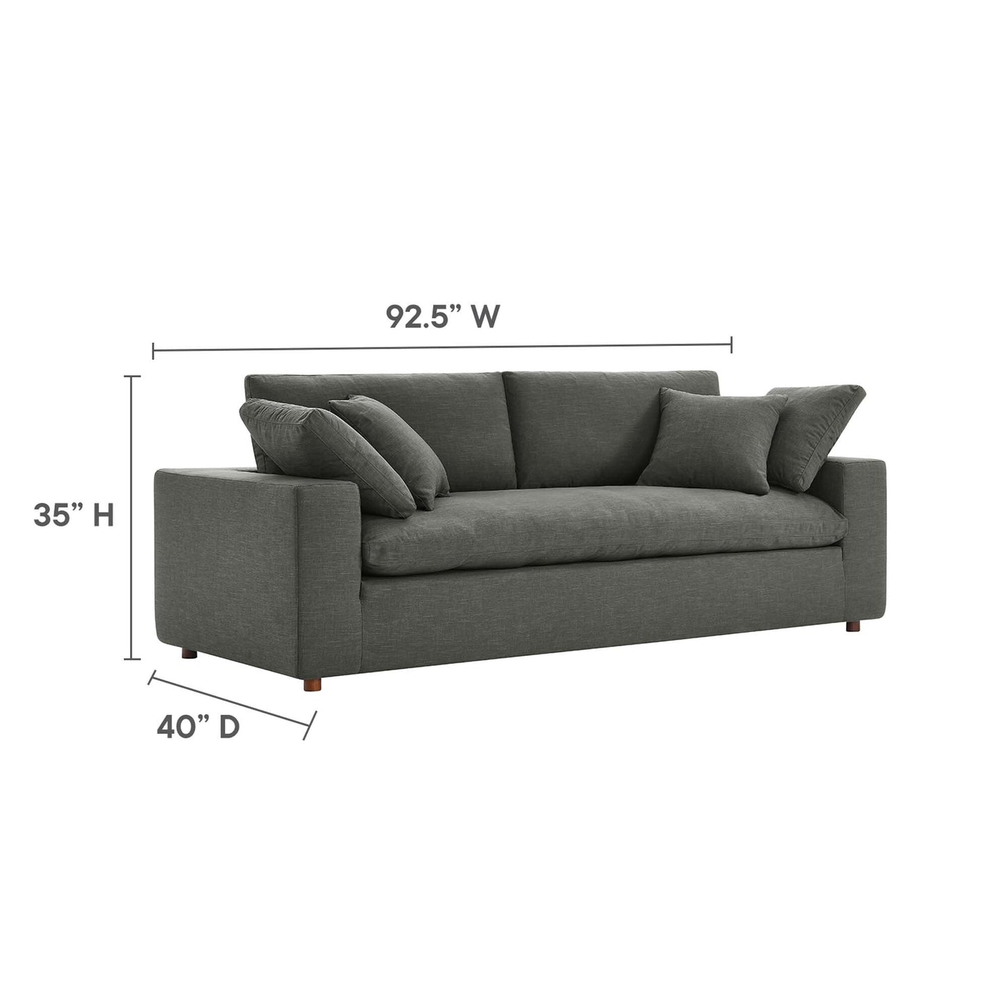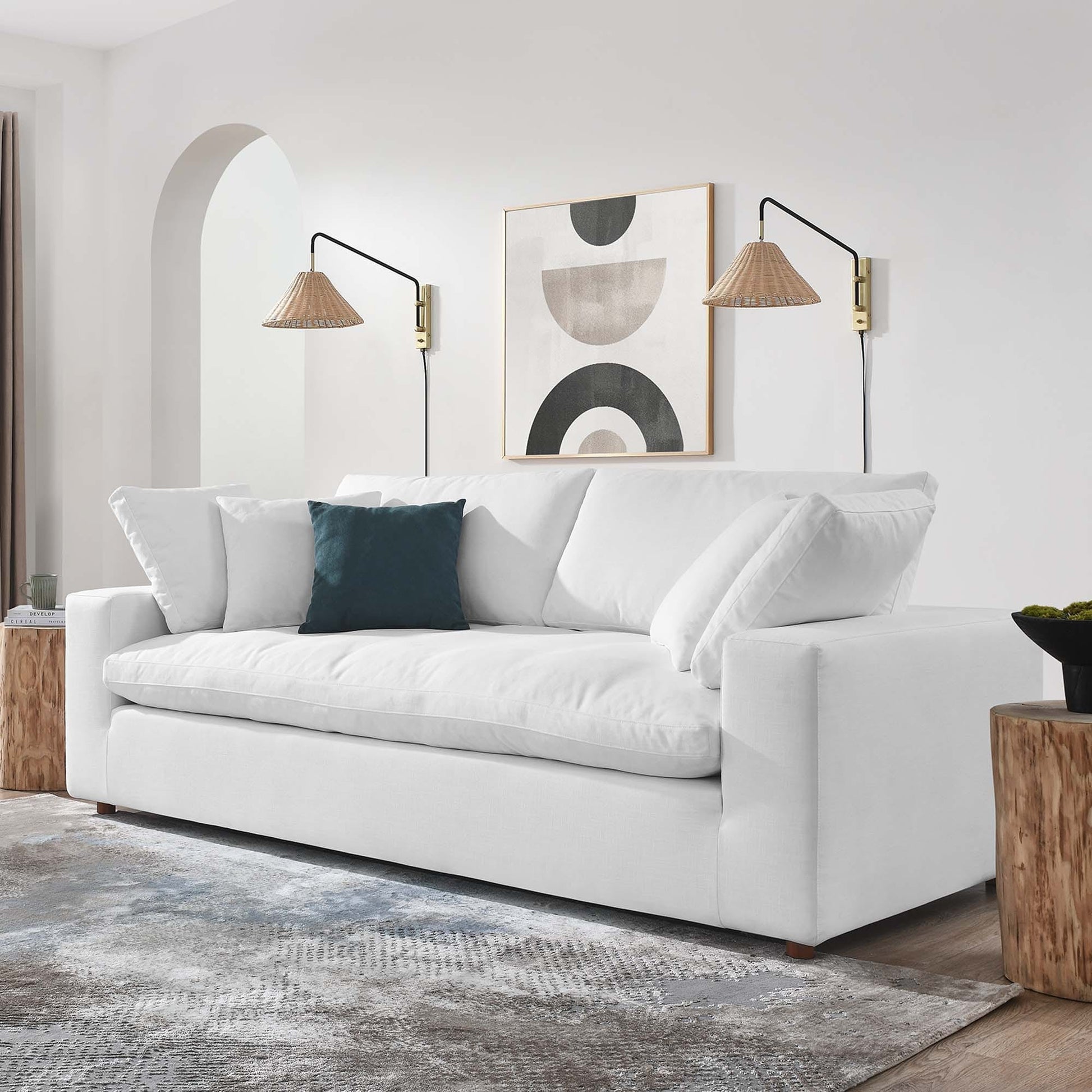 A haven for cozy relaxation, the Commix 3-Seater Sofa features plush comfort, clean-lined design, and a spacious profile, that makes an attractive statement in the modern home. Upholstered in polyester fabric that grants a luxe linen texture, this contemporary sofa comes with solid wood construction and plush cushions for a luxurious sink-in feel. Commix comes with generously padded down feather and cotton cushions, and padded foam bases, making this sectional sofa collection perfect for the living room, family room, or game room. Made for sprawling out or curling up, Commix beckons you and guests to sit and stay a while. Includes plastic foot glides. Weight Capacity: 992 lbs.