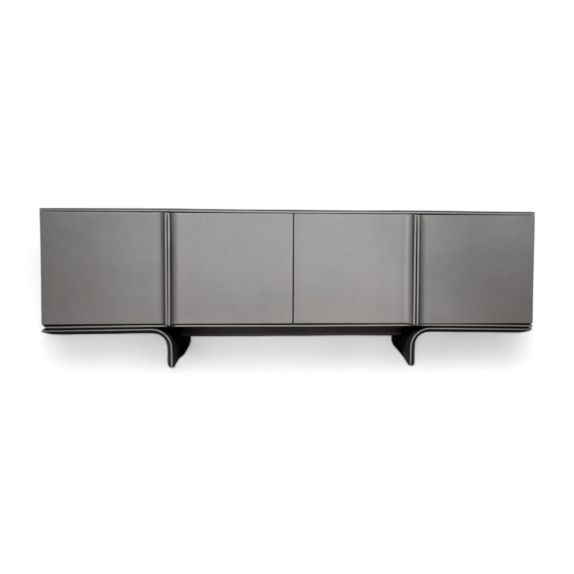 [description] Conçu exclusivement pour les salles à manger modernes Habitus, le buffet Leaf Graphite allie beauté de ses formes et fonctionnalité. Il est doté d'un grand meuble de rangement à quatre portes, de deux tiroirs intérieurs rembourrés de velours et d'étagères. Le tout est laqué en finition métallisée mate Graphite. Son plateau en verre couleur Graphite et ses pieds en bois courbés uniques en font un meuble moderne et original, idéal pour apporter une touche design aux espaces contemporains.