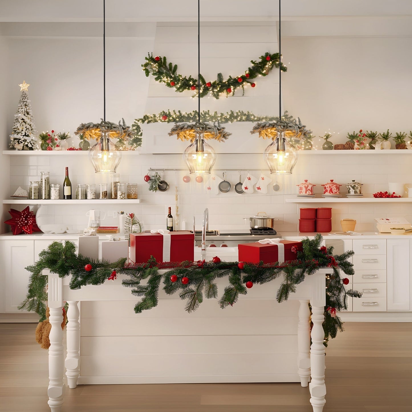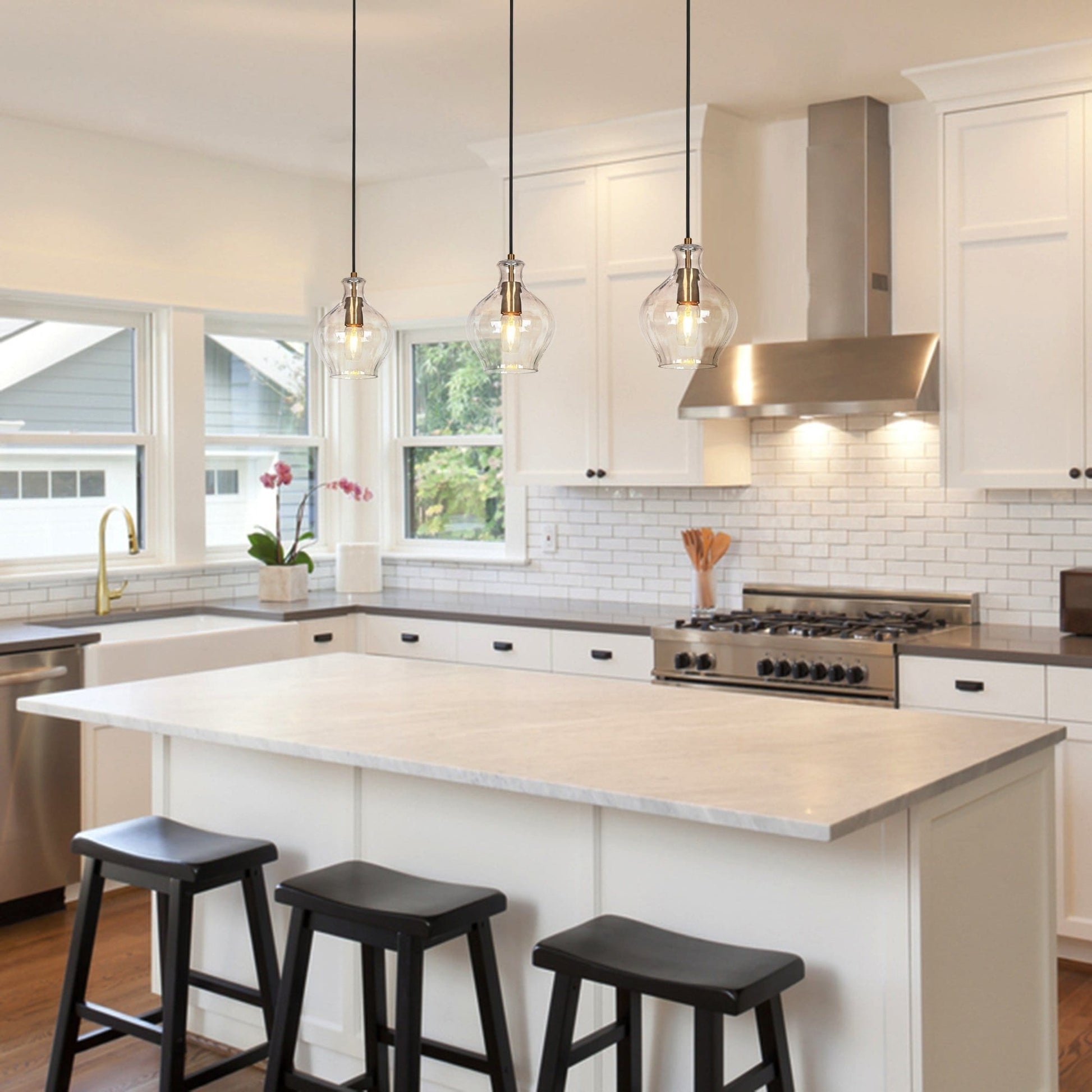 - Size guide: The height of the pendant is approximately the same as an iPad, while the width is similar to the overall length of an iPhone; recommend 2 in 4ft small island and 3 or more in 6-8 ft island