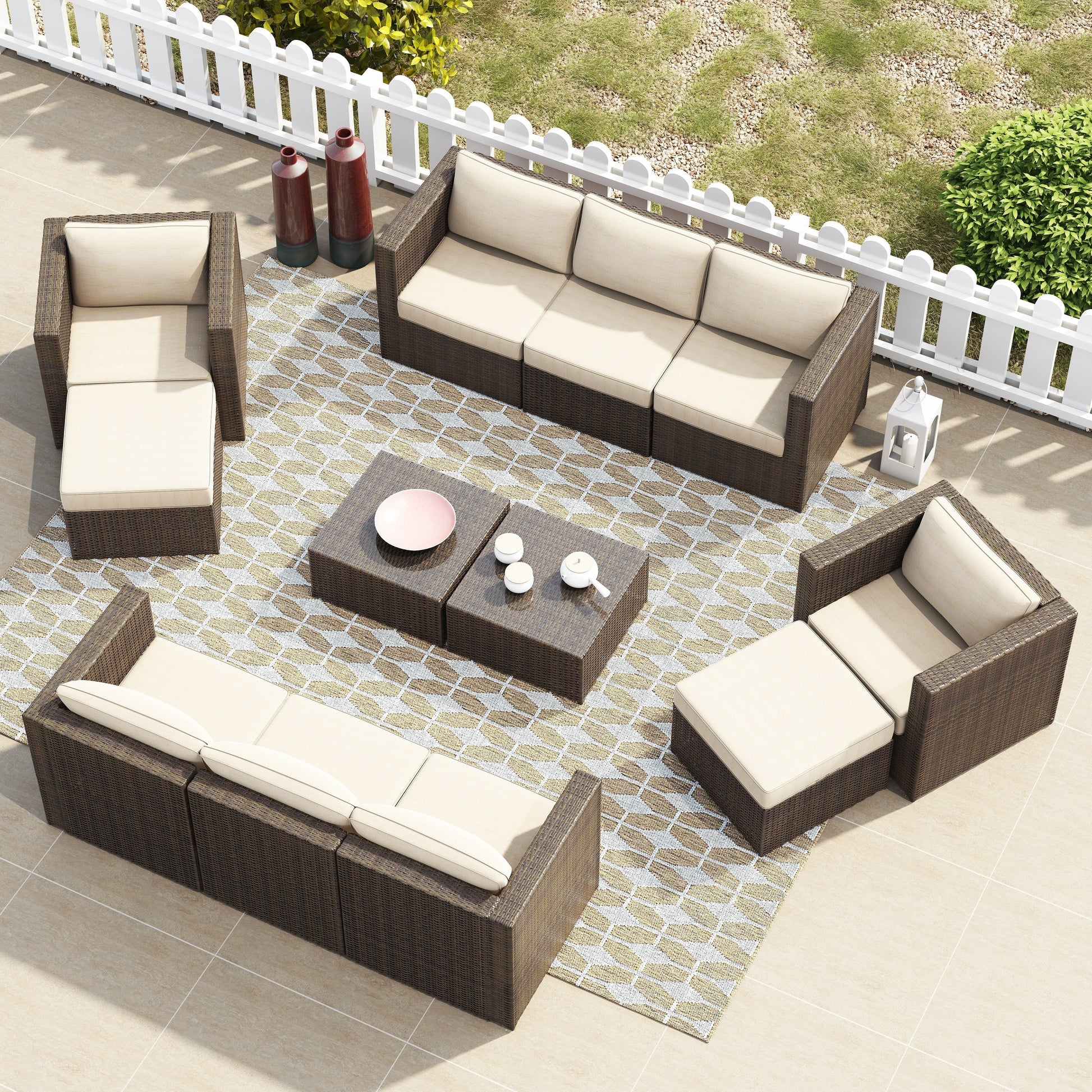 Corvus Trey 12-piece Brown Wicker Patio Furniture Sectional Conversation Set