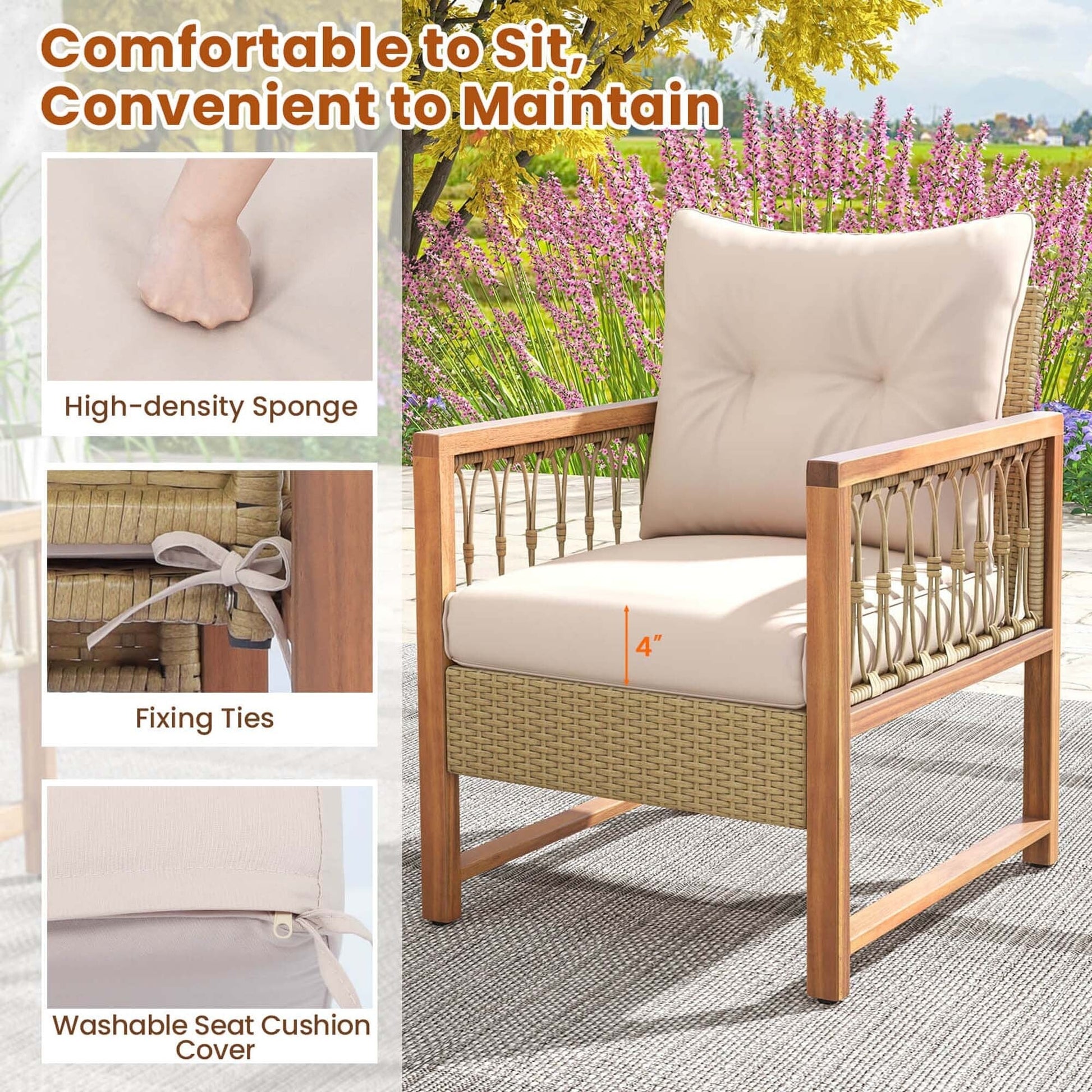 Material: PE Rattan, Acacia Wood, Polyester, Sponge
