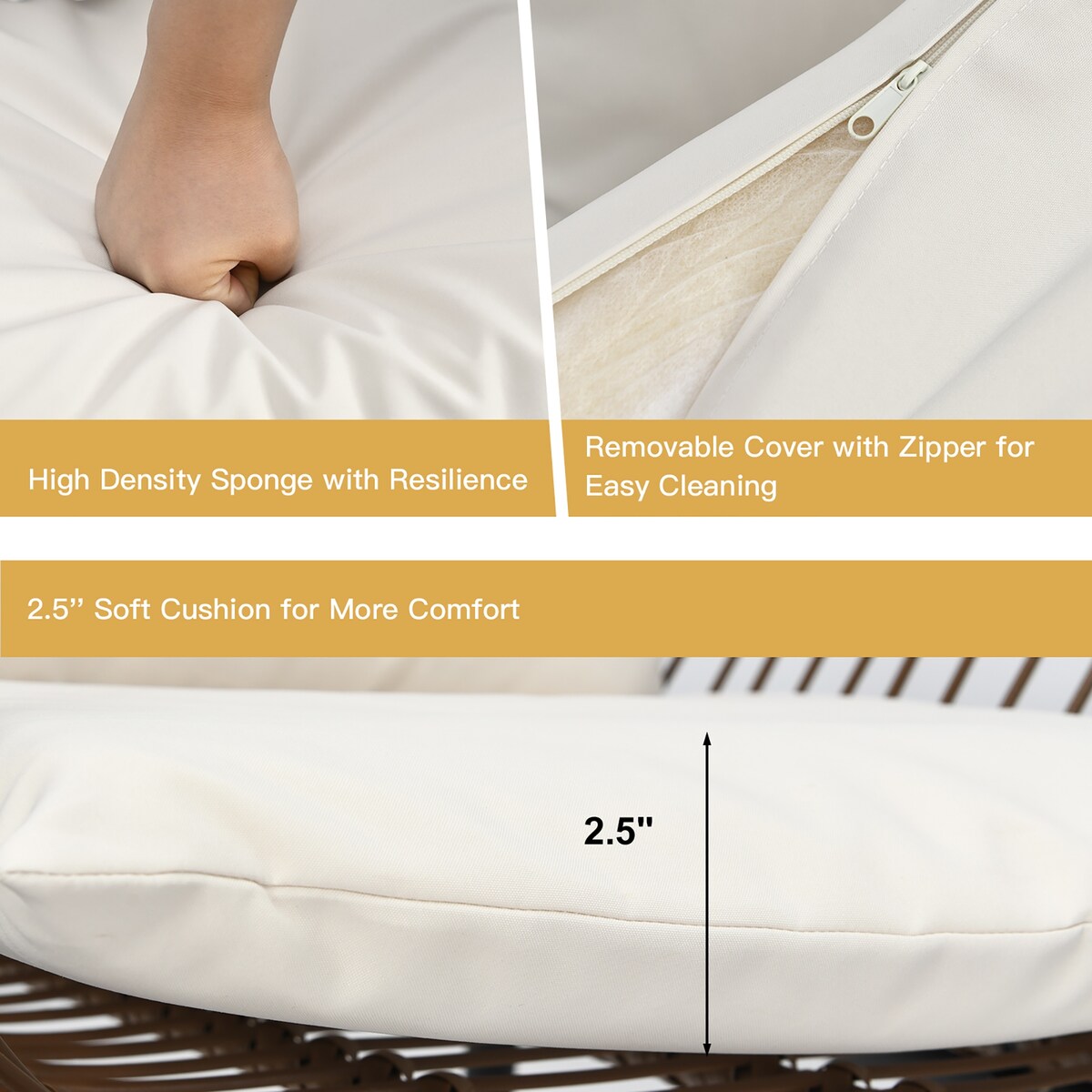 The premium PE rattan and sturdy powder-coated steel frame can stand the test of time, so that you can use it for years without worrying about fading or deformation. Besides, the soft cushions with breathable fabric can relieve fatigue instantly. And the removable covers and tempered glass tabletop are easy to clean. The modern and stylish appearance makes this patio conversation set a perfect addition to your backyard, patio, balcony and so on.