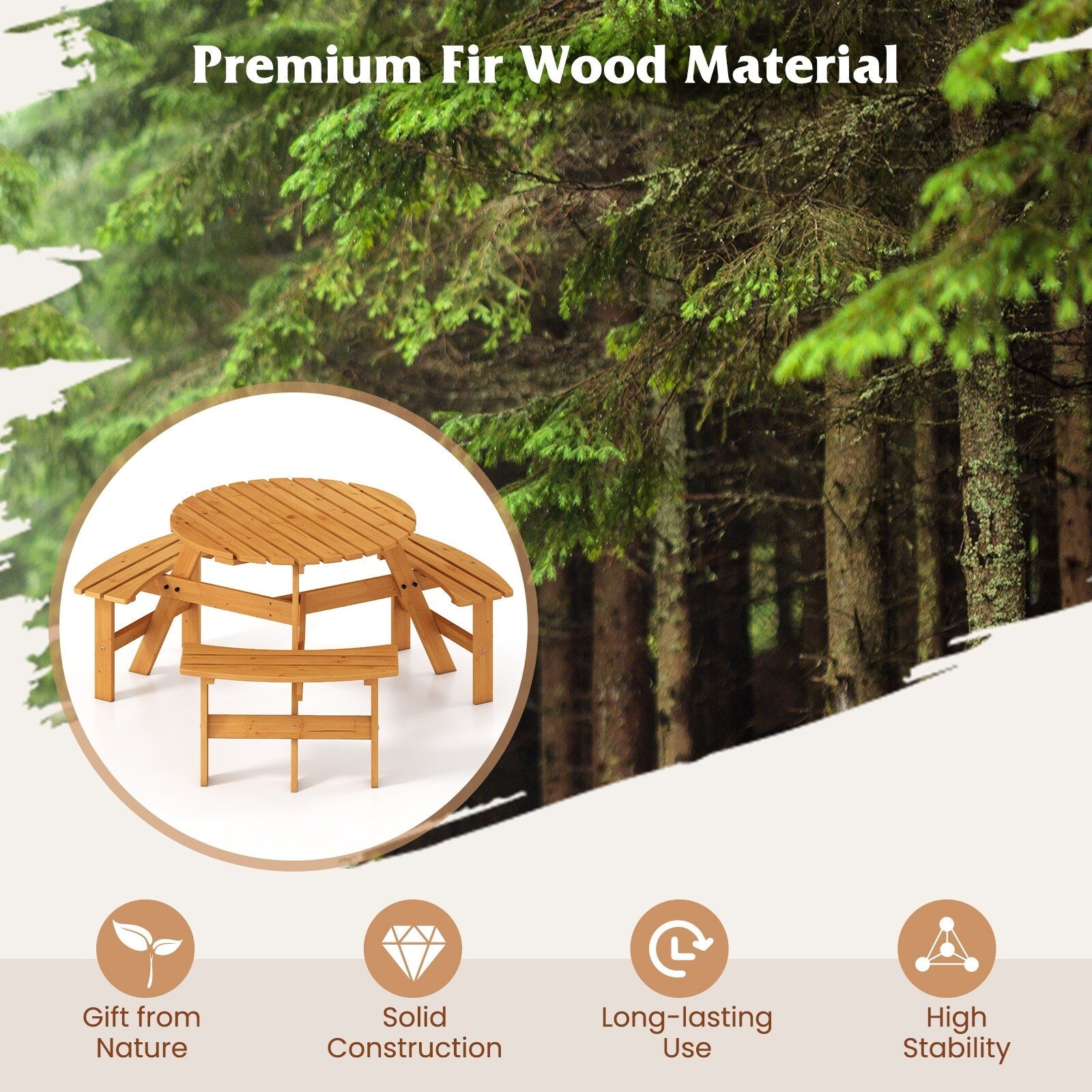 Costway 6-Person Round Picnic Table Set with 3 Built-in Benches 2 - See Details
