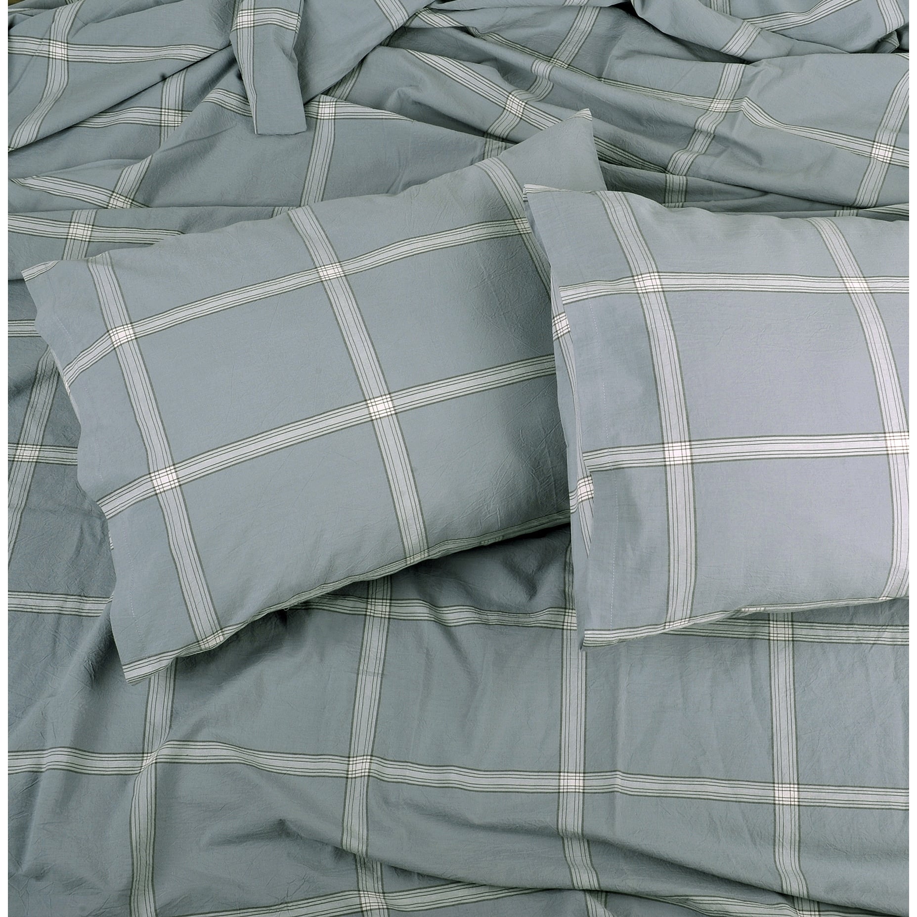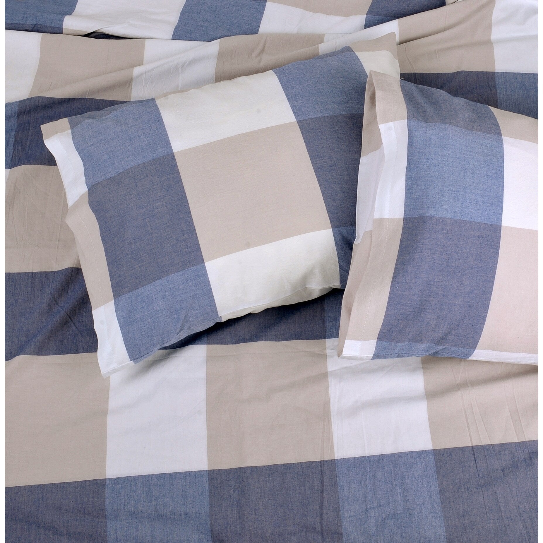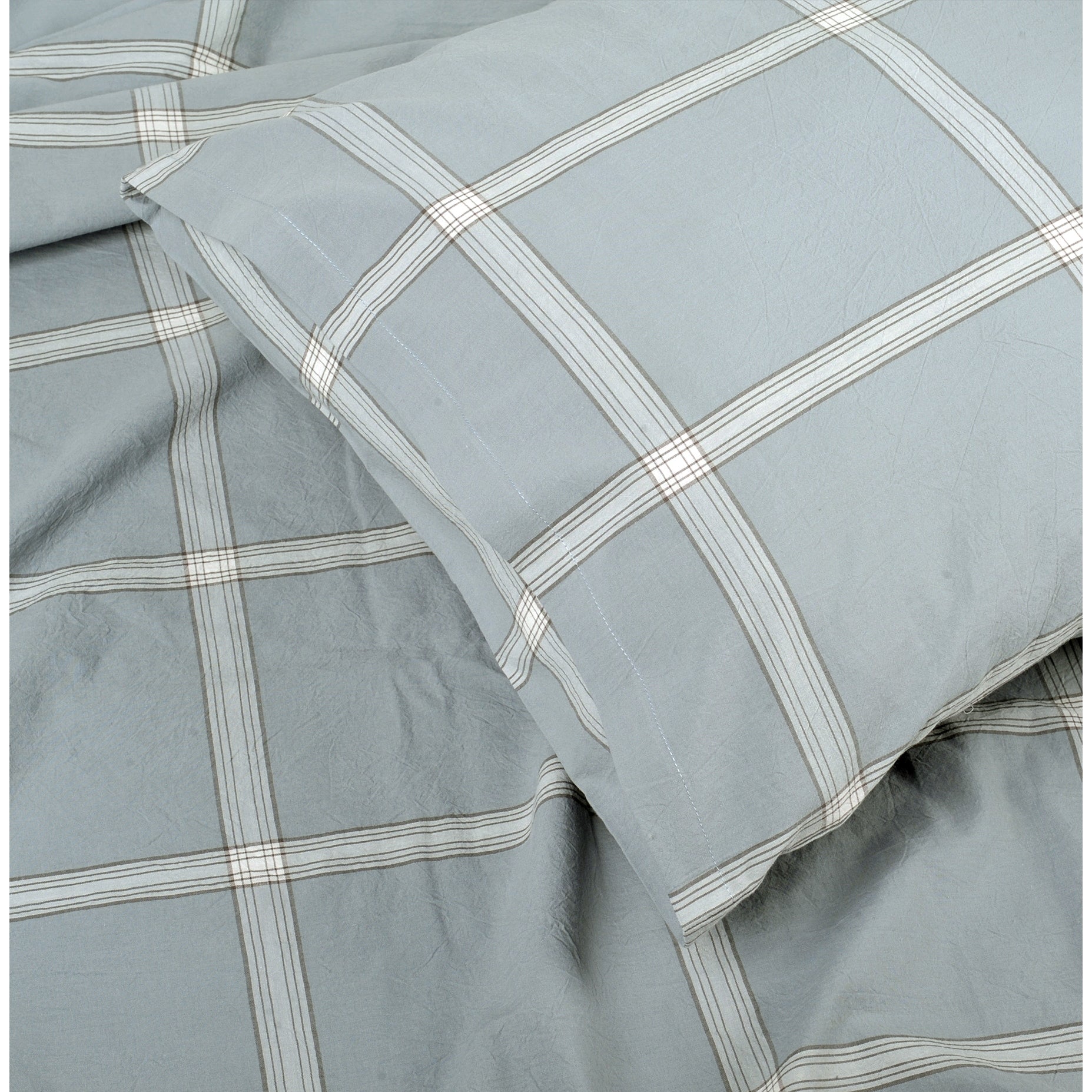 Cotton Plaid Windowpane Check 3-piece Duvet Cover Set