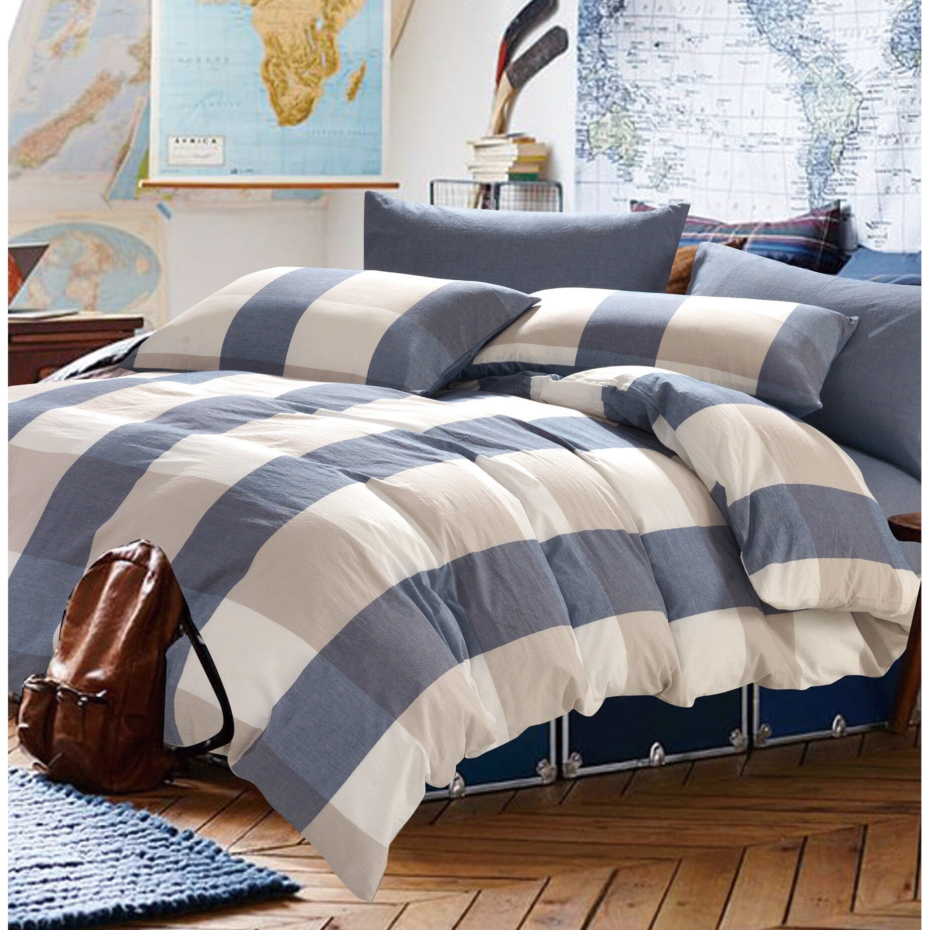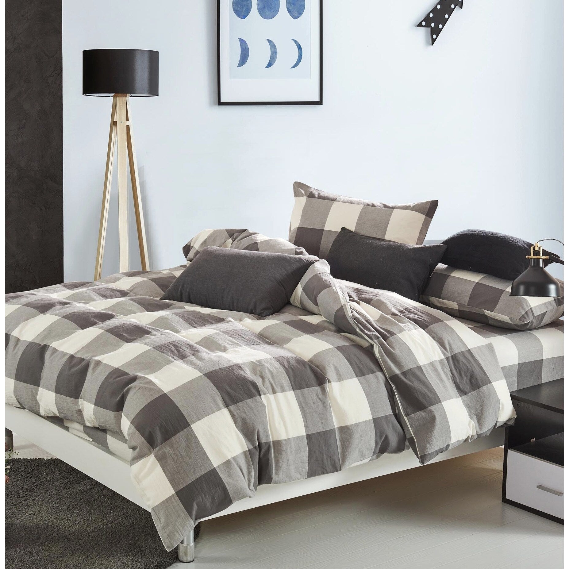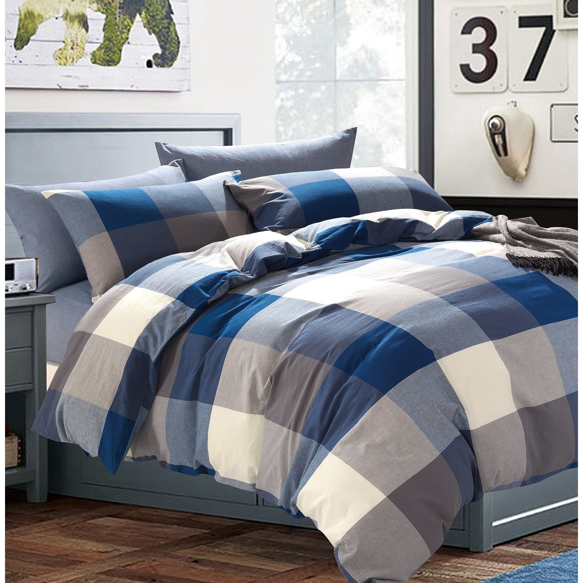 Cotton Plaid Windowpane Check 3-piece Duvet Cover Set