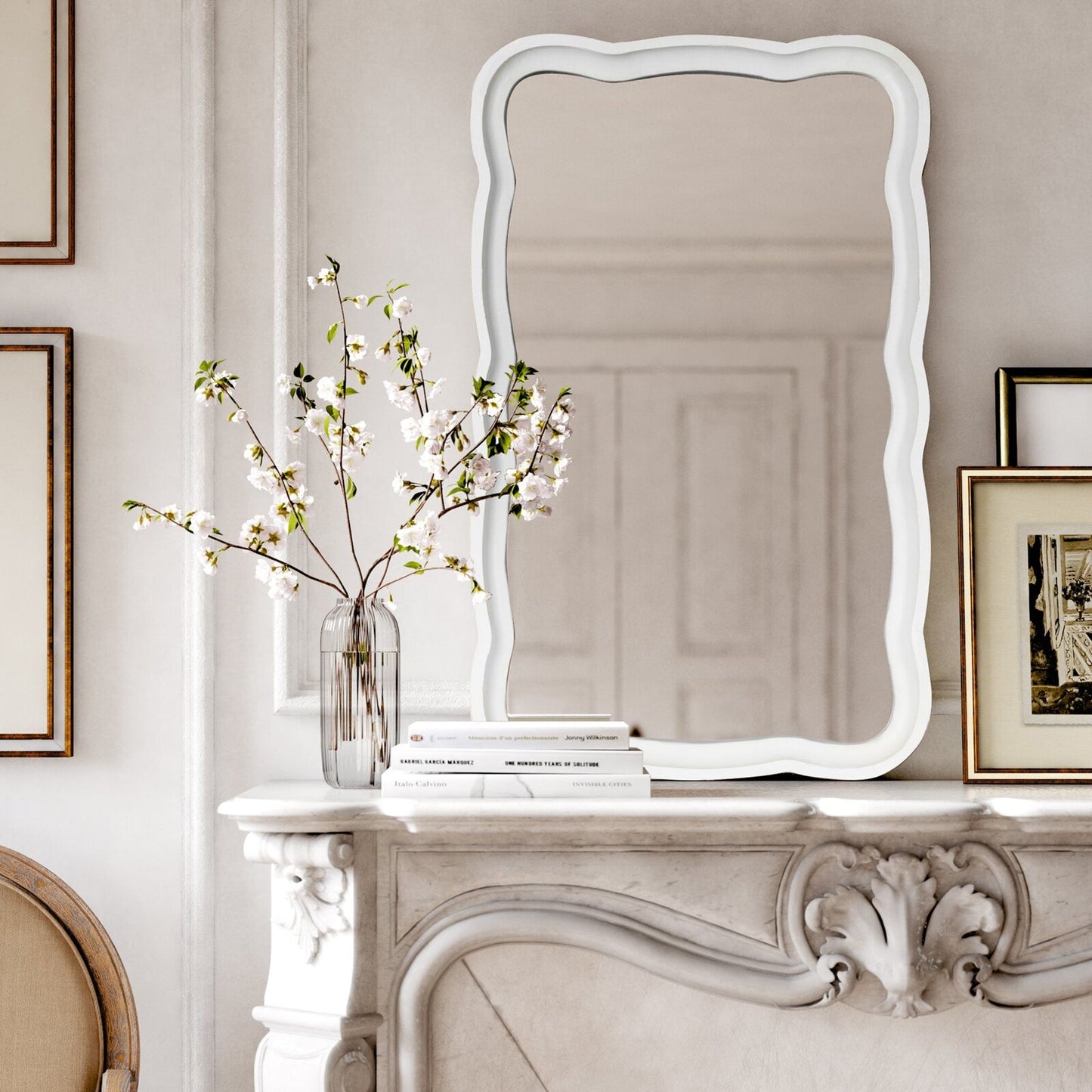 COZAYH Curved Scallop Wood Frame Accent Mirror