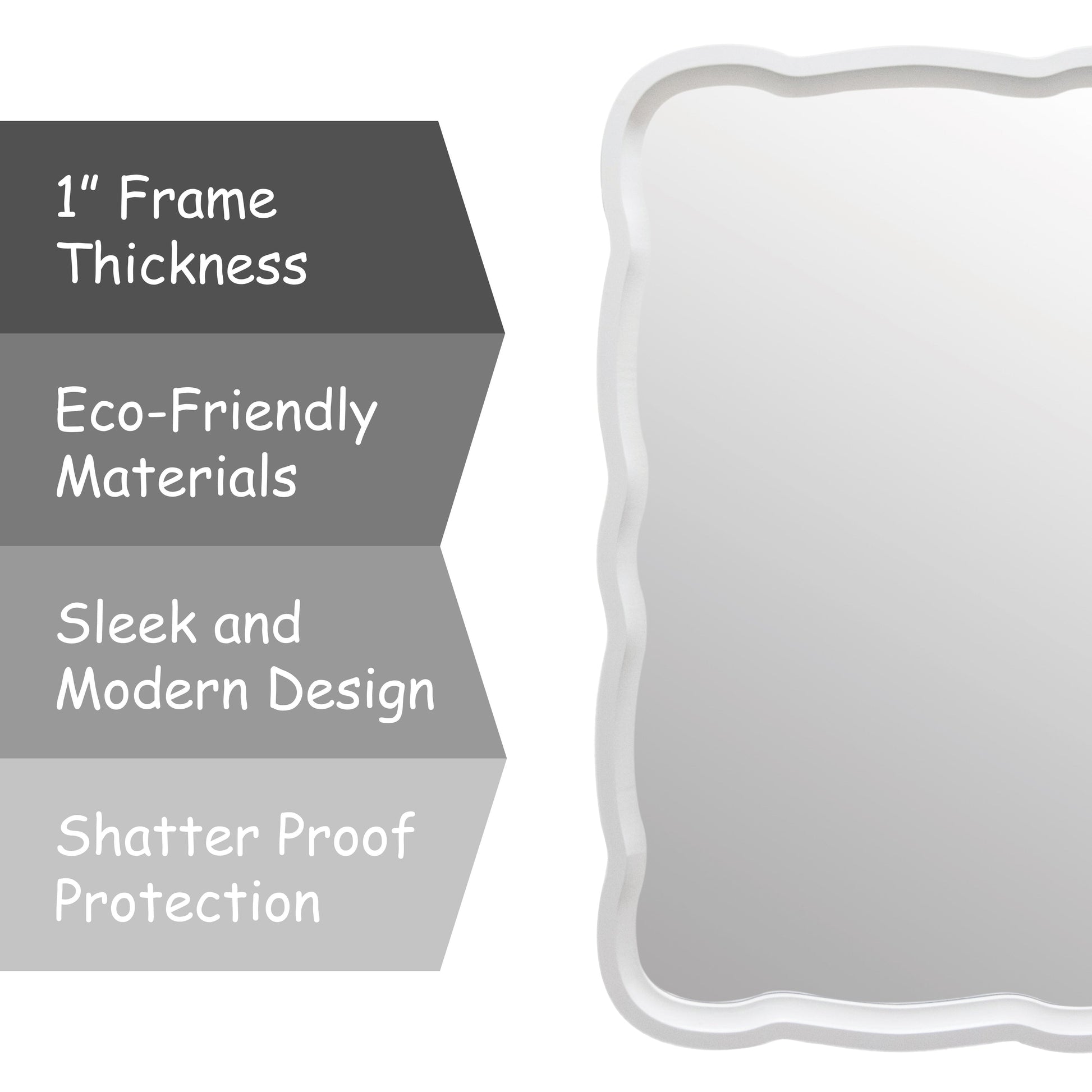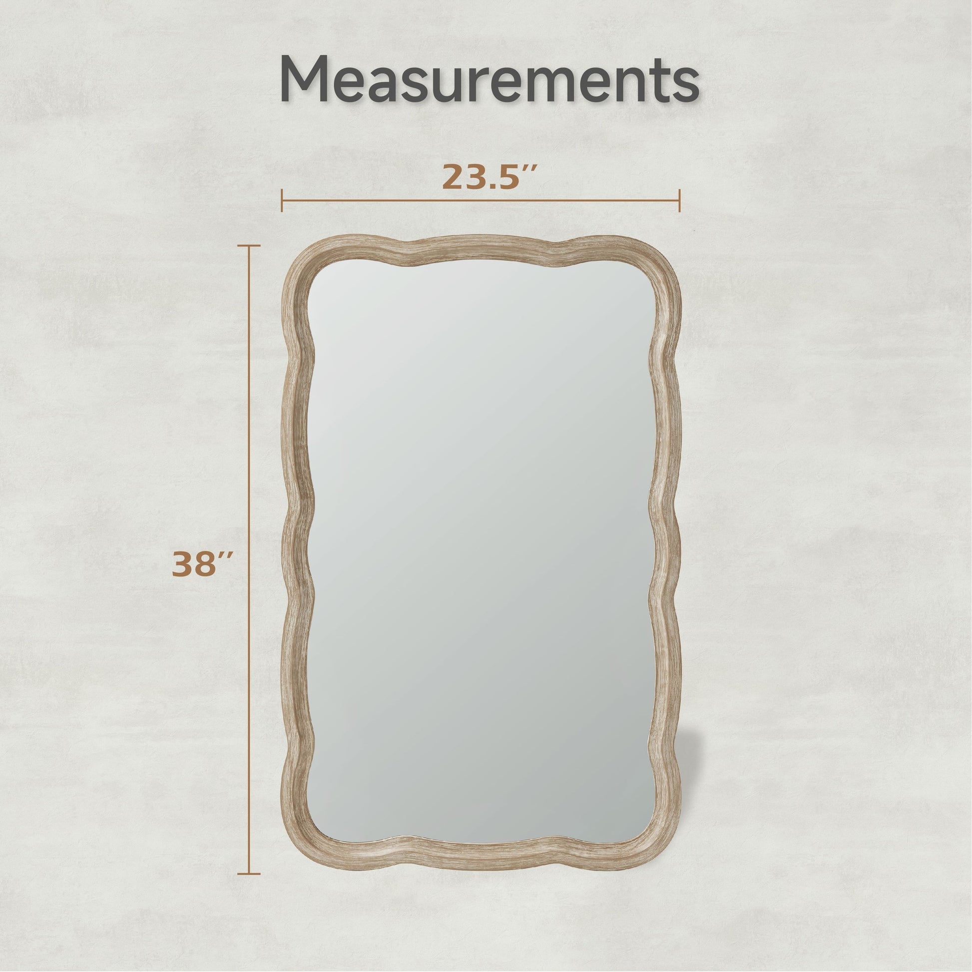 Bring a touch of natural beauty to your living space with this COZAYH Curved Scallop Wood Frame Accent Mirror. The textured, rectangular mirror is framed by a beautifully curved wooden frame with a distressed finish that is perfect for rustic or boho decor. The attention to detail on the frame adds character to this mirror, making it perfect for any room in your home. Its generous size is perfect for opening up your space and creating a dimensional, open concept.