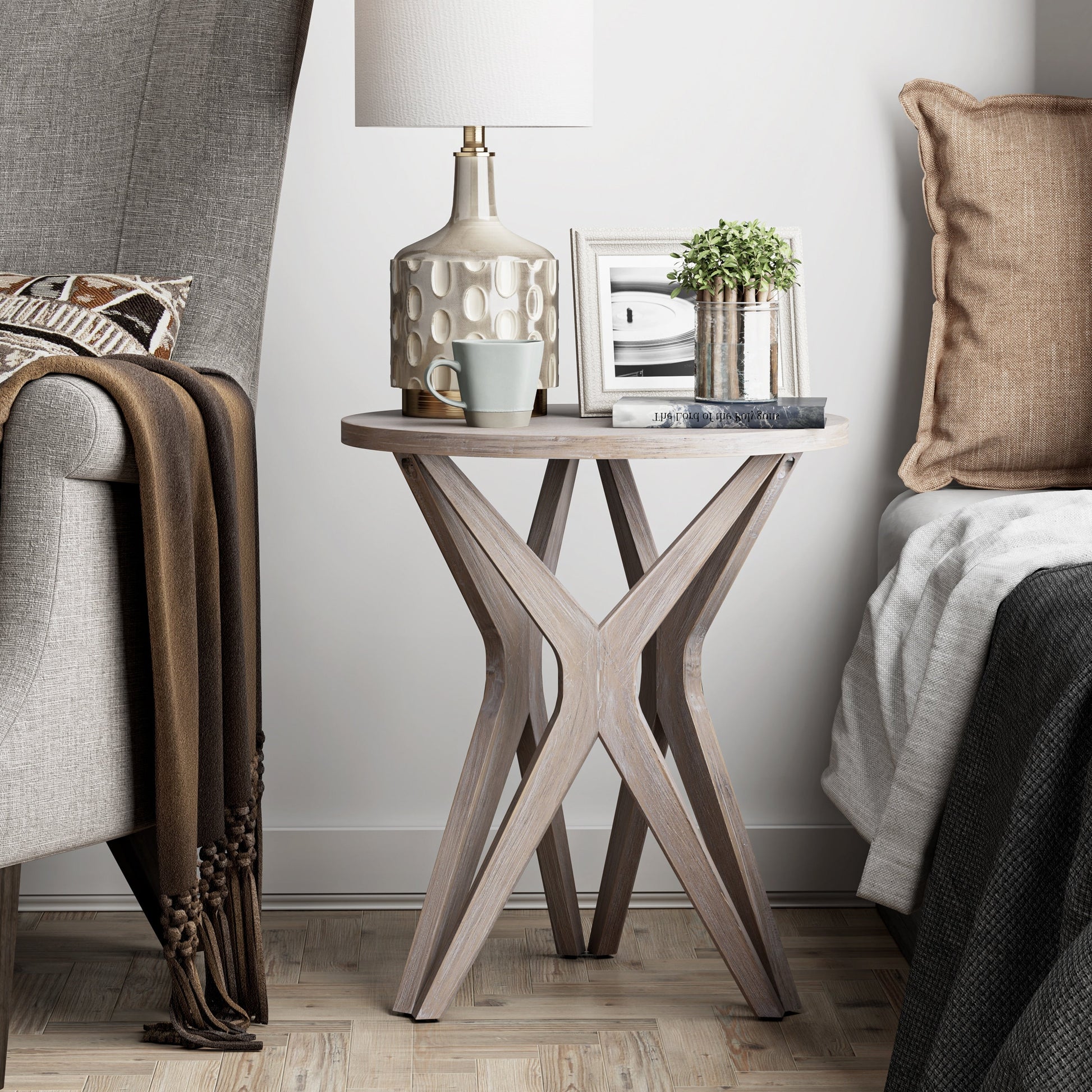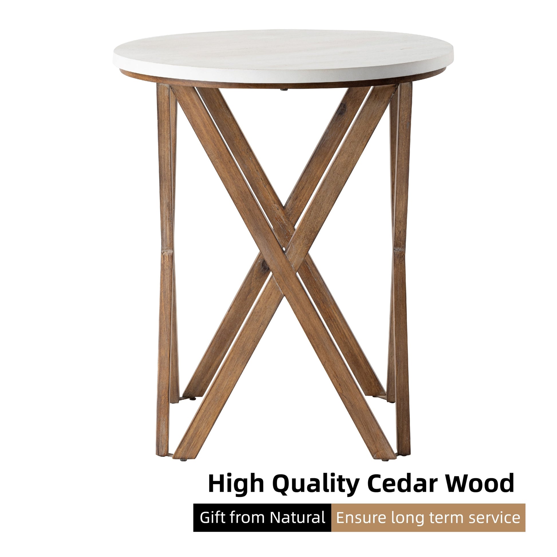 Add a touch of elegance and sophistication to your home with the COZAYH Pedestal Farmhouse End Table. The distressed white top gracefully blends with natural wood grains and aging for a charming farmhouse look. Whether you prefer coastal or boho style, this versatile accent table is perfect for any room in your home. Made with a durable MDF wood top and solid fir wood legs, this compact and sturdy table is perfect for displaying decorative items or holding a stack of books.