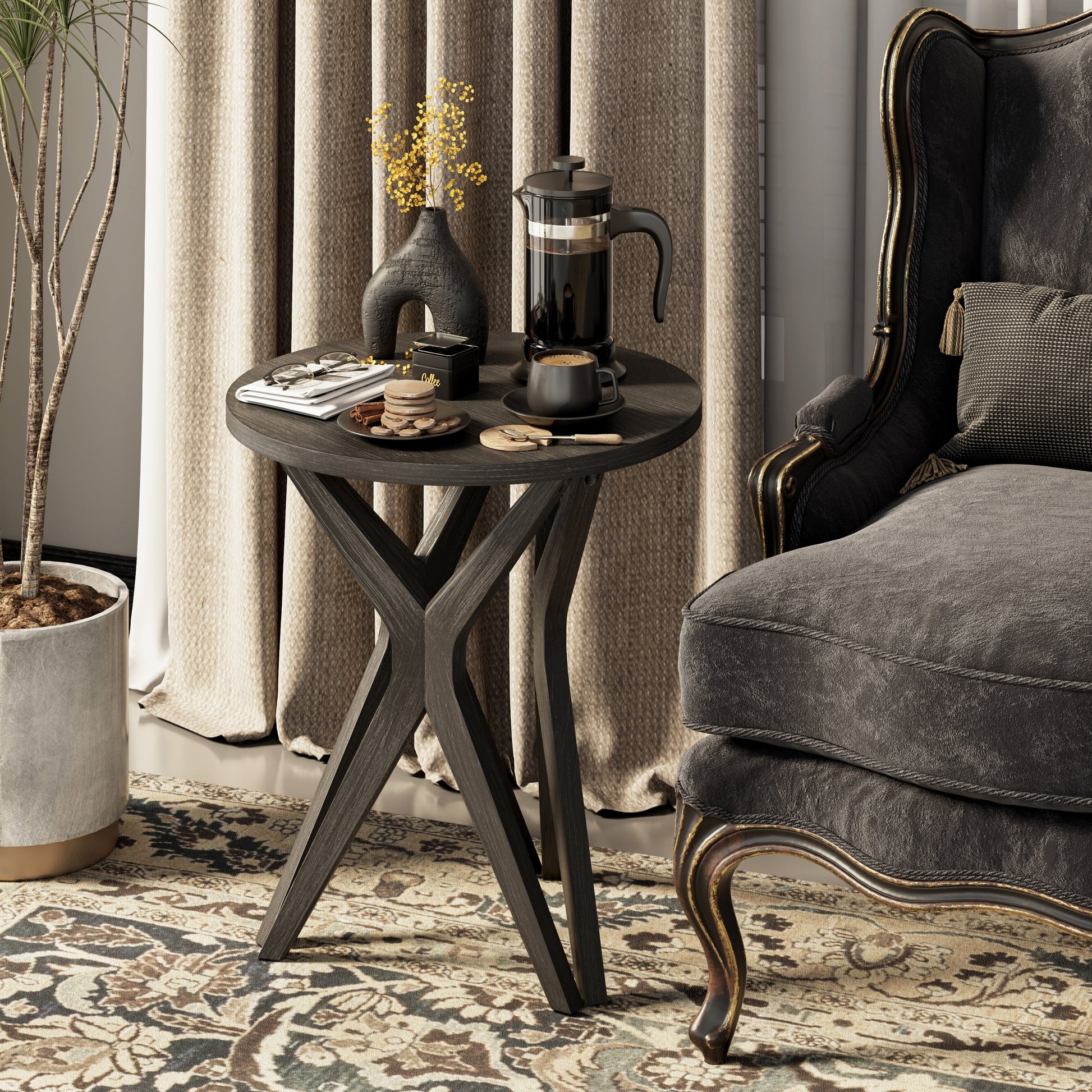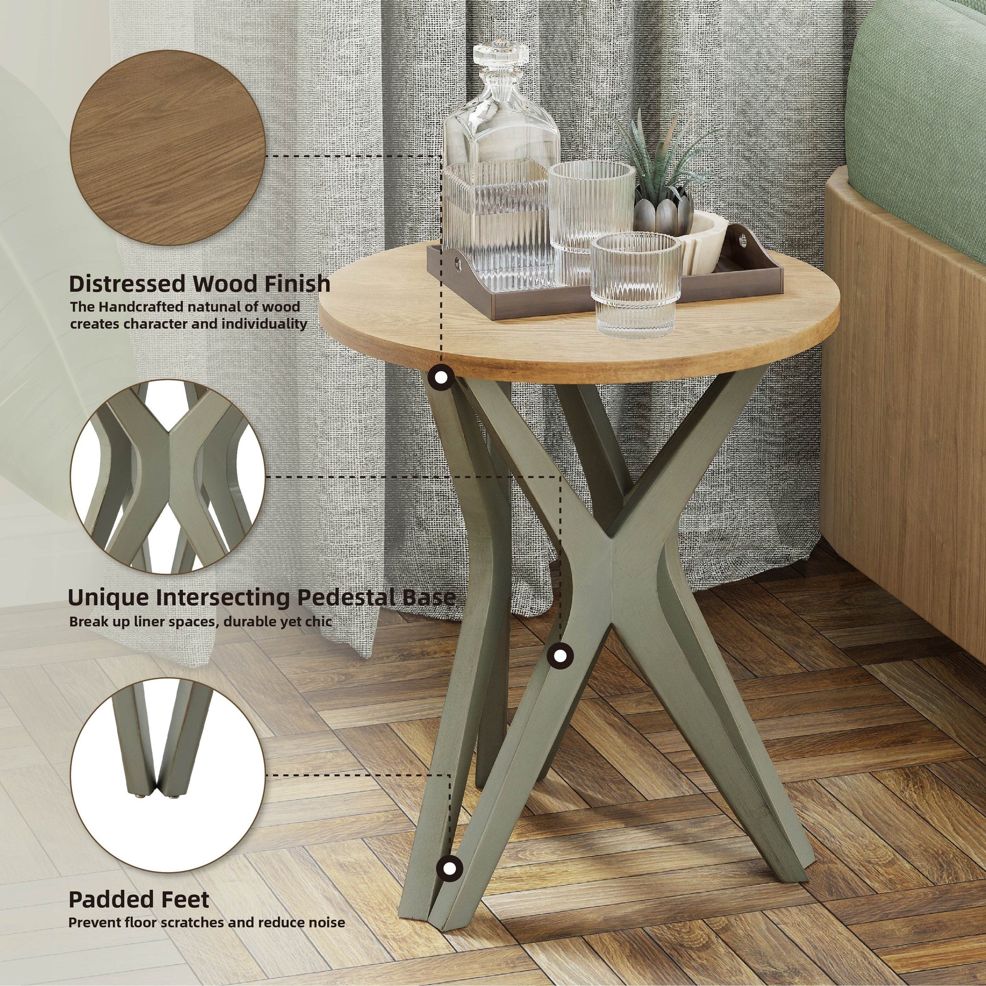 COZAYH Pedestal Farmhouse End Table, Distressed Top with Base for Modern Farmhouse, Boho Decor, Round