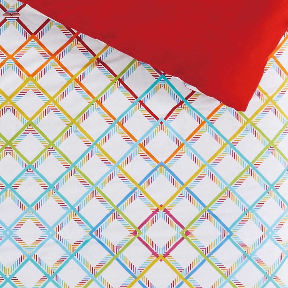 Dress up your kid’s room with this Happy Plaid Comforter Set by Crayola. The plaid pattern is accented by bright, vibrant colors that encourage self-expression and creativity. This comforter reverses to a vibrant red that contrasts the bold face pattern. This soft cotton material is durable and the luxurious polyester fill is the perfect fill weight for all seasons. Add to your colorful bedding ensemble with sheet and quilt sets by Crayola.