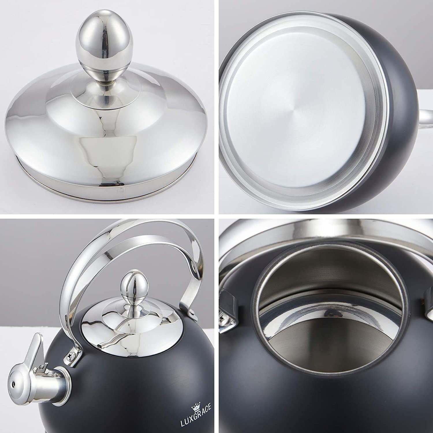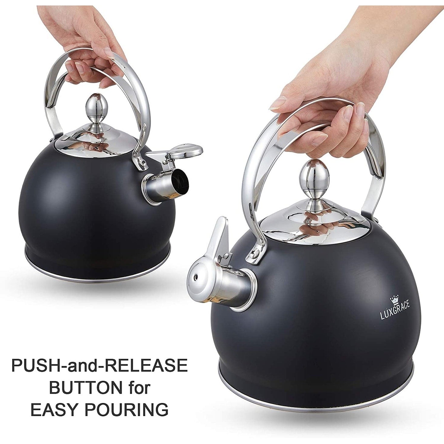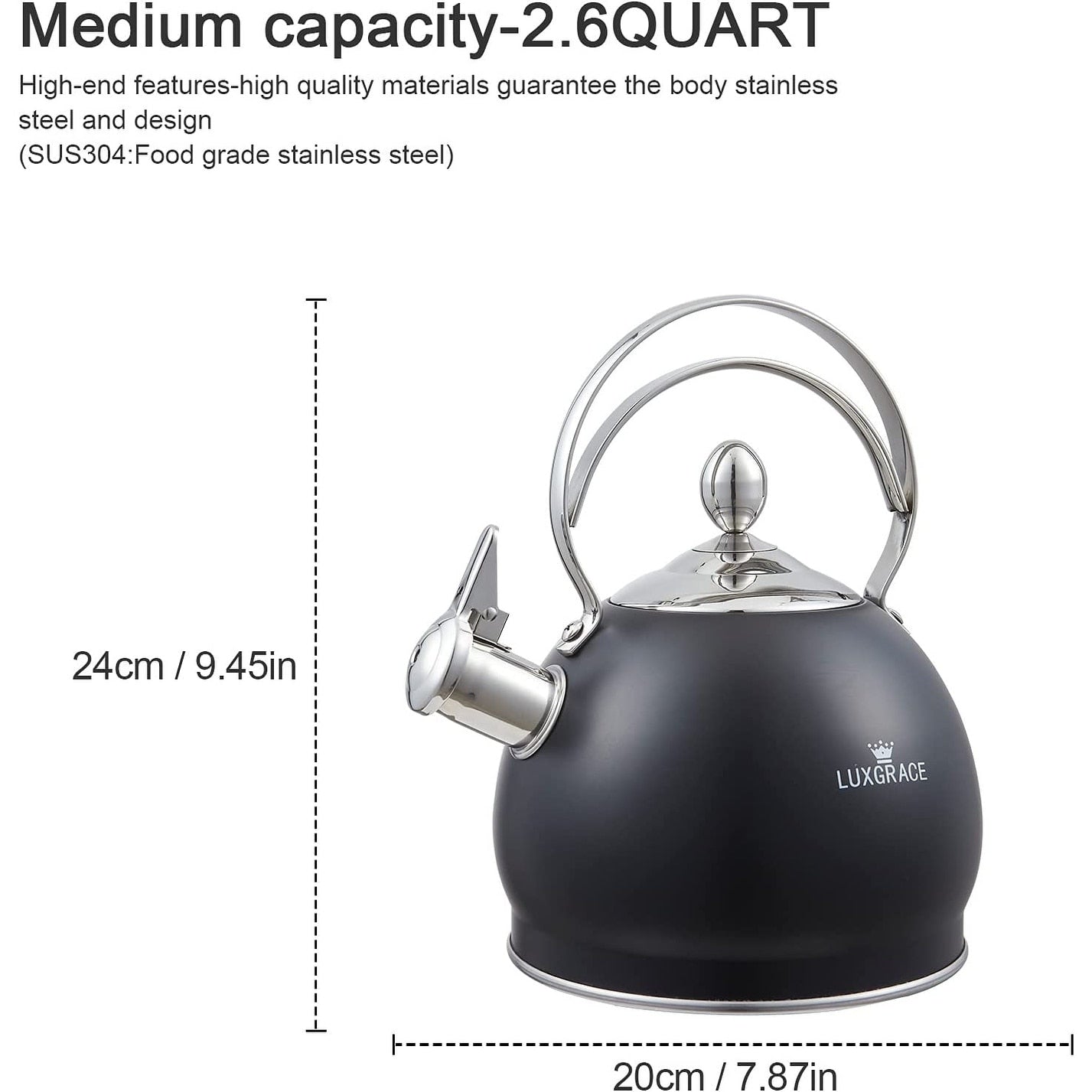 Creative Home 2.5 Qt. Stainless Steel Whistling Tea Kettle, Opaque Black - 2.5 Quarts