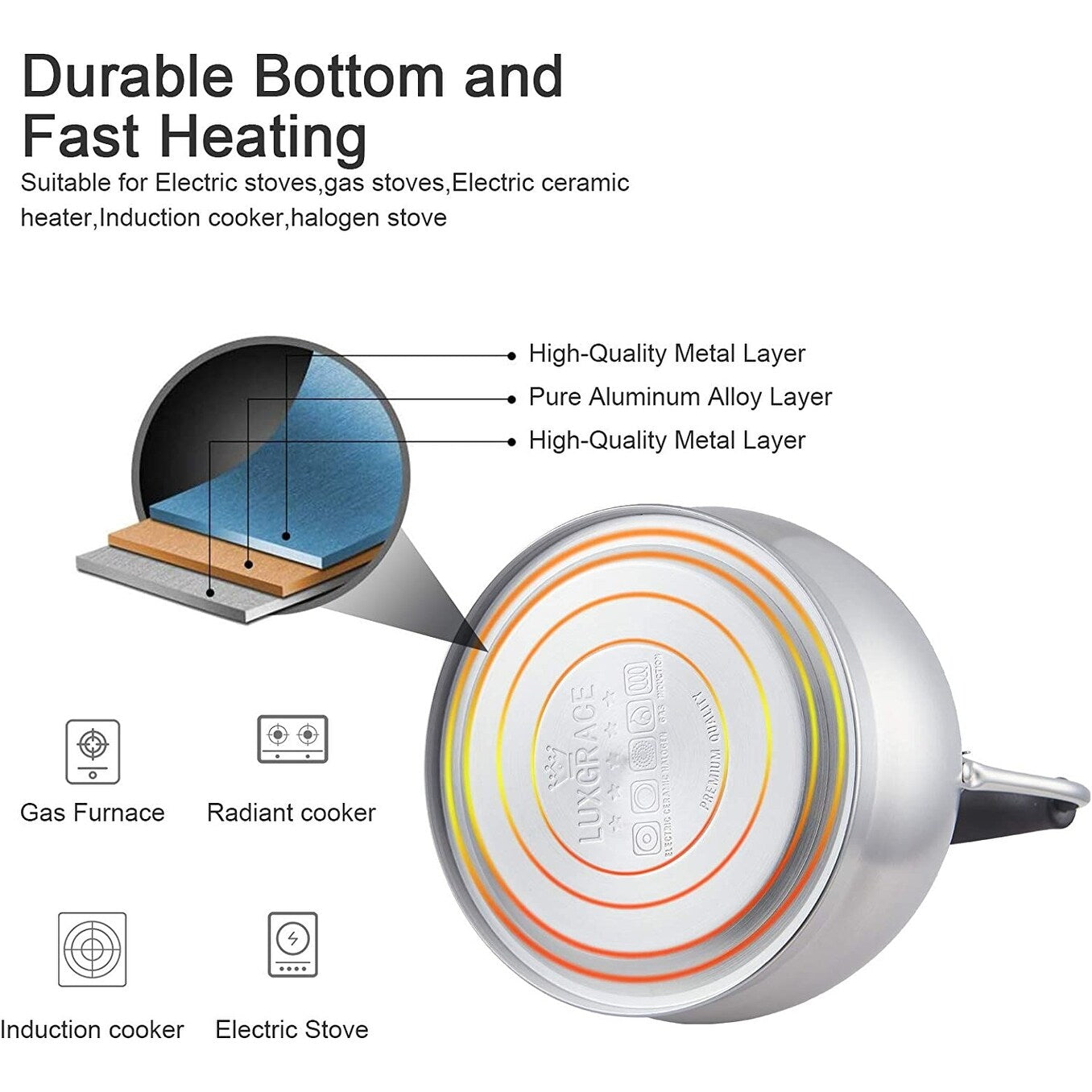 Stove Type Compatibility: Gas; Electric; Induction; Halogen, and Radiant Stovetops