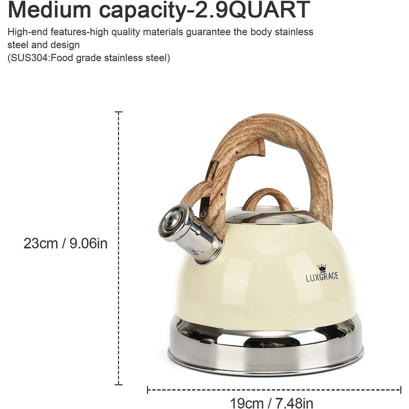 Creative Home 3.0 Qt. Stainless Steel Whistling Tea Kettle with Ergonomic Handle for Fast Boiling Heat Water, Creamy White