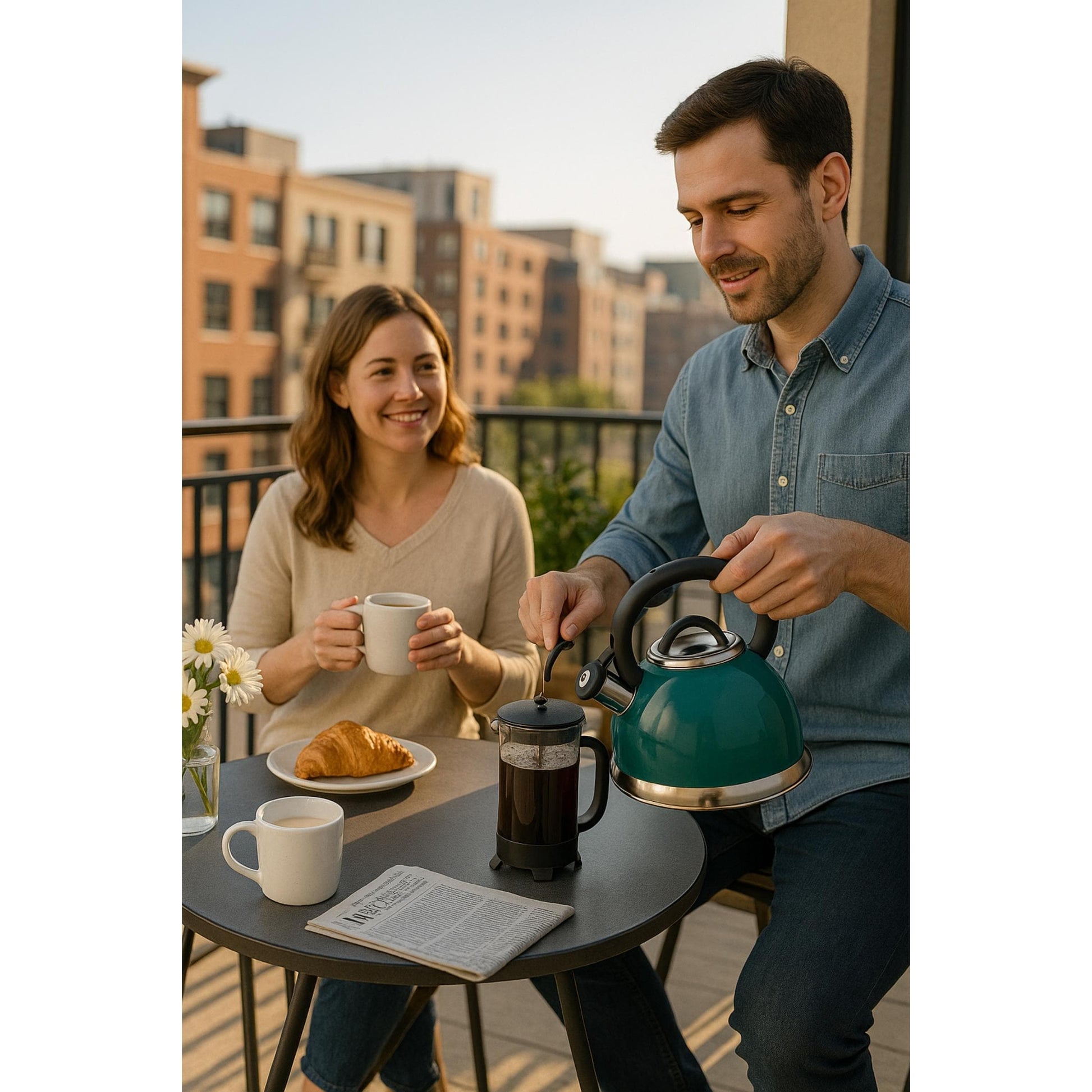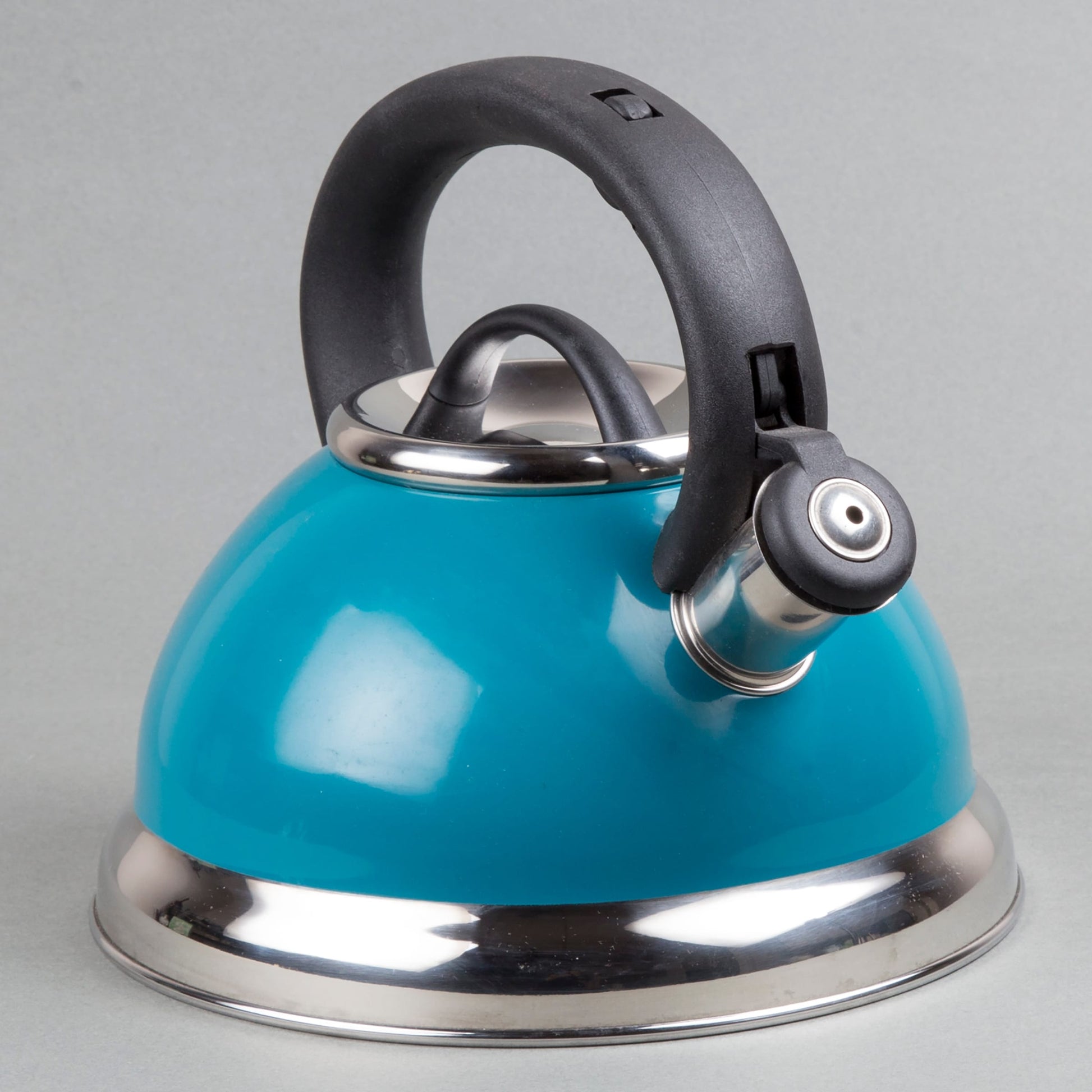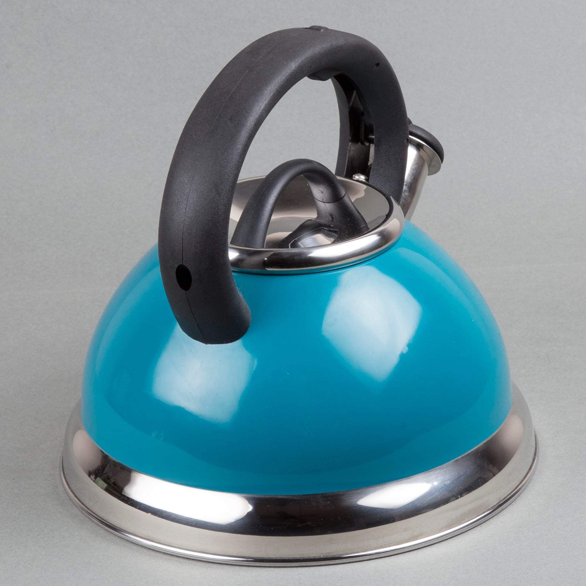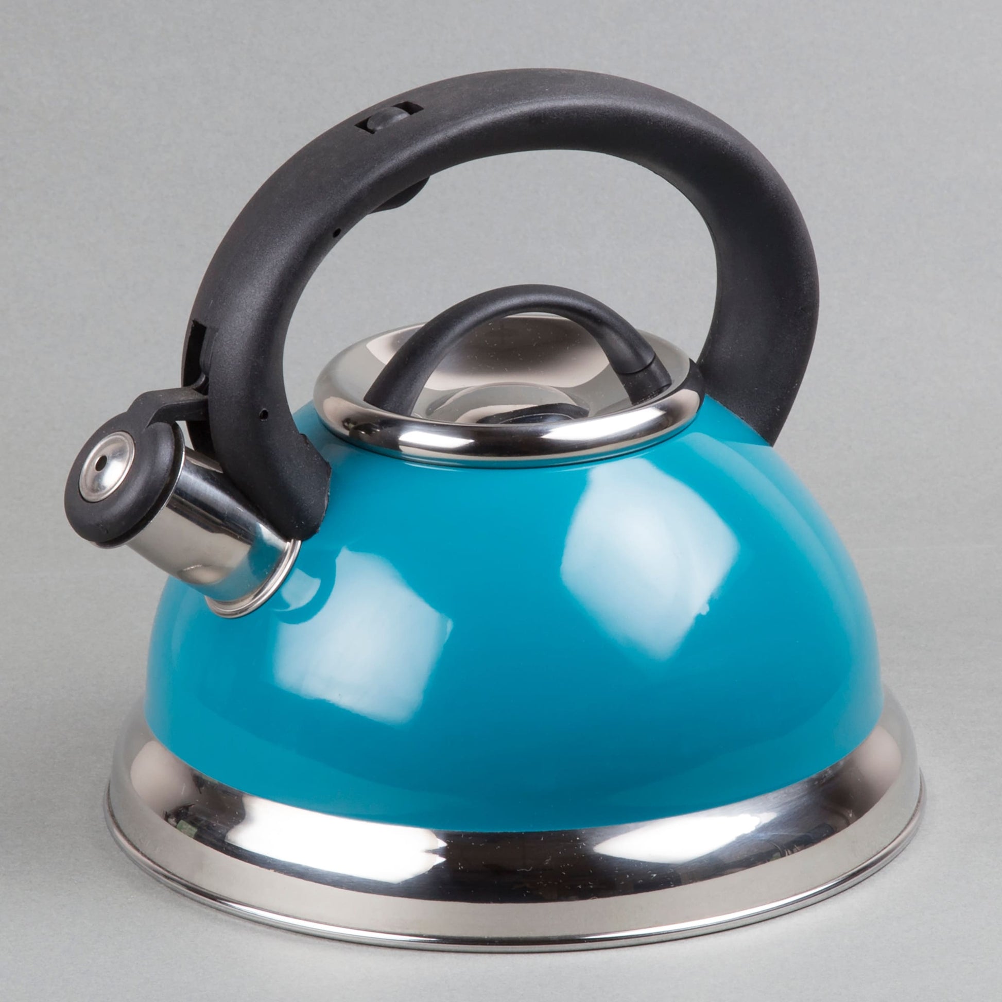 Creative Home Alexa 3.0 Quart Stainless Steel Whistling Tea Kettle with Aluminum Capsulated Bottom, Aqua Color