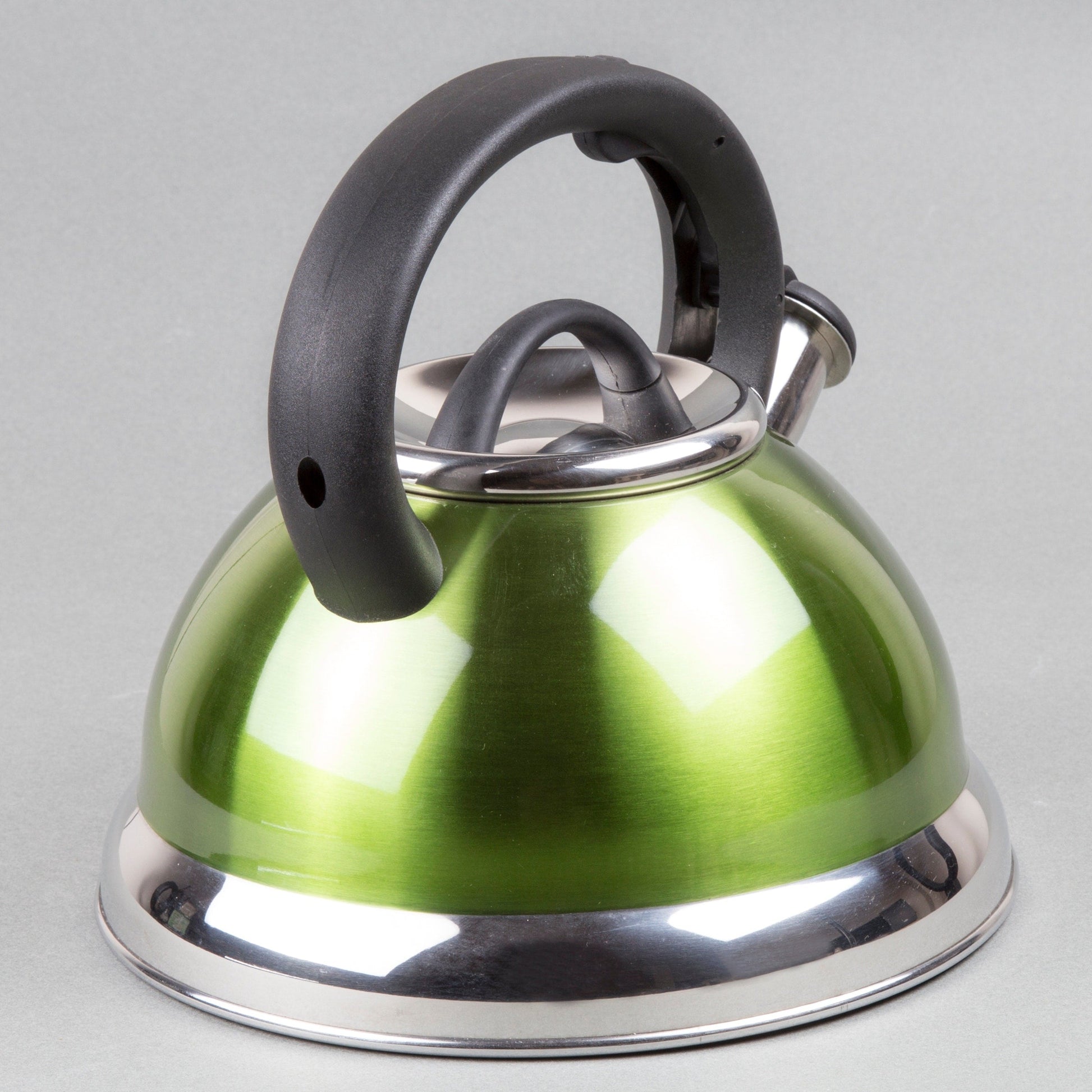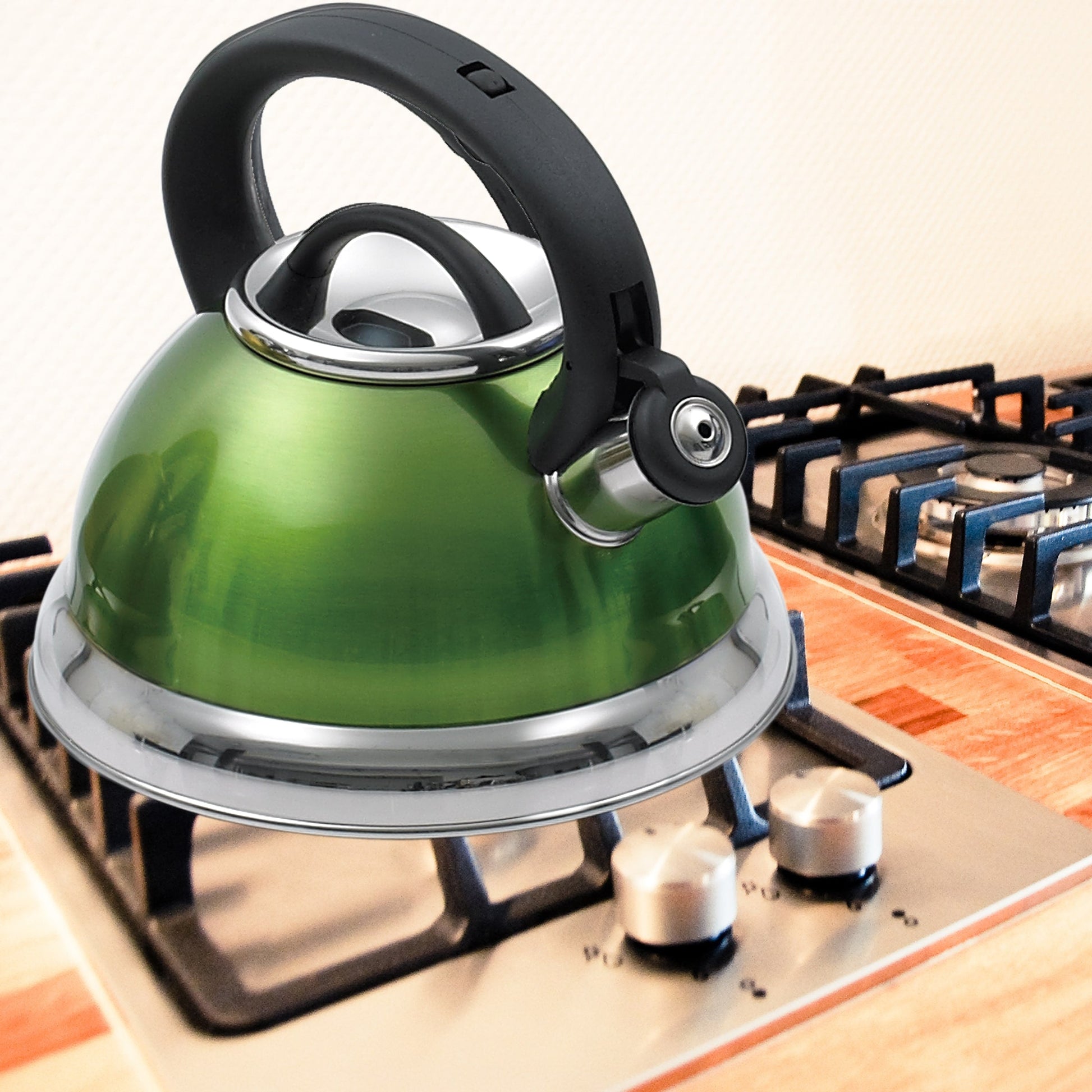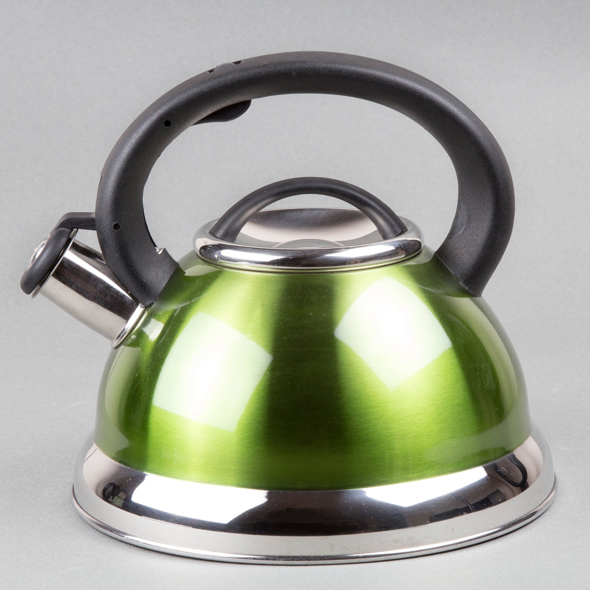 Creative Home Alexa 3.0 Quart Stainless Steel Whistling Tea Kettle with Aluminum Capsulated Bottom, Metallic Chartreuse Color