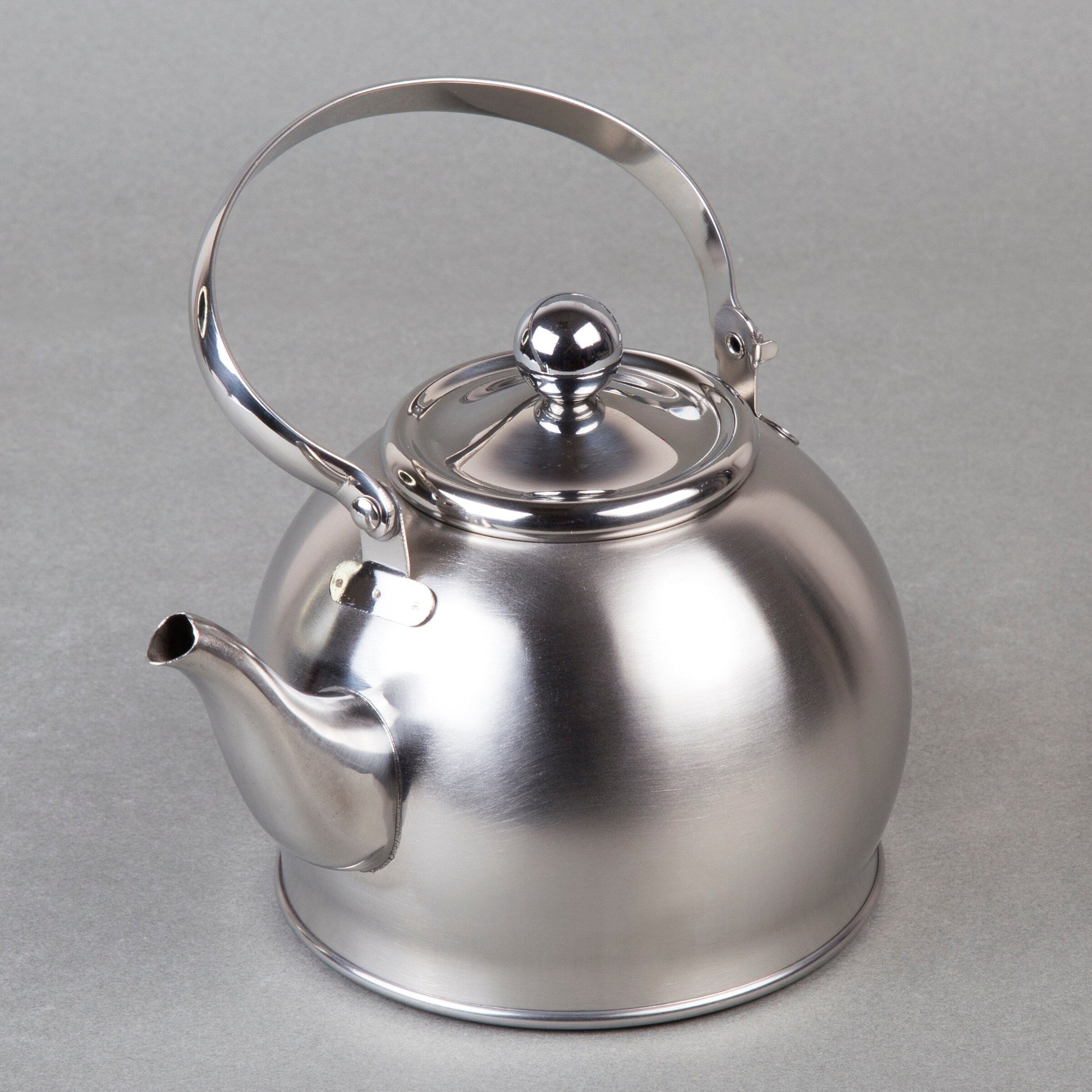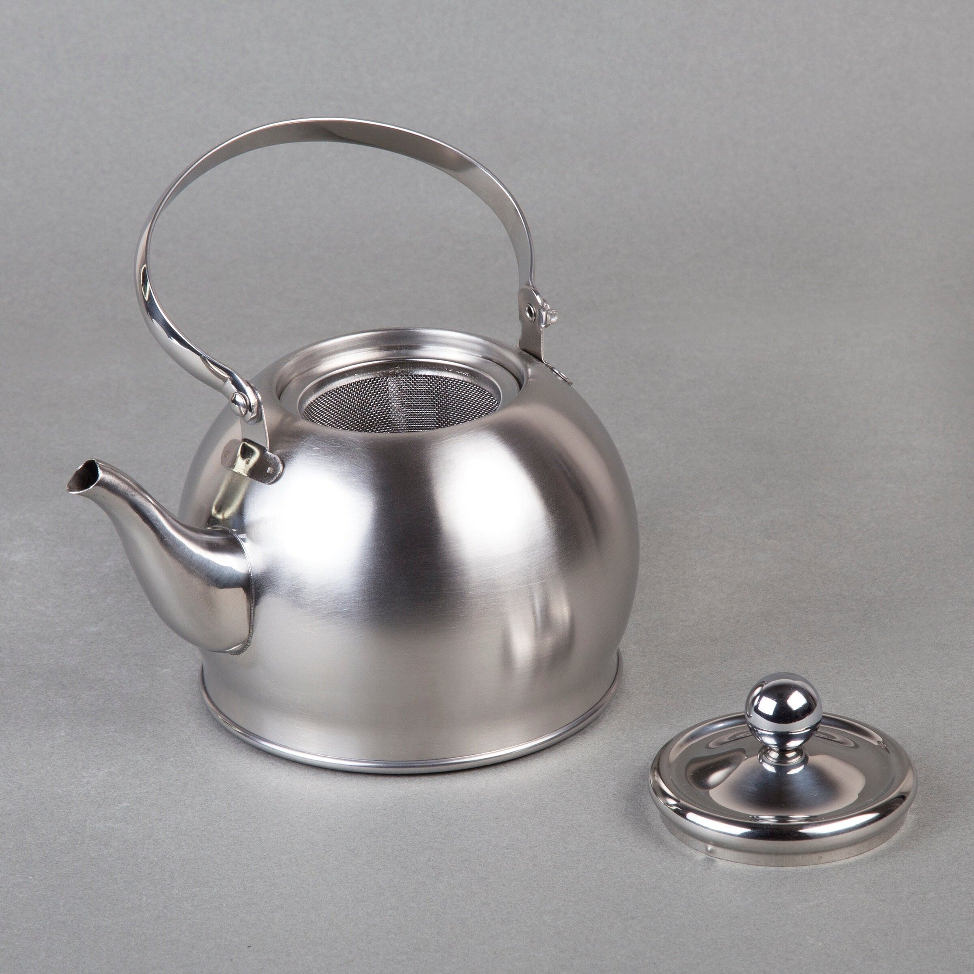 Creative Home Royal-Tea 1.0 Quart Stainless Steel Tea Kettle with with Removable Infuser Basket and Folding Handle