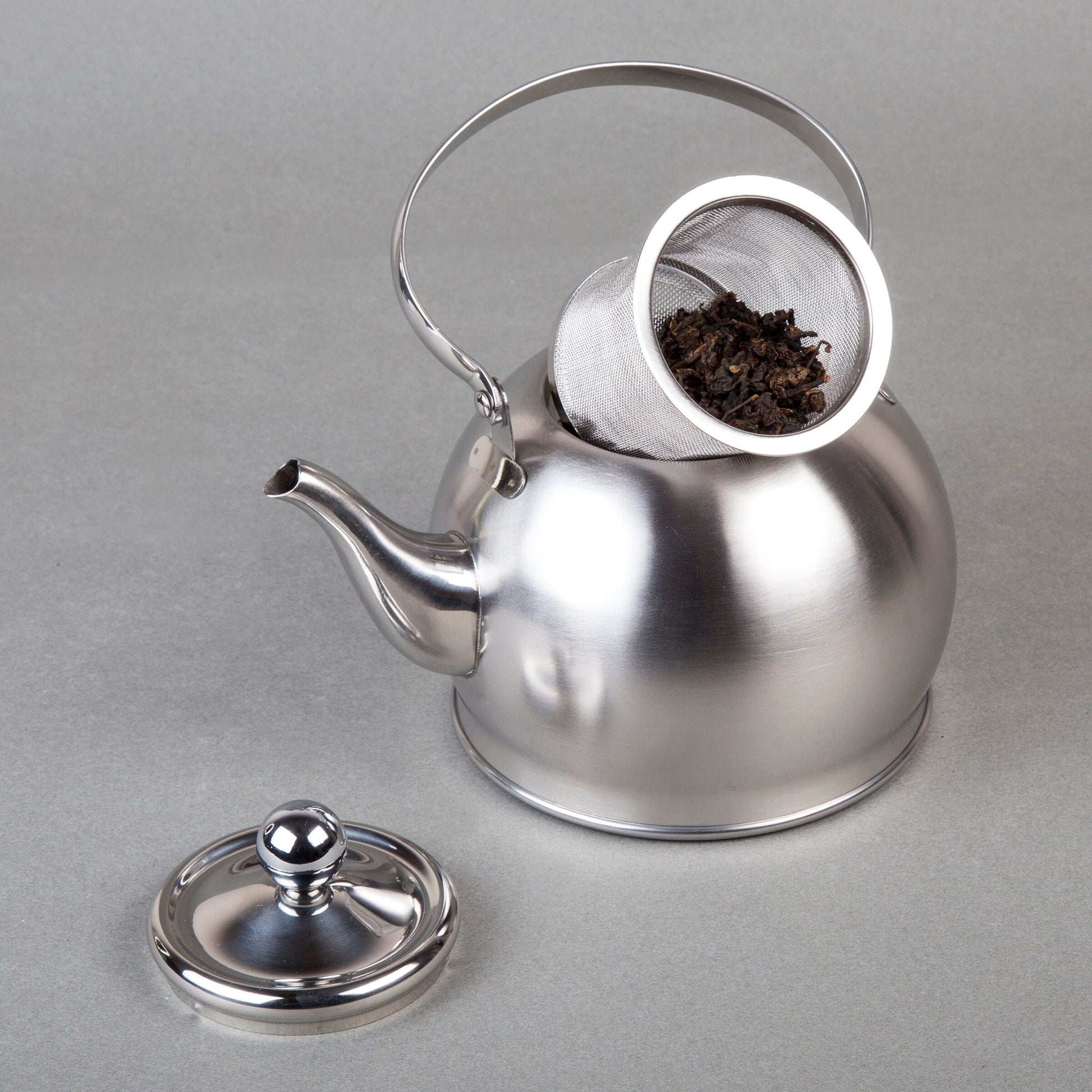 - TEA KETTLE WITH TEA INFUSER: Can be used directly on any stove top or just pour your boiling water through the stainless steel infuser basket.