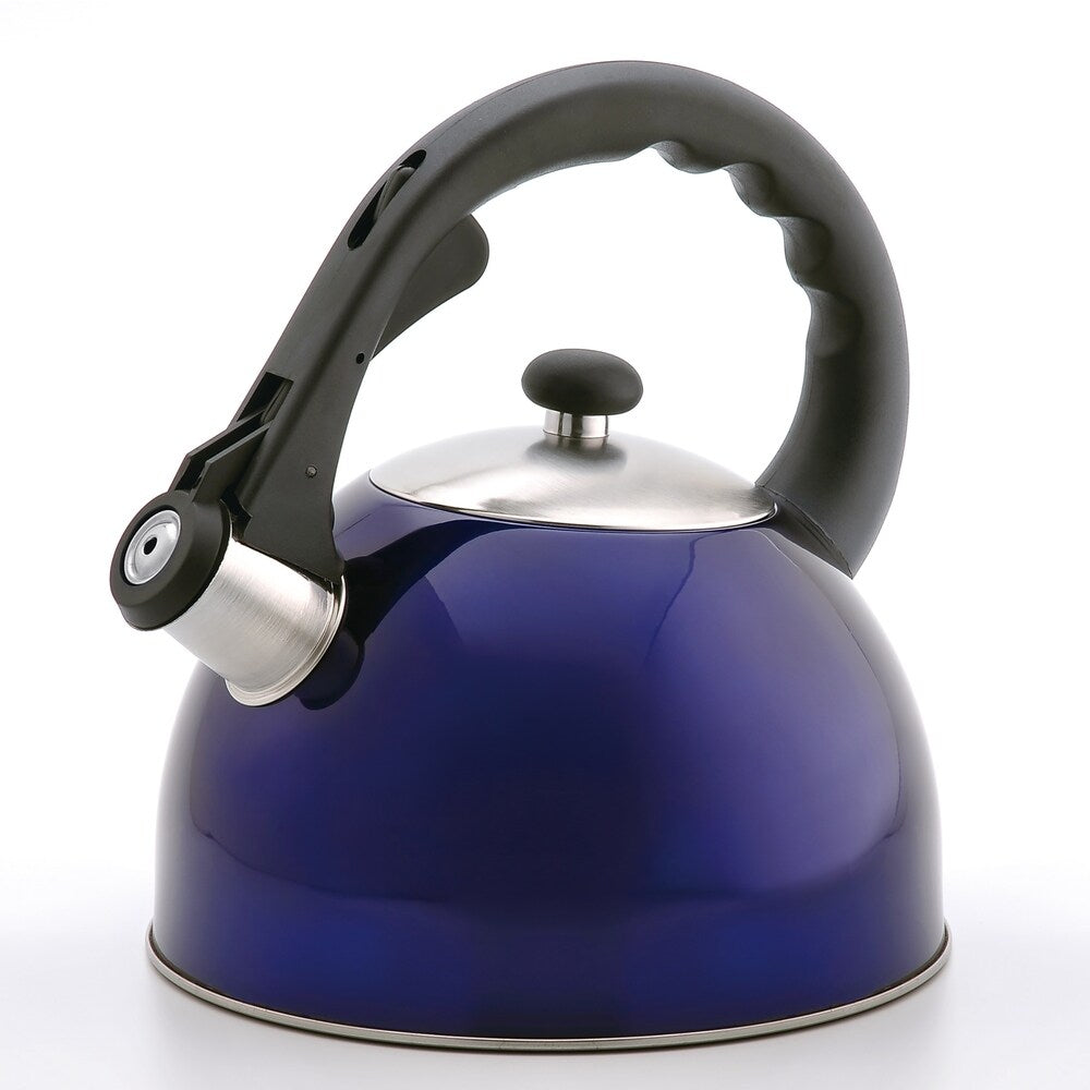Creative Home Satin Splendor 2.8 Quart Stainless Steel Whistling Tea Kettle with Aluminum Capsulated Bottom, Metallic Blue Color