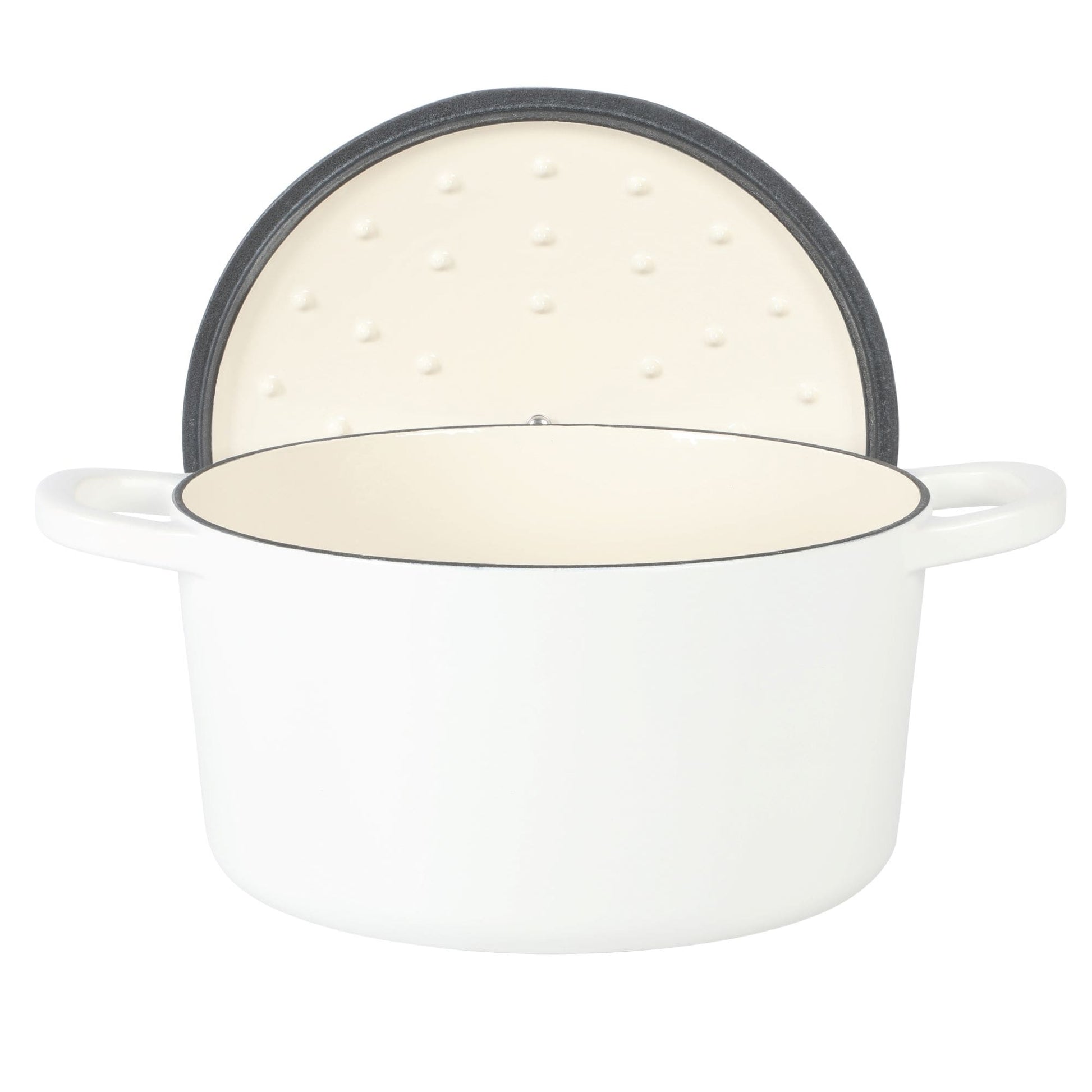 * SELF-BASTING LID: Raised nubs are intentionally crafted underneath the cast iron lid to create a rich, self-basting environment. As the lid allows heat to circulate and retain steam, the nubs collect the moisture during condensation, then redirects it back onto the food to cook low-and-slow recipes with fall-off-the-bone results.