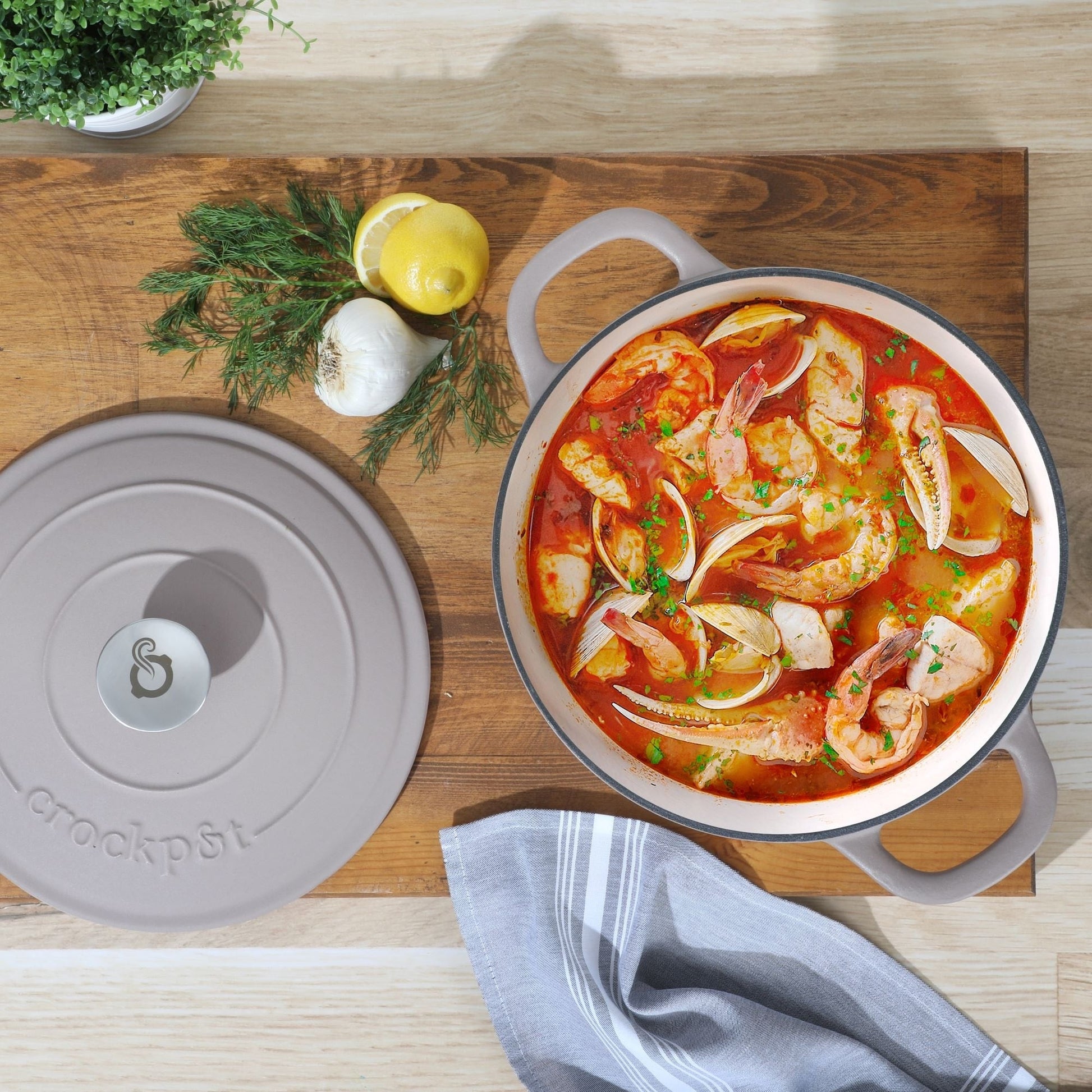 Cook and carry effortlessly from the stove to the oven to the table with the versatile Crock-Pot™ Artisan Matte Enameled Dutch Oven. Made from durable cast iron with an easy-to-clean and naturally nonstick interior, this American classic cookware is perfect for roasting, slow cooking, simmering, sautéing, baking and more. The matte exterior comes in a variety of muted colorways to match any kitchen decor or table spread when serving delicious meals all year round. Whether you're making everyday one-pot meals or special Sunday roasts, this kitchen essential serves up consistently flavorful results.