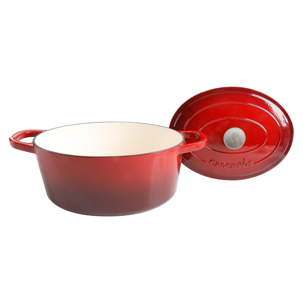 Create endless culinary possibilities with the Crock-Pot Artisan 7-Quart Enameled Cast Iron Dutch Oven with Lid. Designed as a versatile kitchen must-have, this Dutch oven boasts of durable cast iron construction that distributes and retains heat efficiently. It has a self-basting lid that redirects moisture back on the food for best results when sautéing, making stews, braising, and more. Compatible to use in the oven and on all cooktops, including induction stoves, it is a beautiful statement piece with wide handles to hold securely when serving from oven to table. Oven safe up to 500°F. Hand wash recommended.