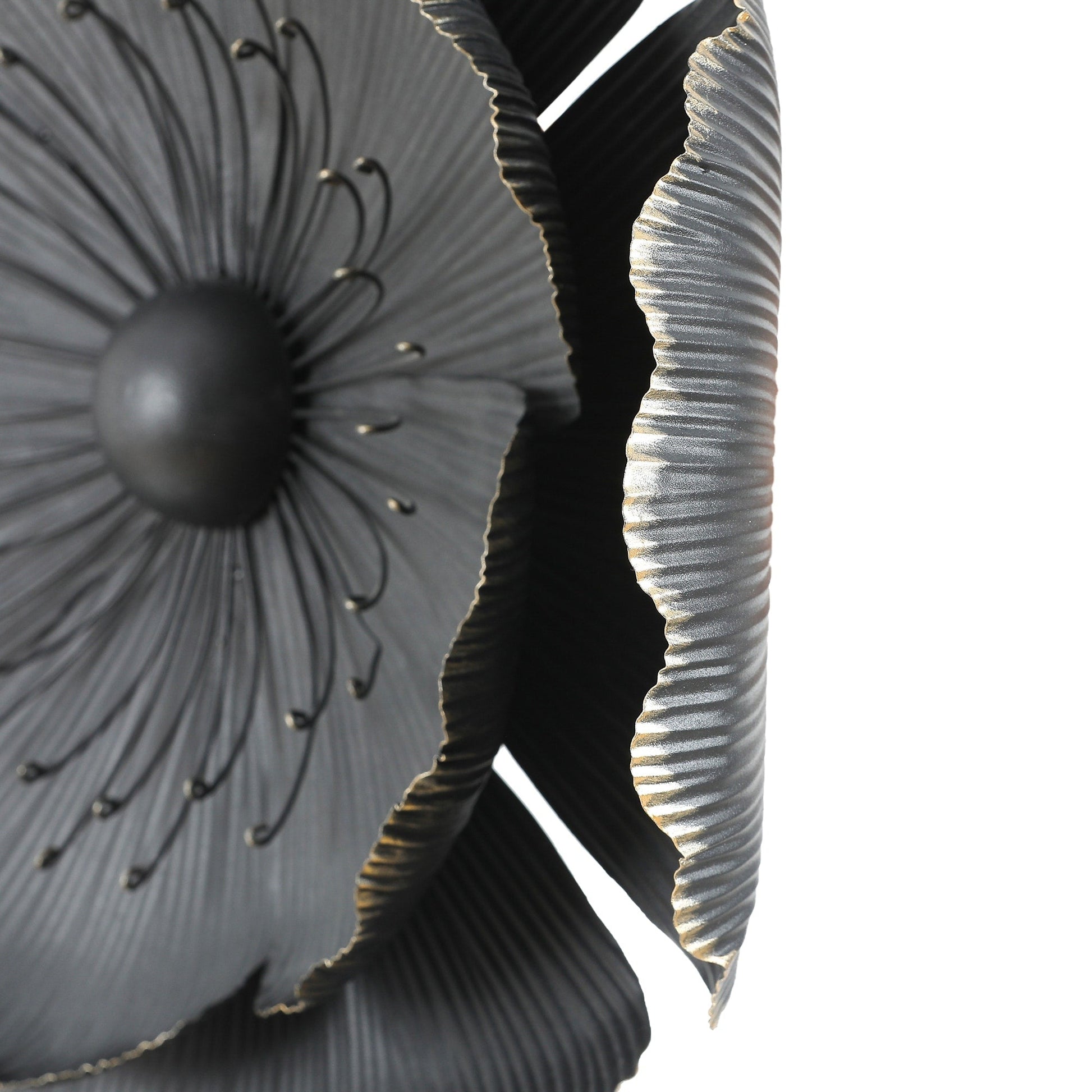 Dark Gray with Gold Multi-Size Metal Flowers Wall Decor (Set of 3)