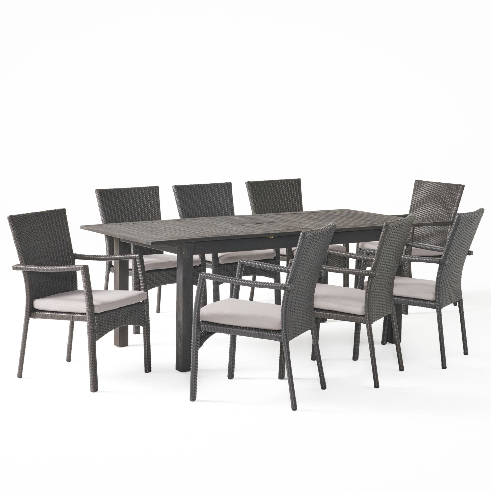 Davenport Outdoor 9 Piece Wood and Wicker Expandable Dining Set by Christopher Knight Home
