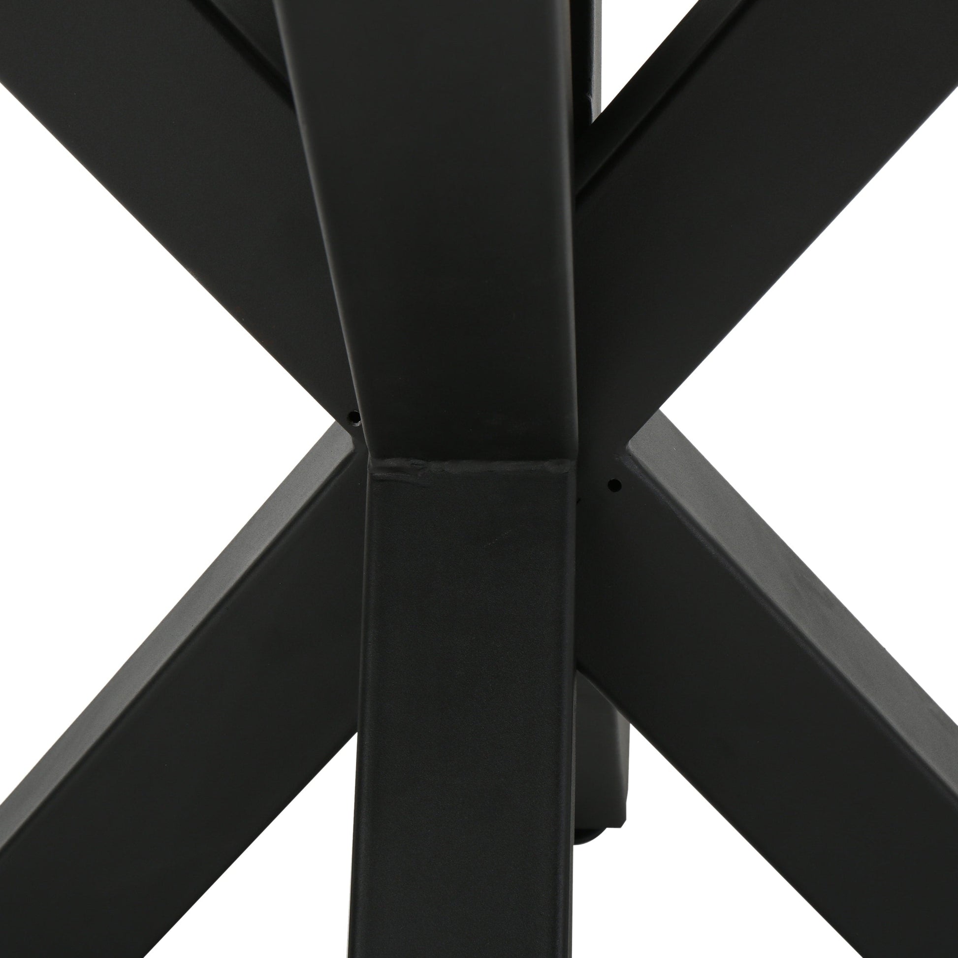 Bring your perfect patio set up to life with the help of our gorgeous dining set centered around an impressive lightweight concrete tabletop. Featuring a classic open slat design and a stunning X-shaped table base, our dining set offers a timeless yet modern style for your backyard while providing ultimate comfort. Consisting of gently curved lines contrasted by crisp, straight edges, this lovely set is made to last with its durable structure. So break out your favorite tableware and enjoy a relaxing outdoor meal with your loved ones.