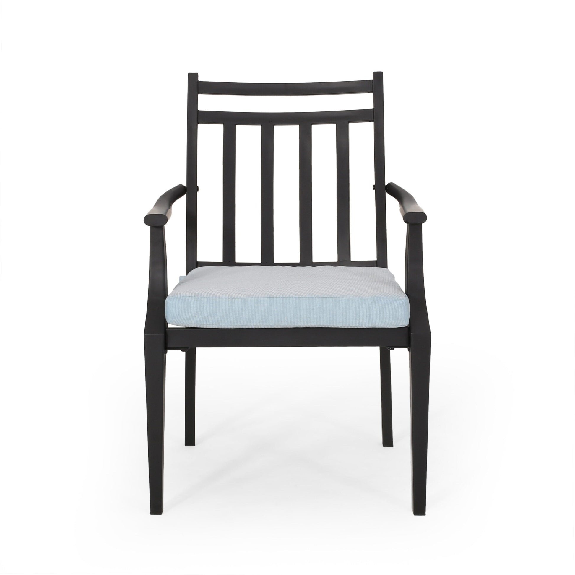 METAL FRAME: Constructed of powder-coated iron, the frame of this set is made to be incredibly durable, ensuring that this piece will hold up under heavy use. Refined with a matte finish, these chairs bring an elegant touch to this piece, making it an understated yet chic addition to your outdoor space.