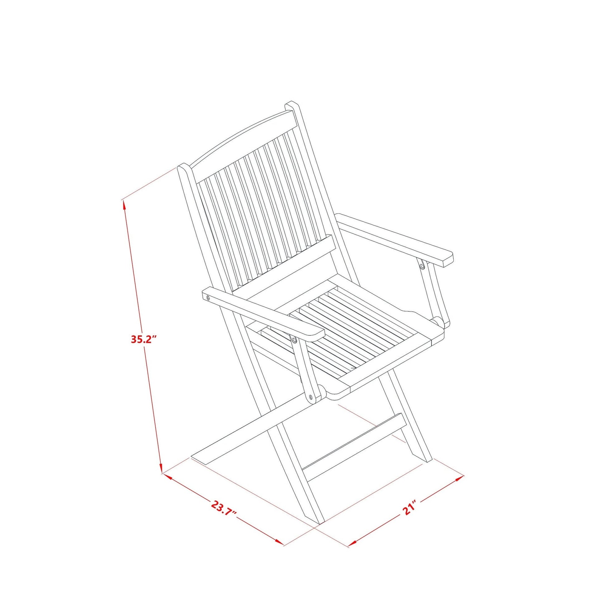 East West Furniture 3 Piece Wood Folding Table Set- a Outdoor Acacia Wood Coffee Table and 2 Folding Arm Chairs, Natural Oil