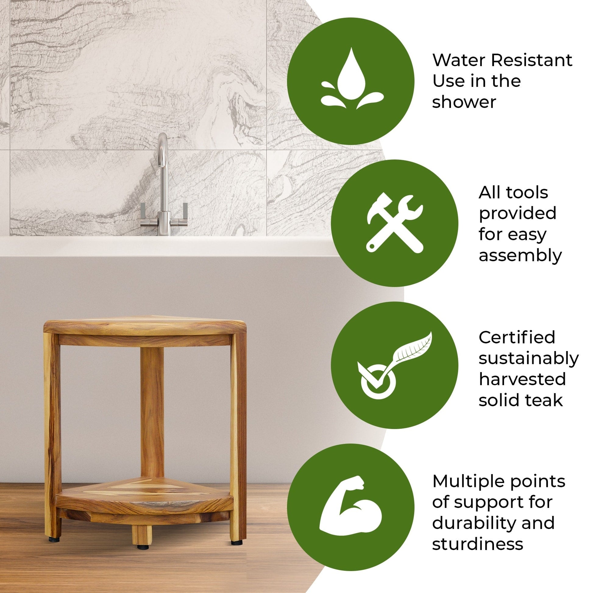 EcoDecors, Corner Teak Wood Shelf, Shower Shaving Footrest, Teak Stool For Inside Shower, 18-Inches