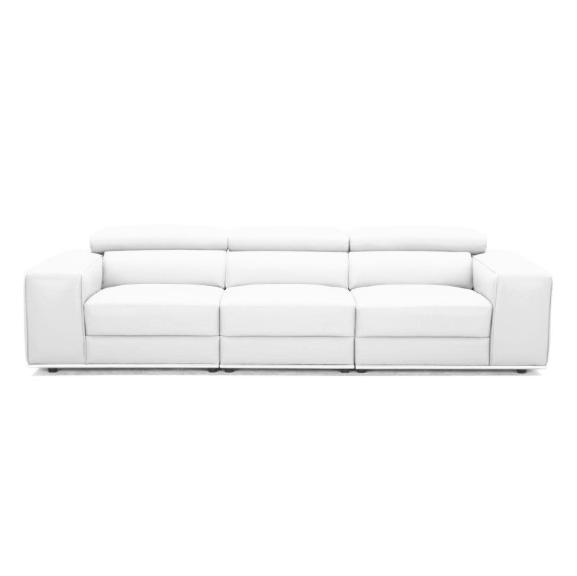 [description] Plongez dans un nouveau salon moderne avec le canapé en cuir Eden. Sa forme formelle et droite est sublimée par des détails de design subtils : les appuie-têtes offrent plusieurs positions pour un confort optimal et sa base est recouverte d'un tube chromé, un détail important. Nous avons conçu Eden pour un confort moyen : base en bois massif, mousse multi-densité et coussins en fibres synthétiques. Disponible en cuirs haut de gamme.[/description]