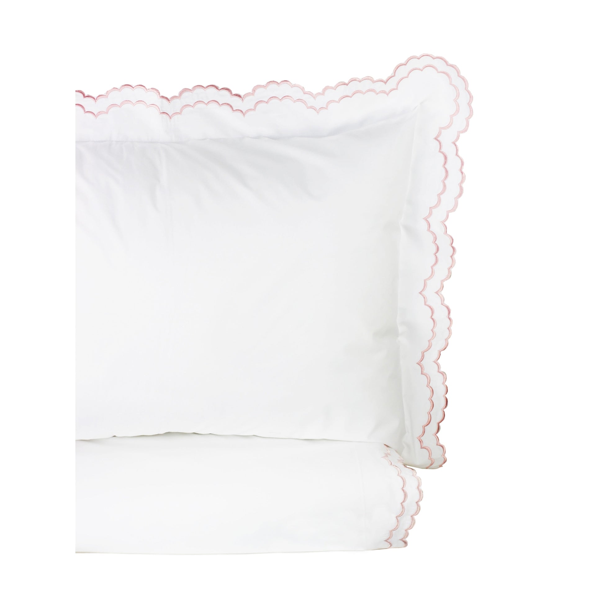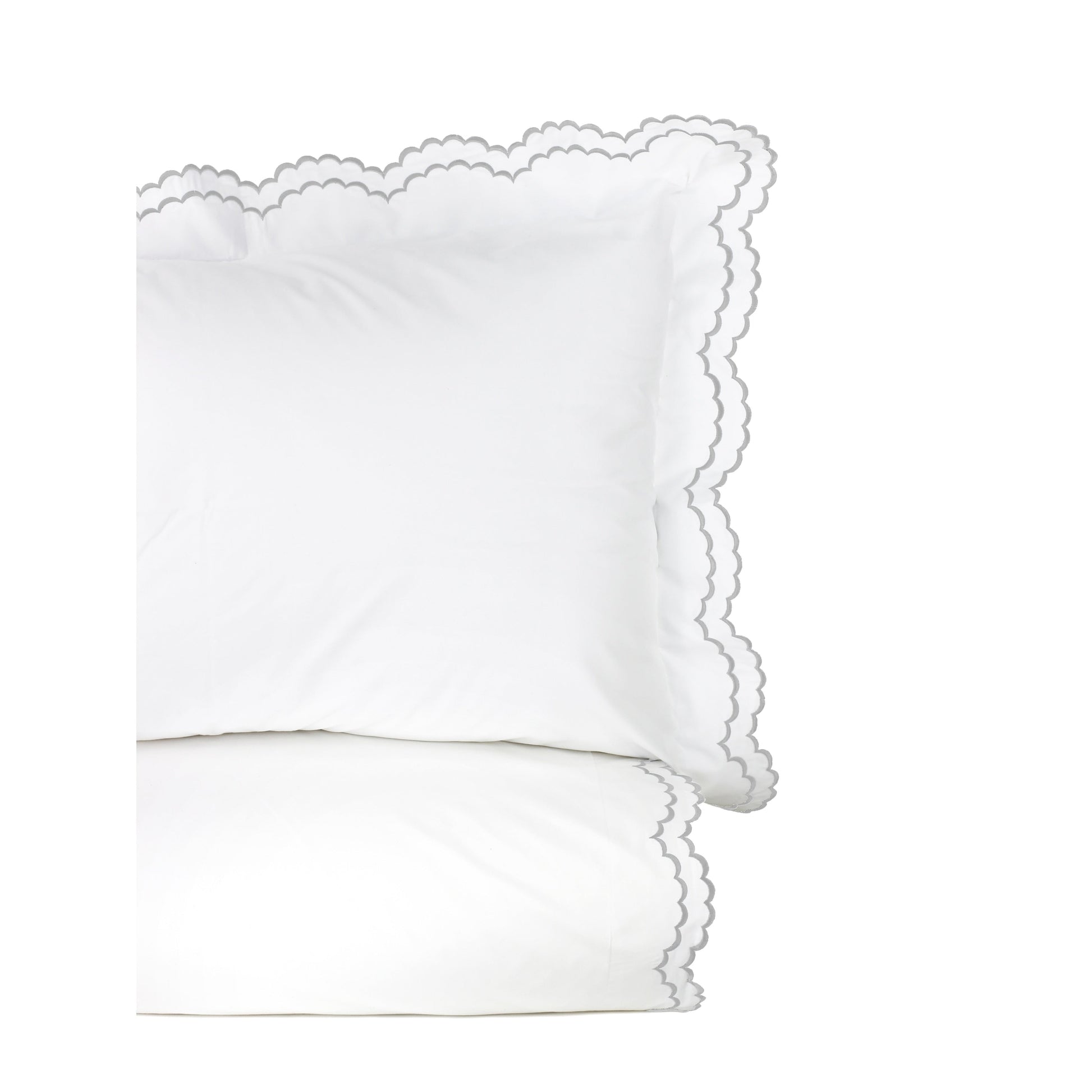 Embroidered Percale Crisp Cotton Double Scallopier Duvet Set and Sham