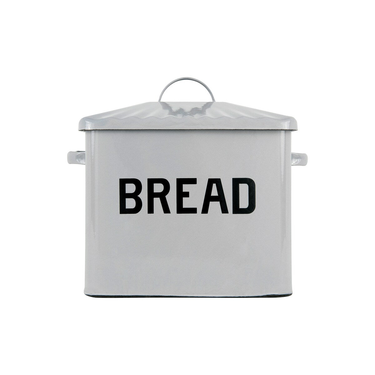 - This vintage-inspired metal bread box showcases a two-tone enameled finish with 'bread' message