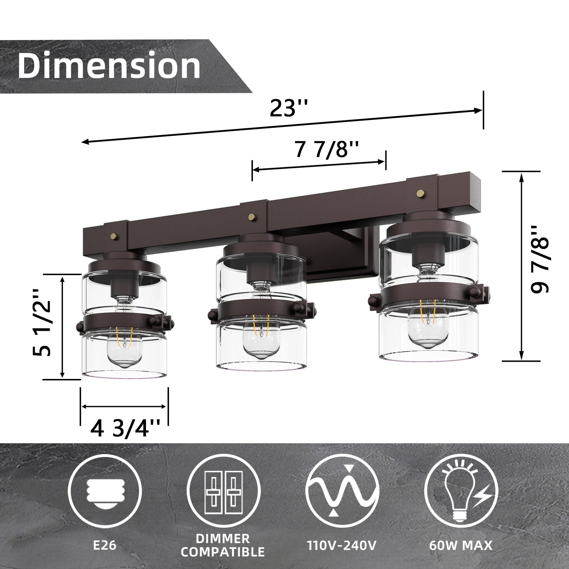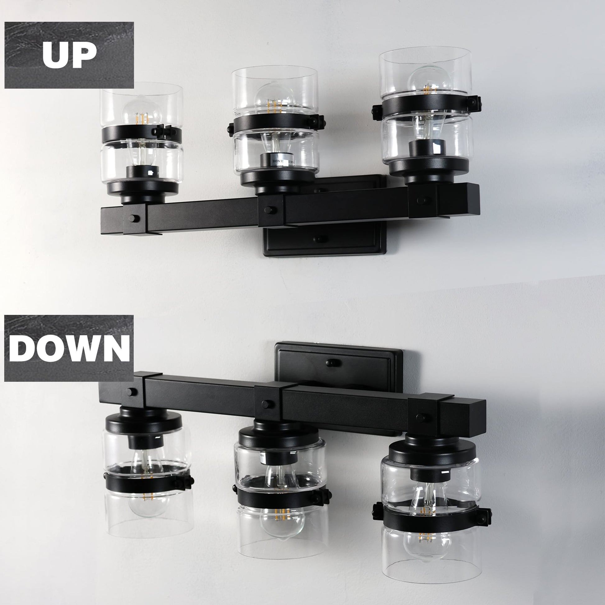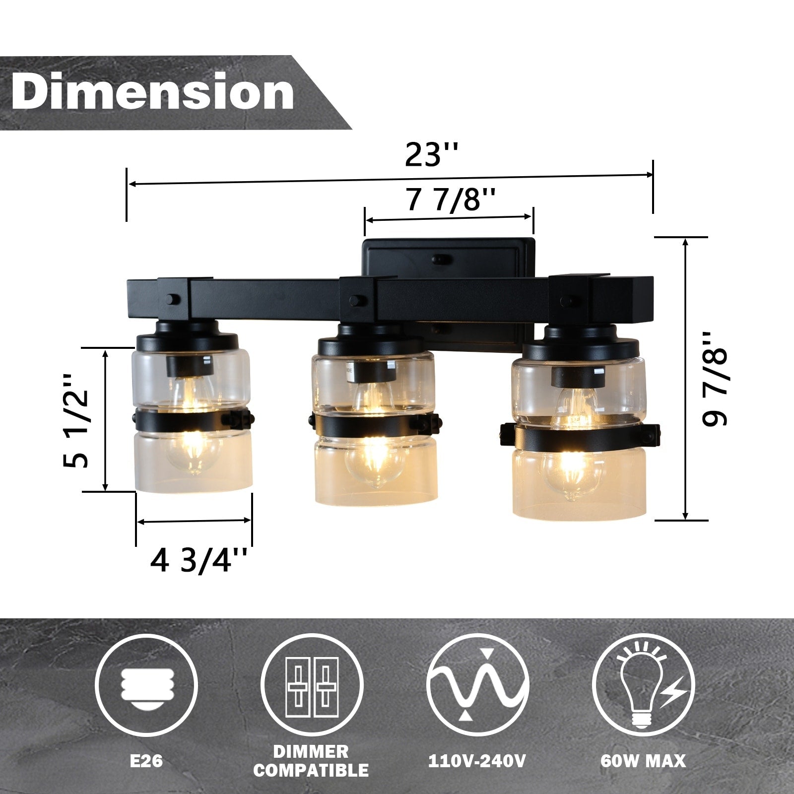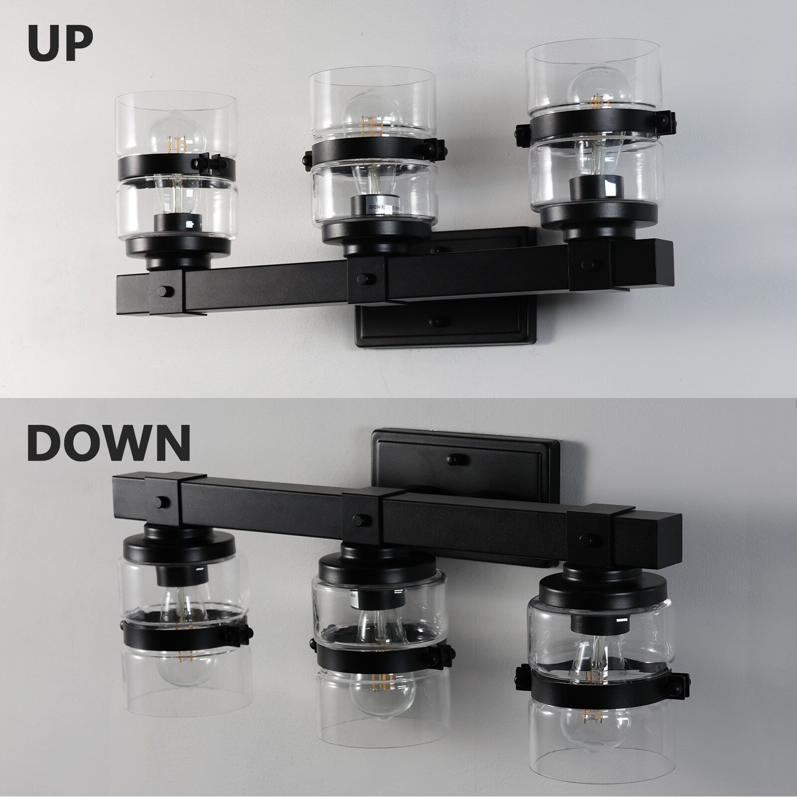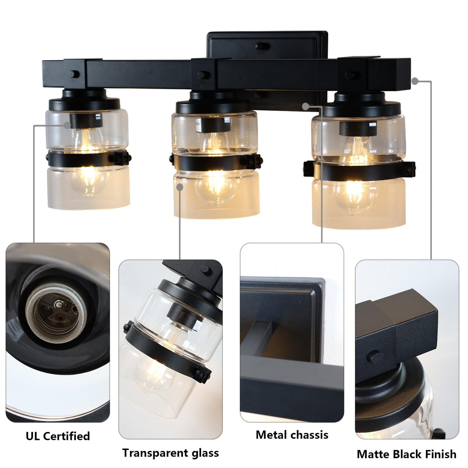ExBrite Farmhouse 3-lights Bathroom Dimmable Iron Black Vanity Lights Wall Sconces