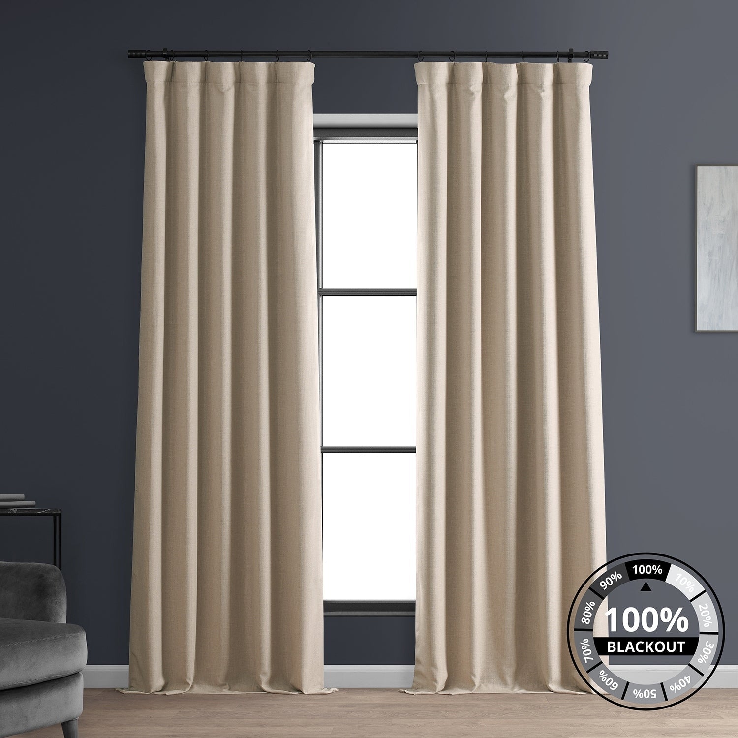 Exclusive Fabrics Faux Linen 100% Blackout Curtains Heat and Light Blocking - (1 Panel)