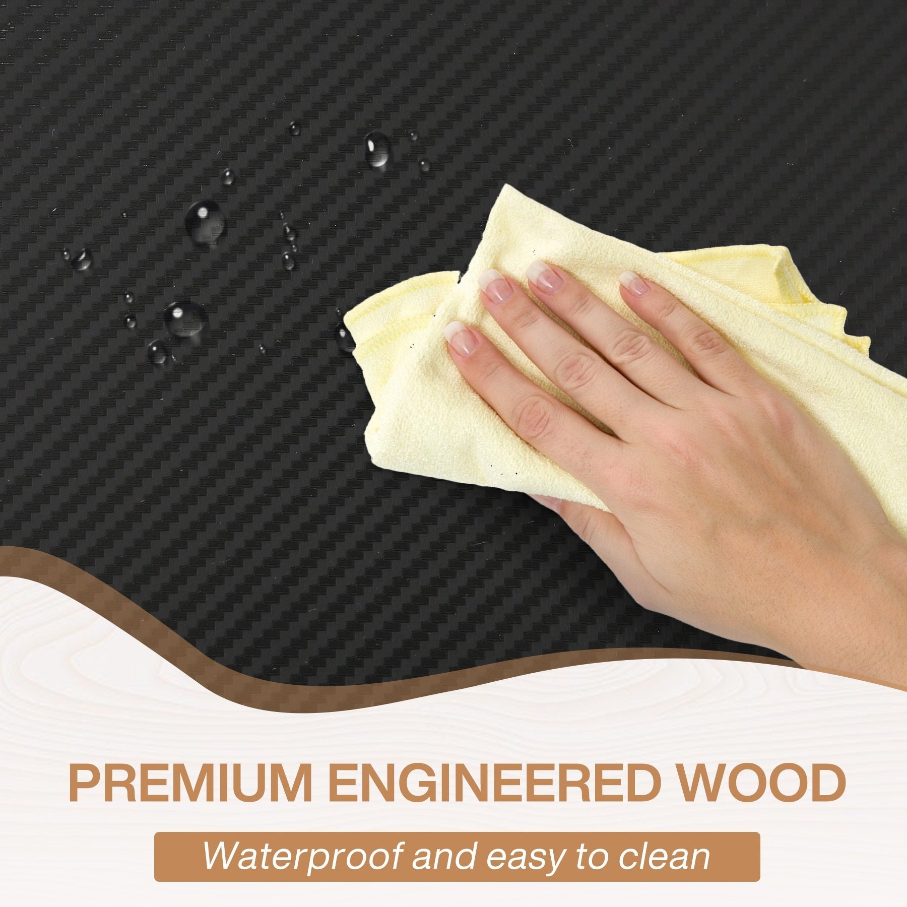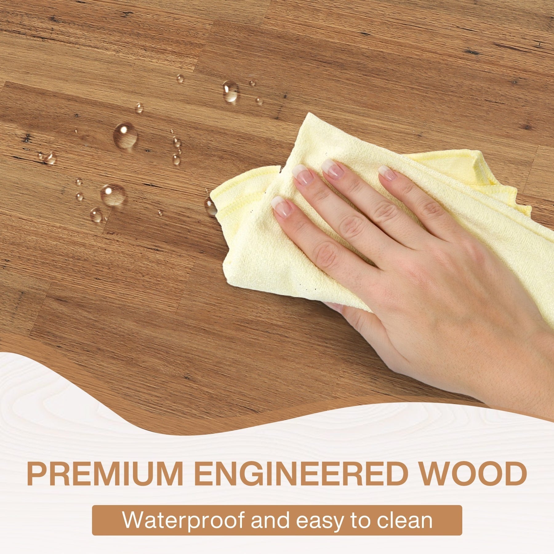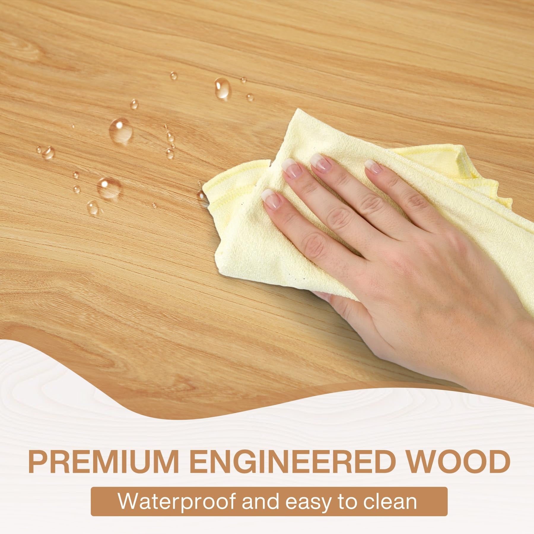 - Crafted from thick engineered wood and heavy-duty metal for reliable structure